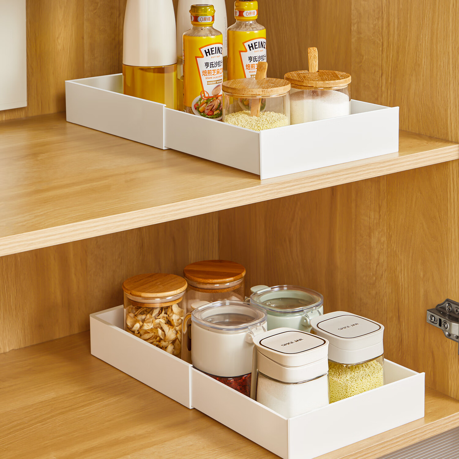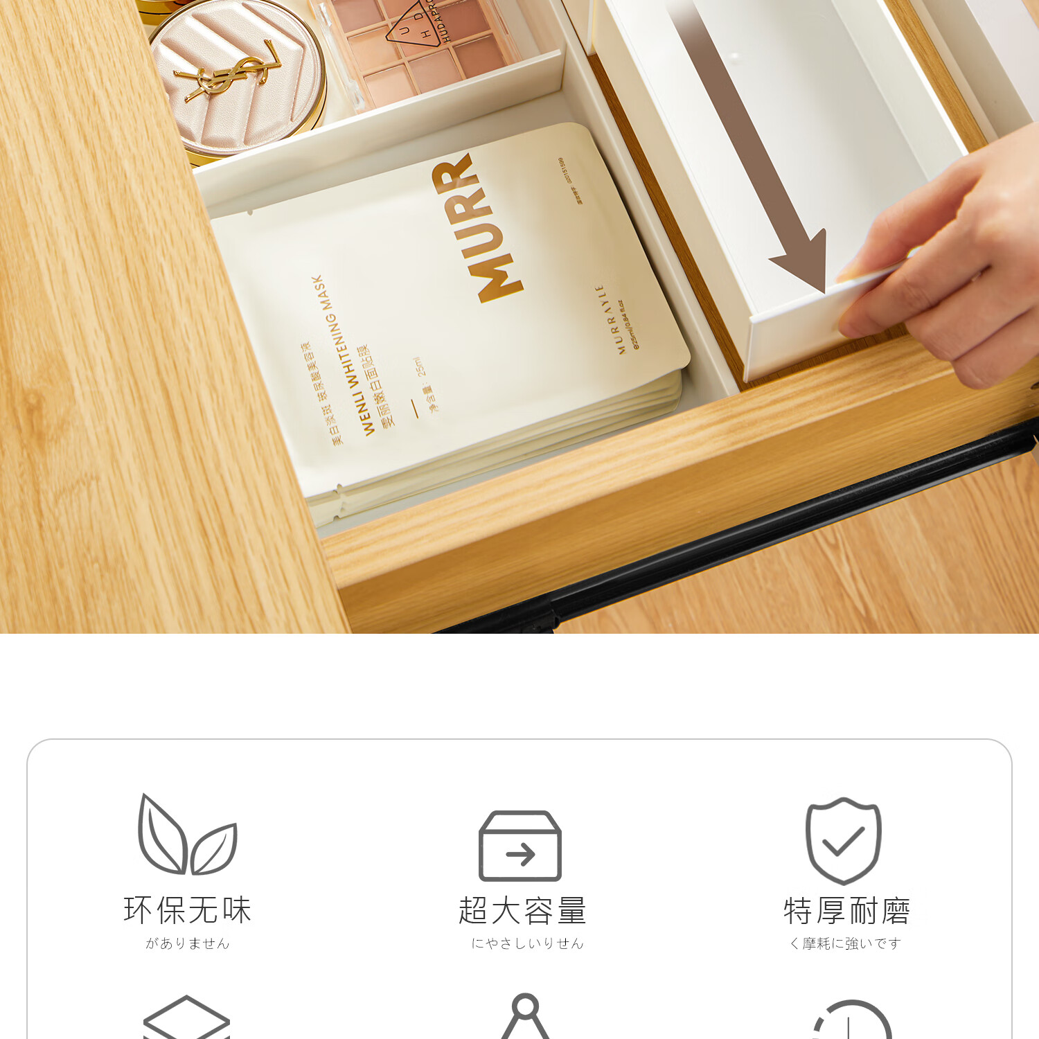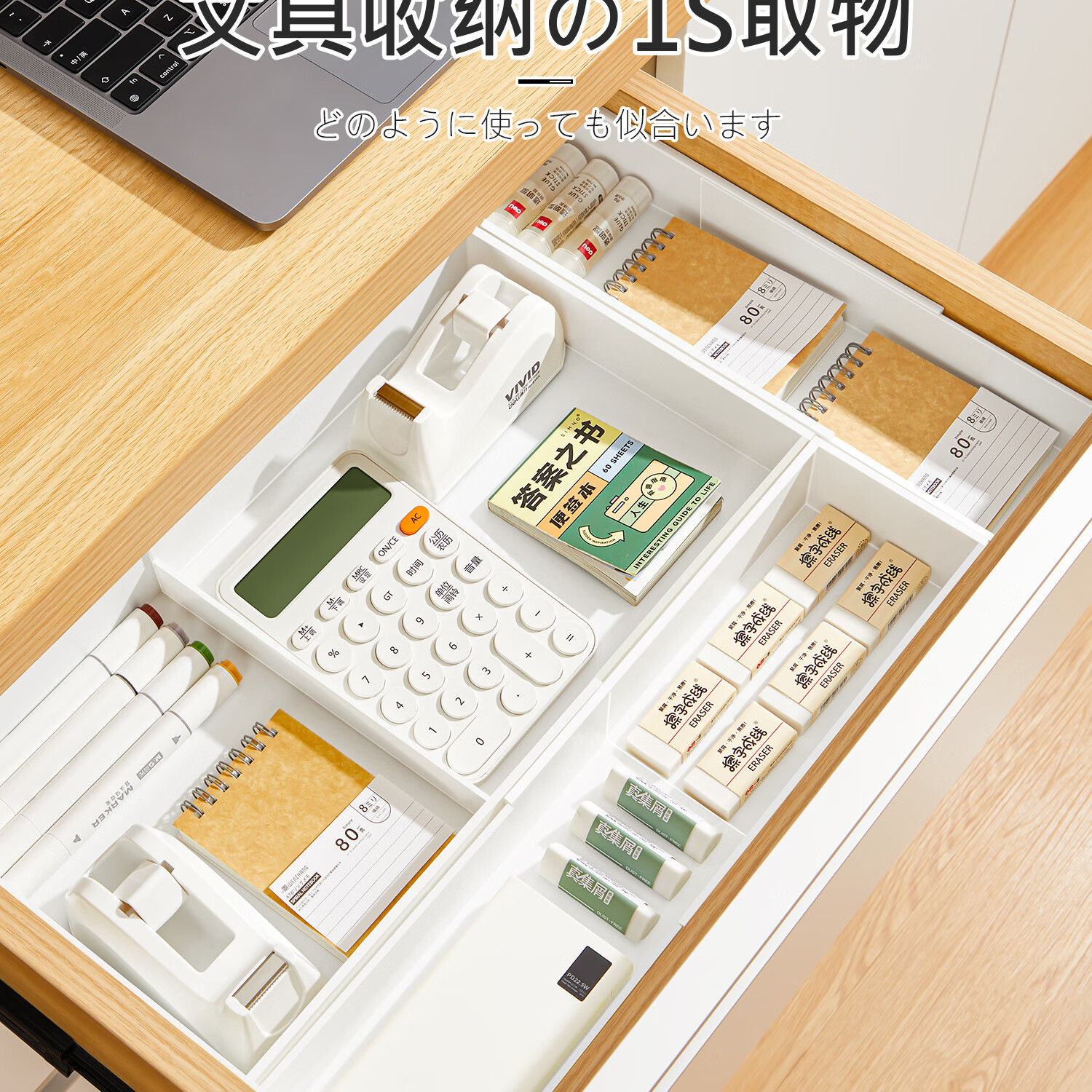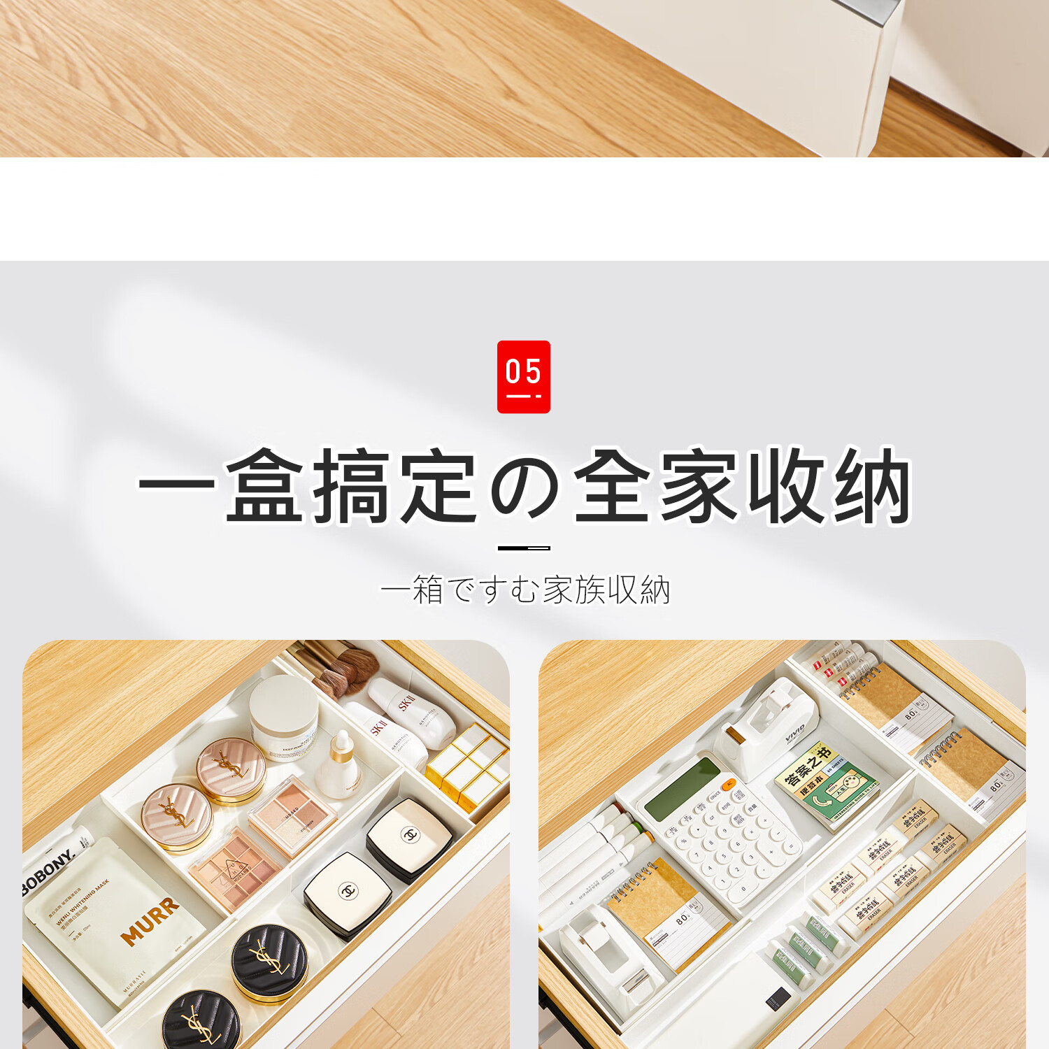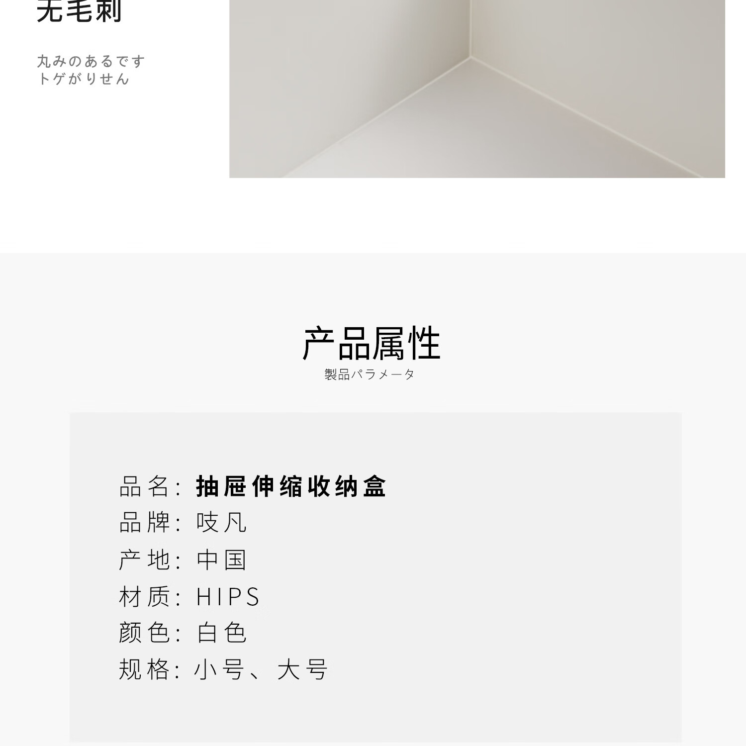 吱凡日本可伸缩收纳盒分隔抽屉式内置整理盒厨房餐具桌面化妆品分格盒 【白色伸缩窄款】1个装【高5.5cm】