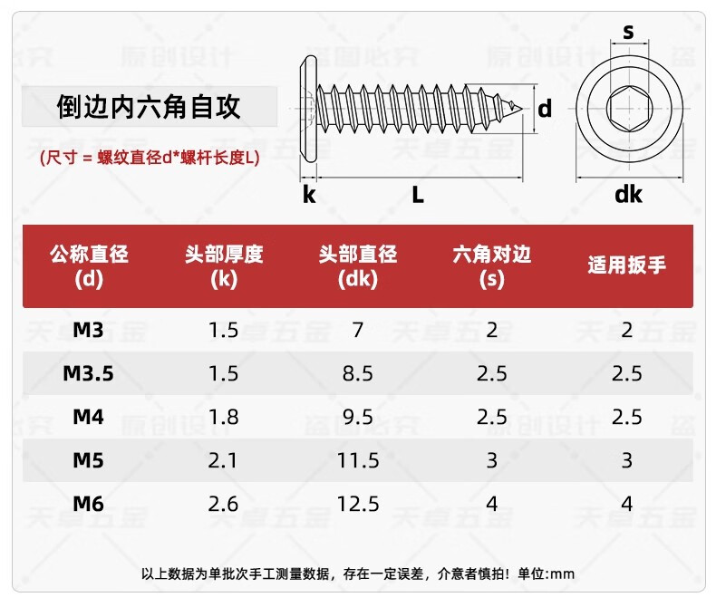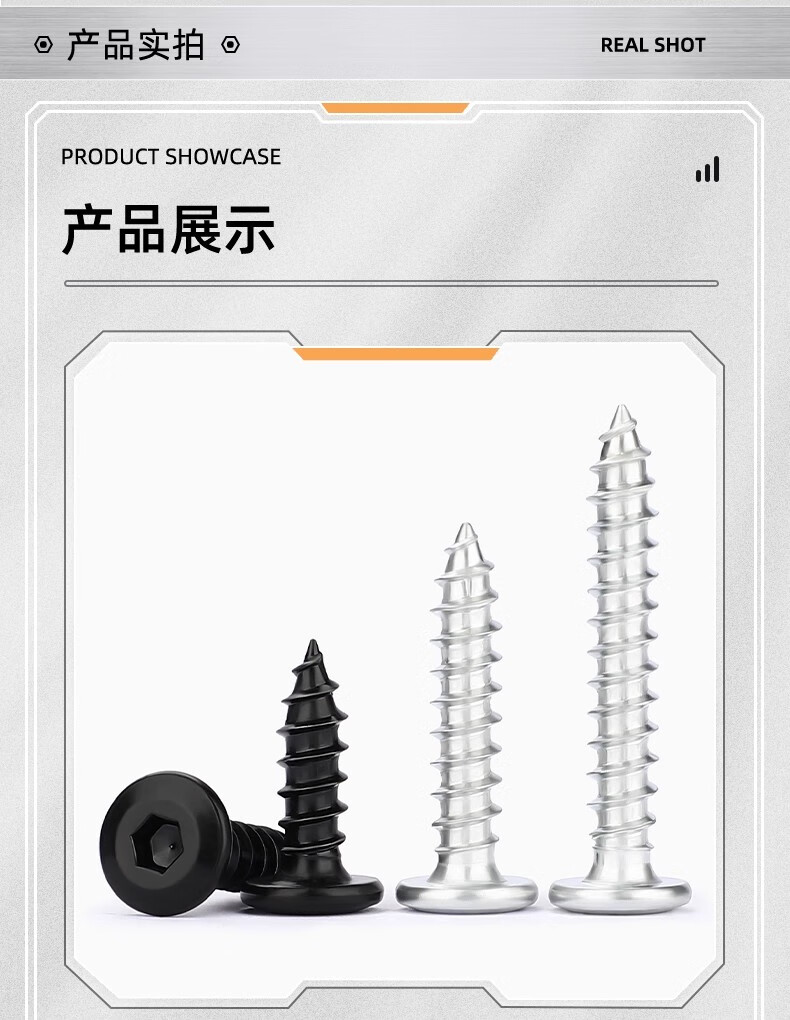 天卓五金白锌/发黑碳钢倒边内六角自攻螺钉大平头薄头家具螺丝M2M3M4M5-M8 黑锌 M5*12【50个】