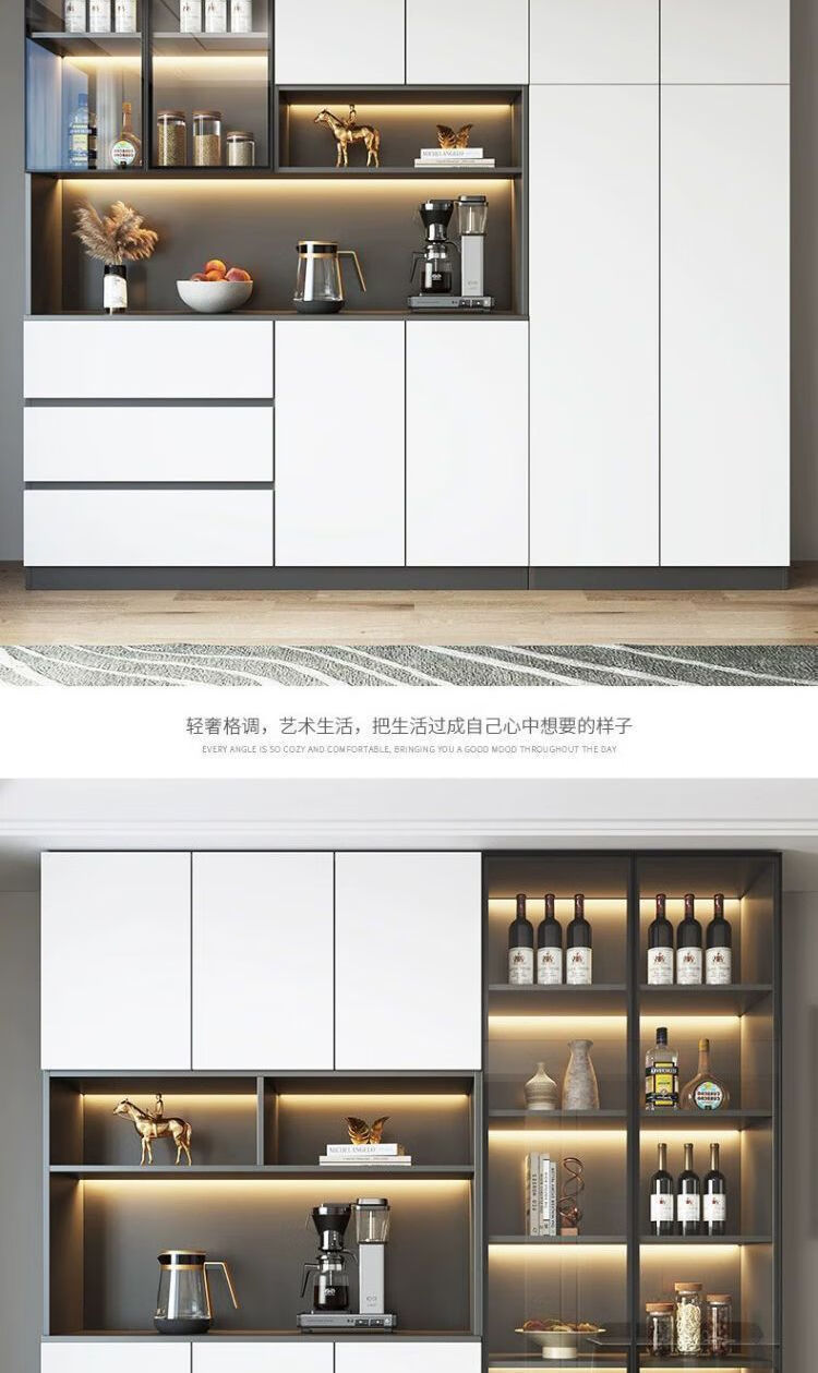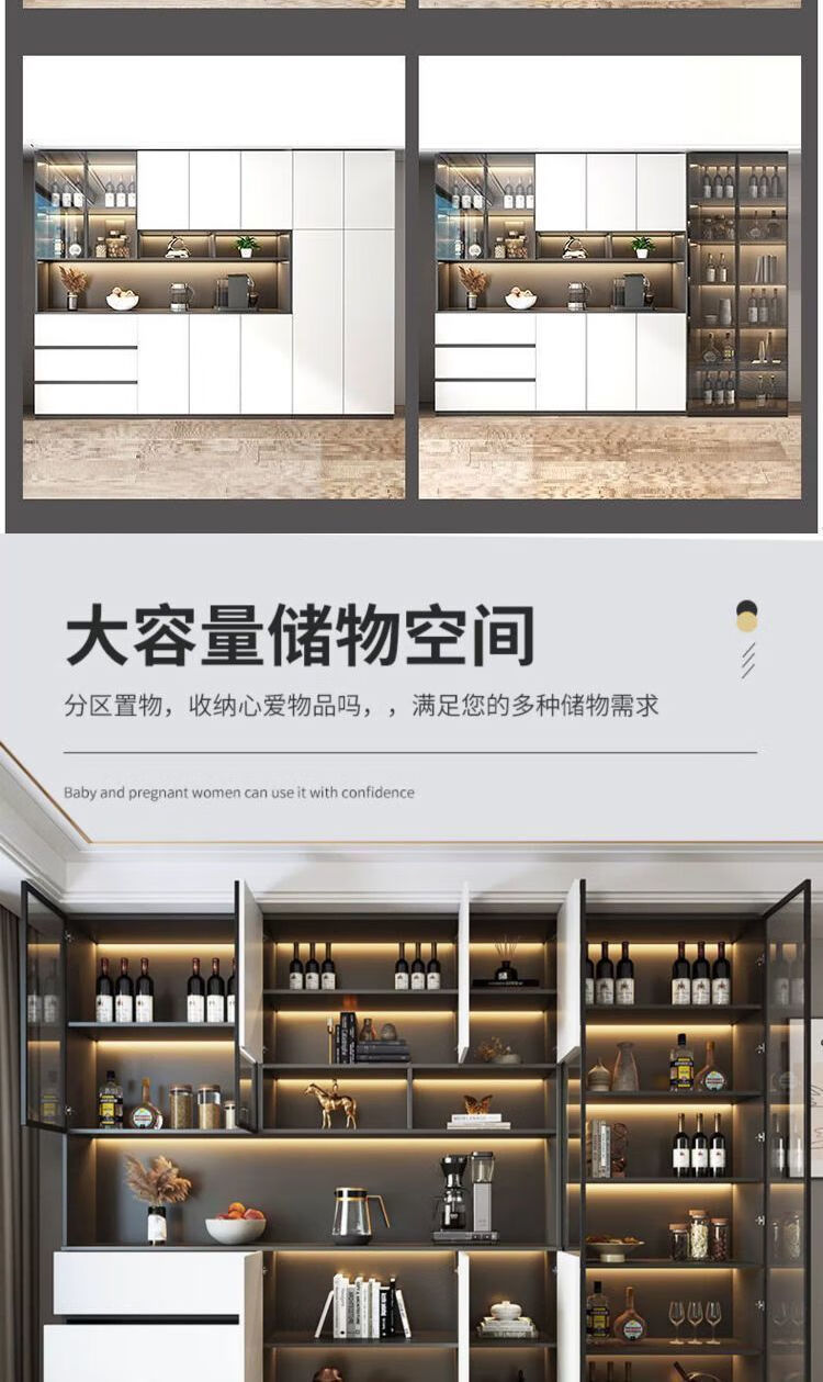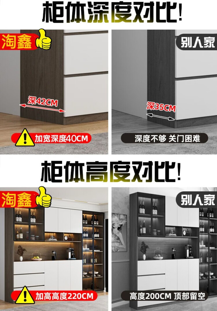 迈途森实木餐边柜靠墙一体高柜家用茶水柜轻奢高档酒柜客厅收纳储物柜子 【特价1】:长40*40*220柜 【真实木】奶咖色*师傅安装