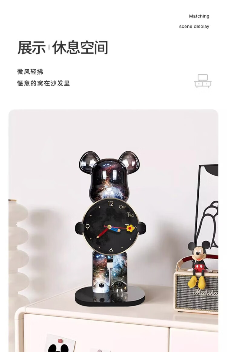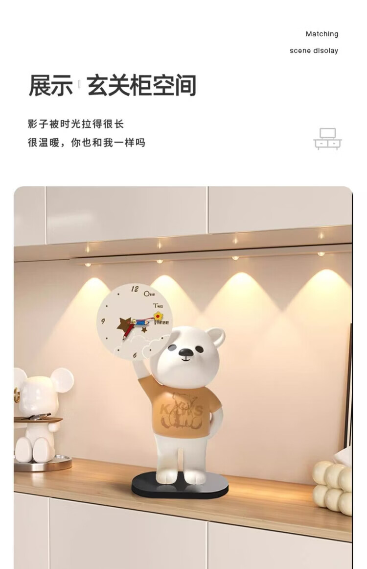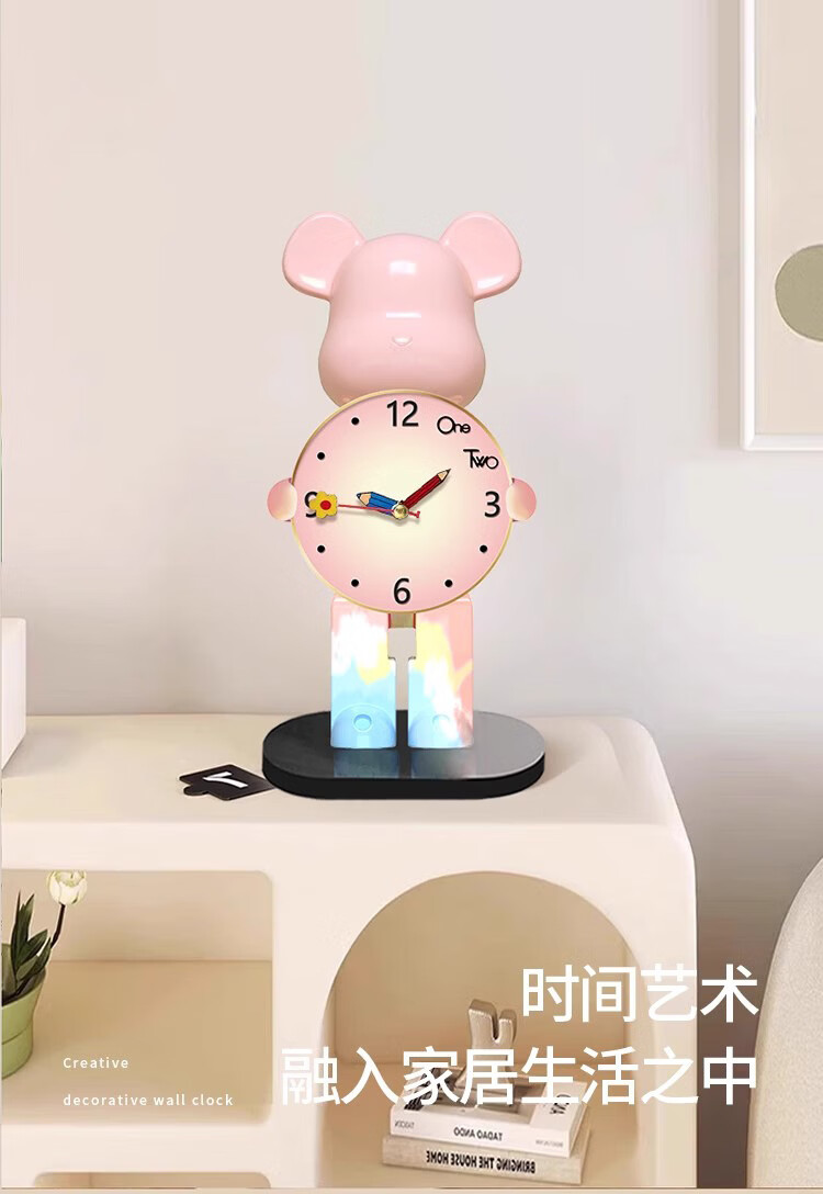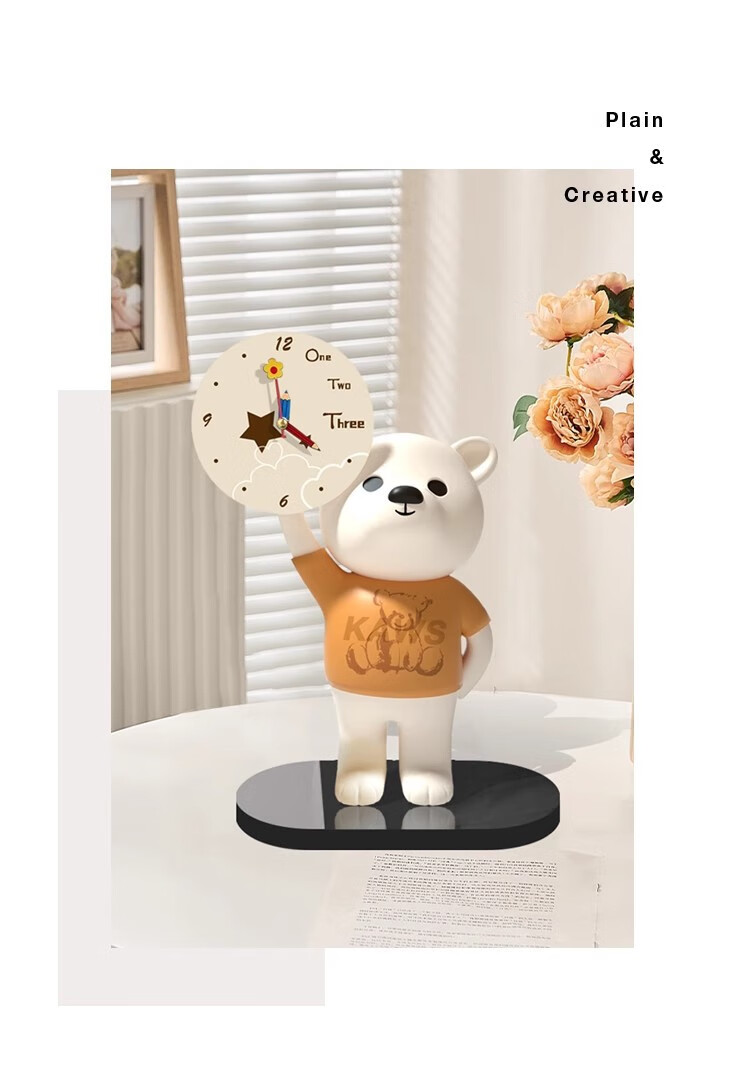 OYKTN小熊钟表摆件孩子书房课桌装饰摆台客厅卡通创意时钟小摆画装饰品 奶油小熊 15*20