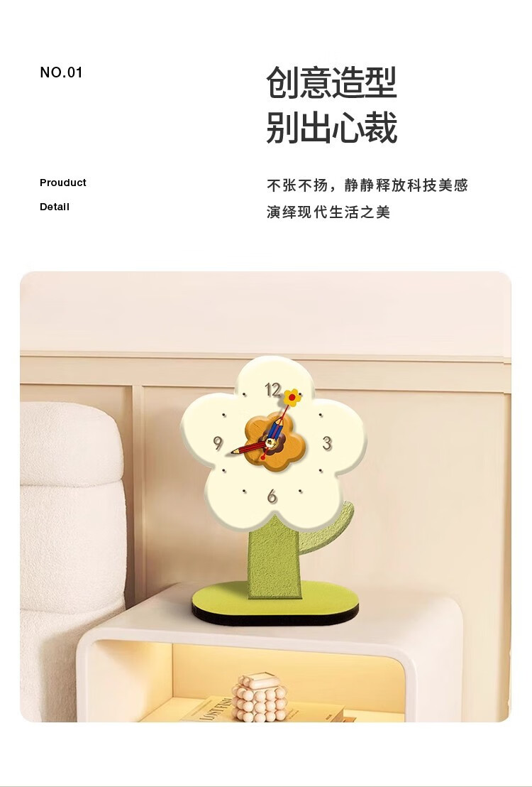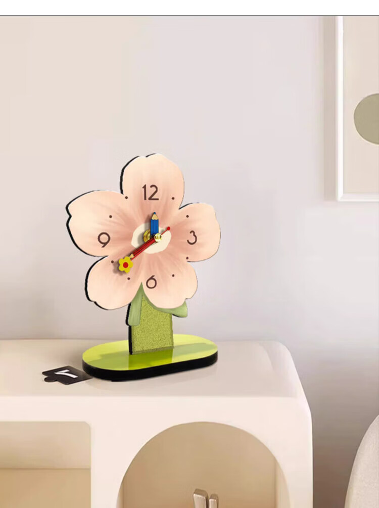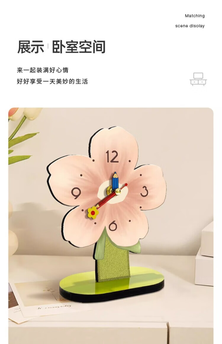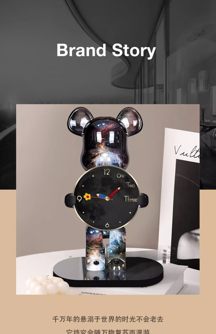 OYKTN小熊钟表摆件孩子书房课桌装饰摆台客厅卡通创意时钟小摆画装饰品 奶油小熊 15*20