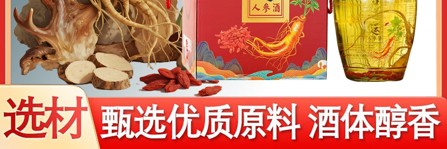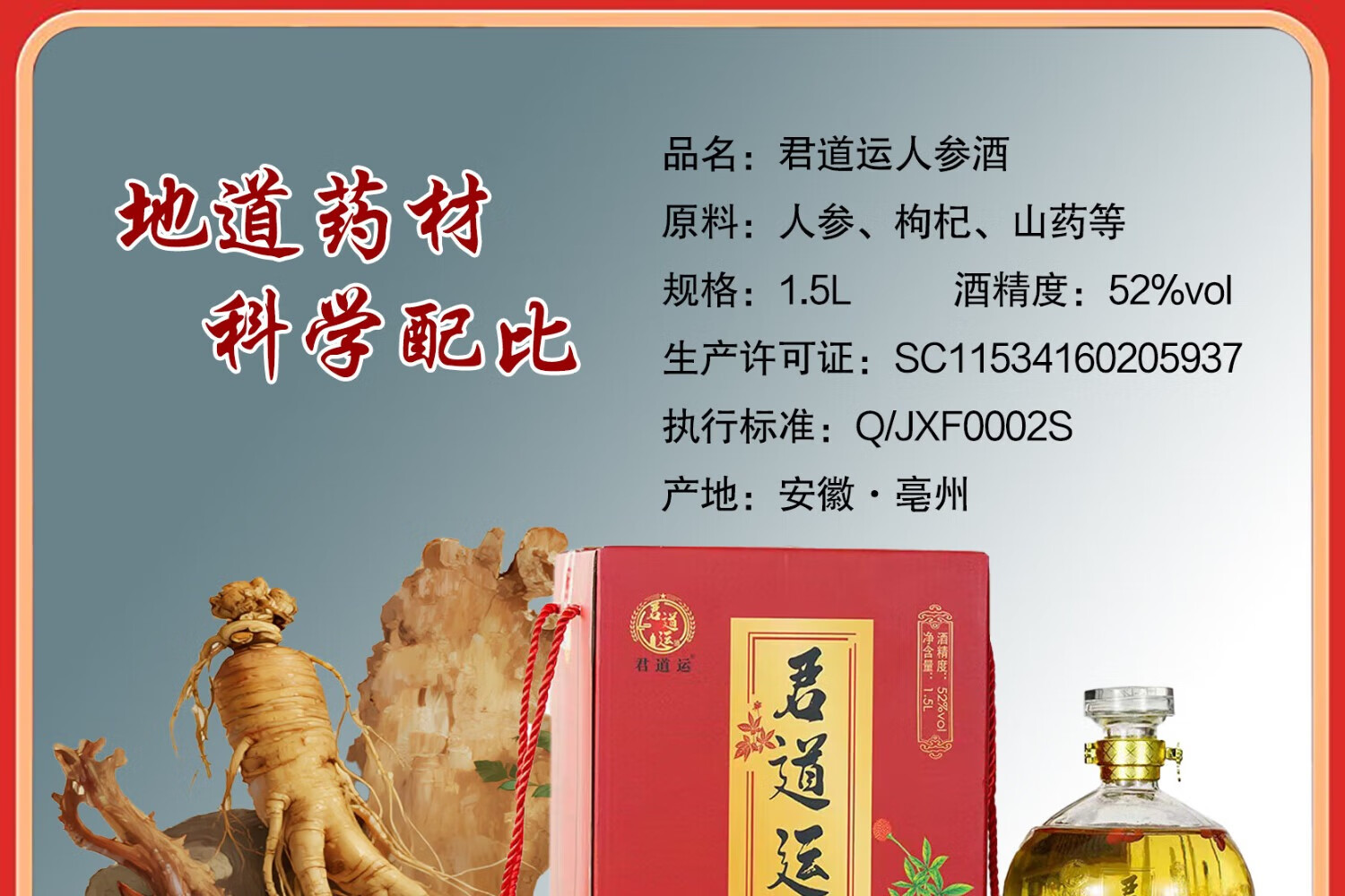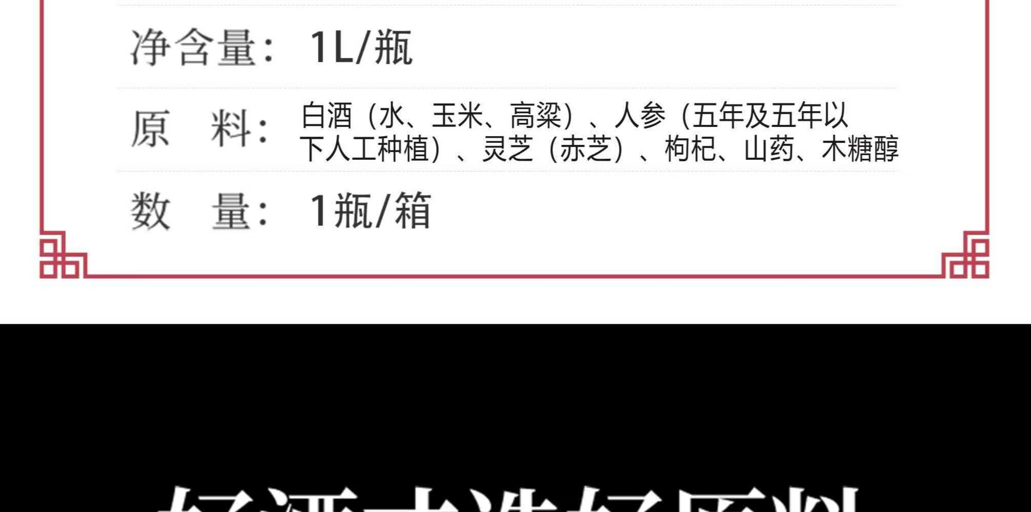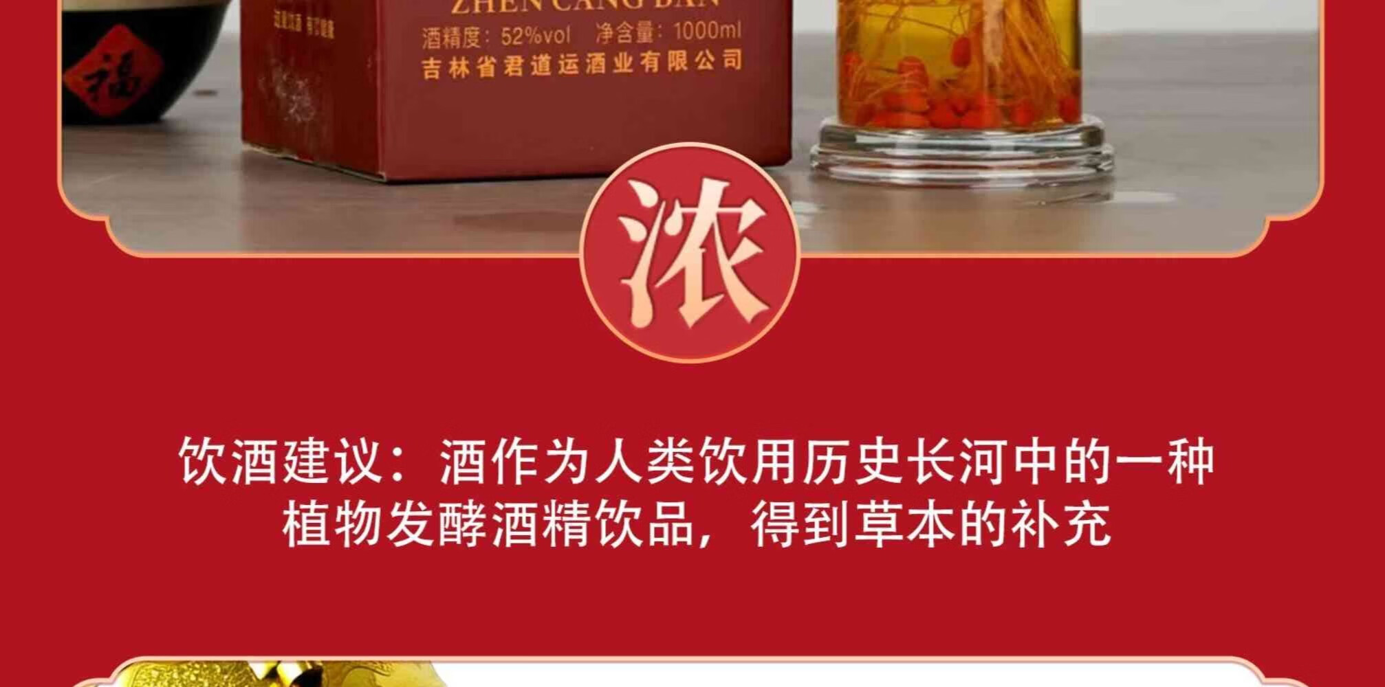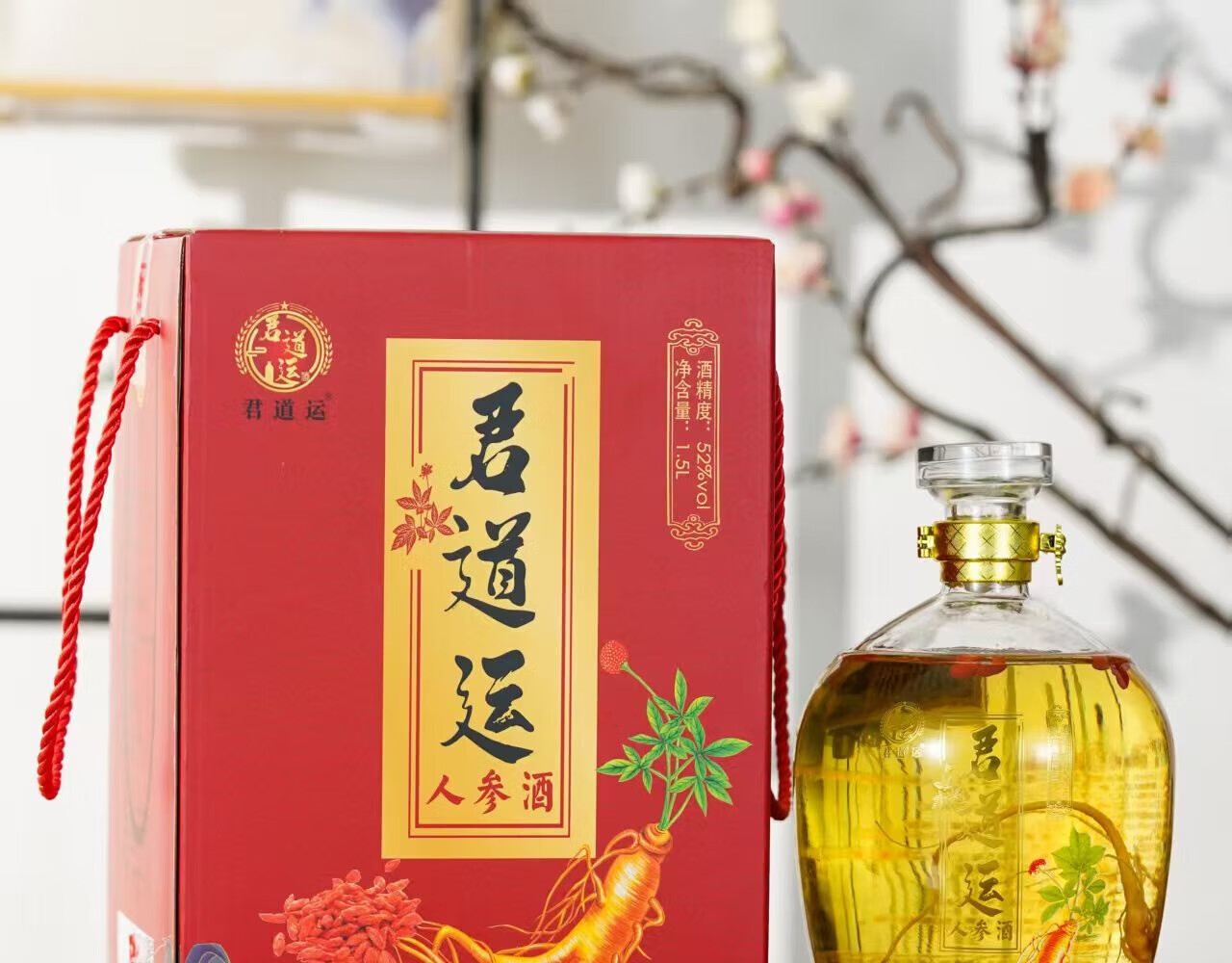 君道运人参灵芝酒 送礼 自饮 泡酒 52度高度酒 52度 1000mL 2瓶 国药药材人参灵芝酒