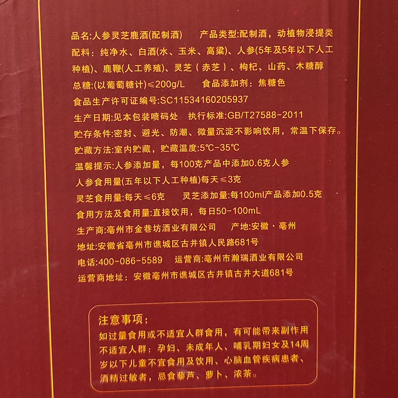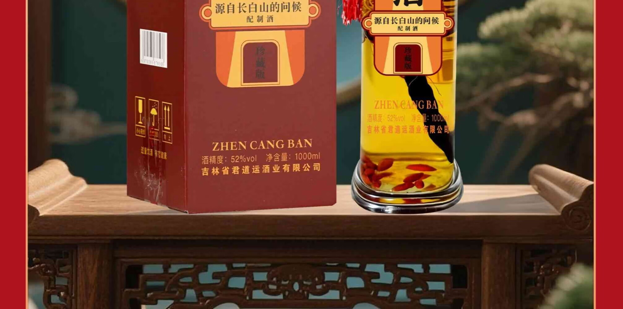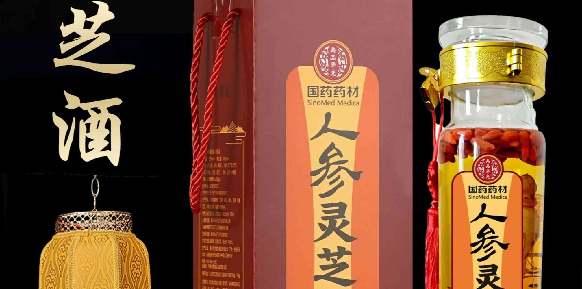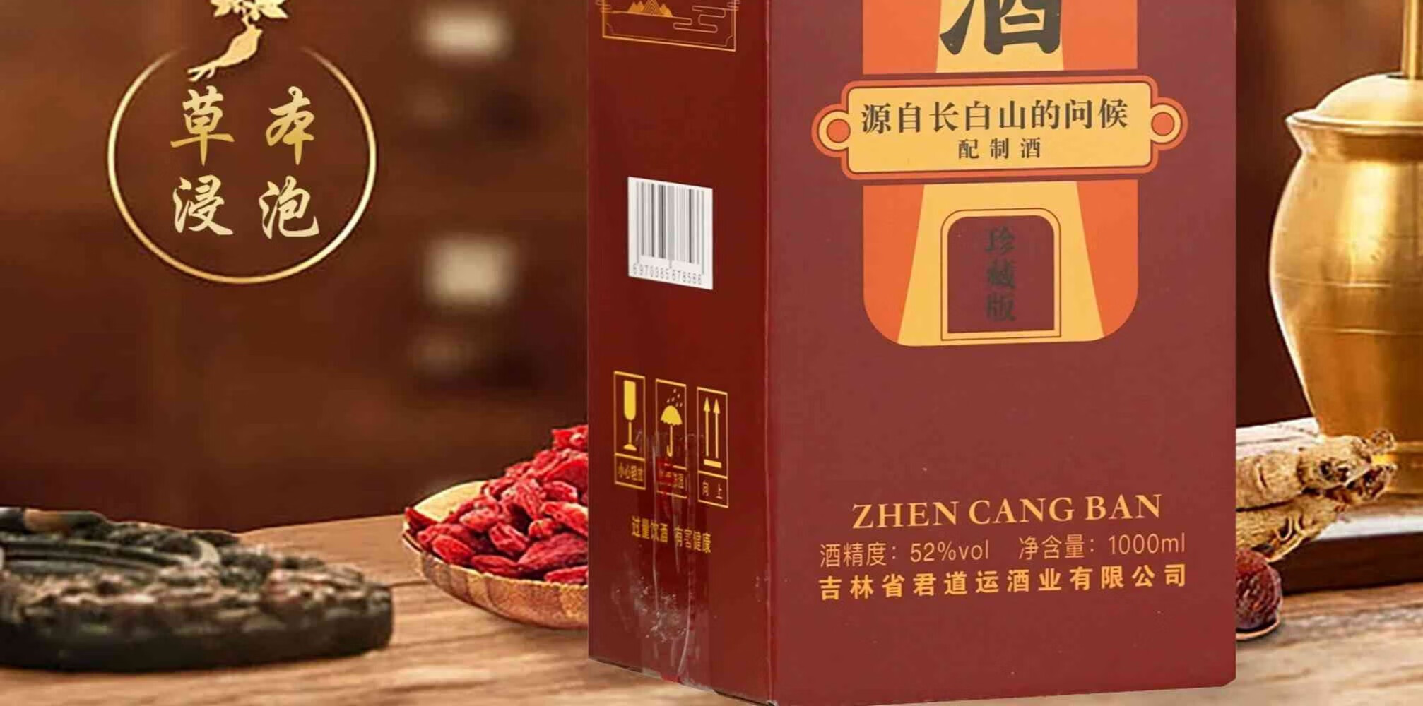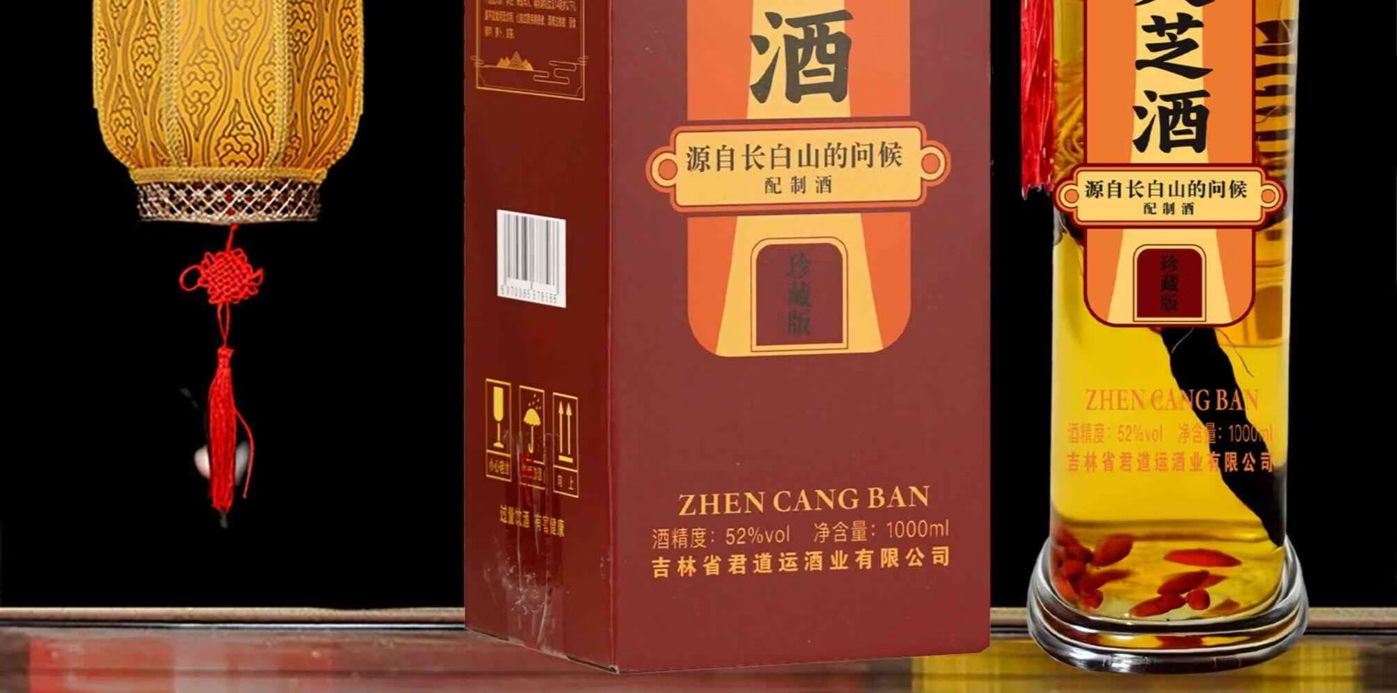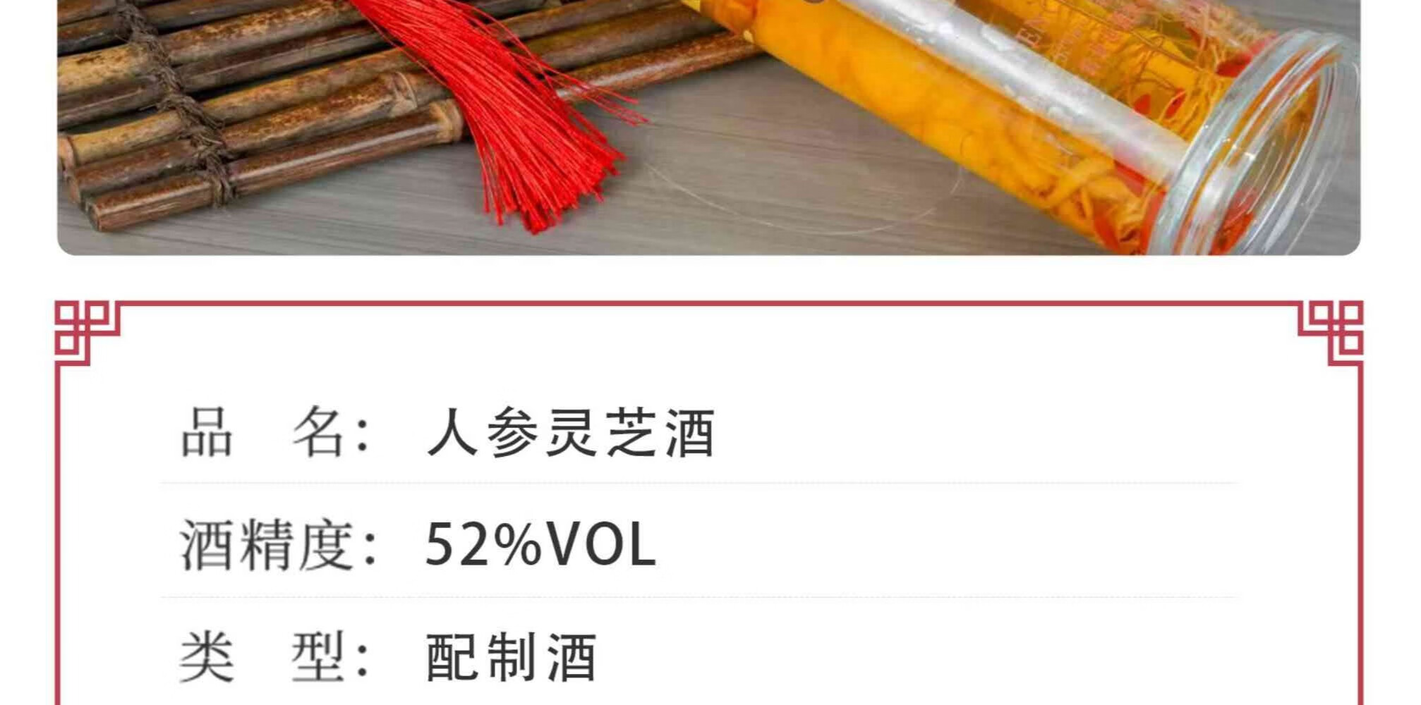 君道运人参灵芝酒 送礼 自饮 泡酒 52度高度酒 52度 1000mL 2瓶 国药药材人参灵芝酒