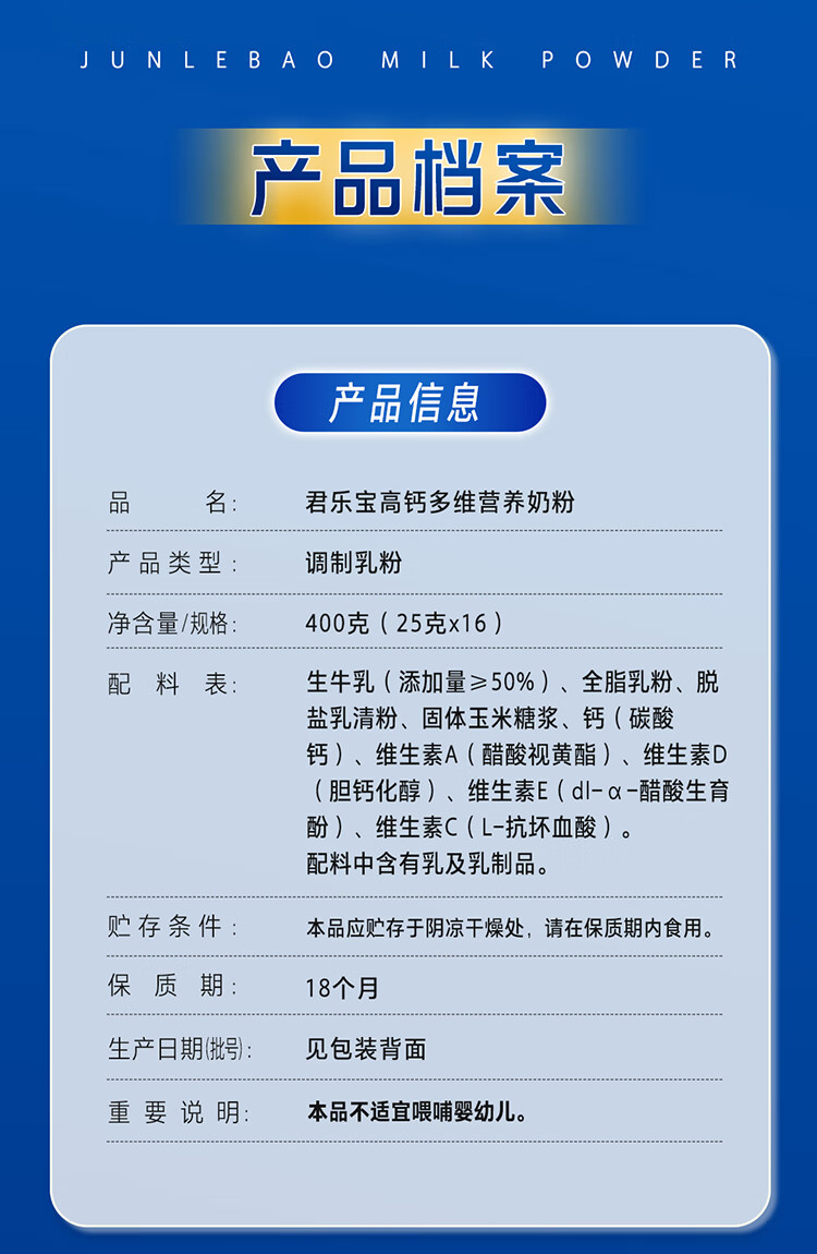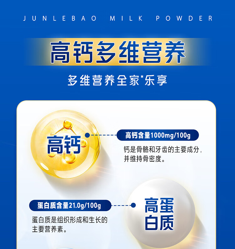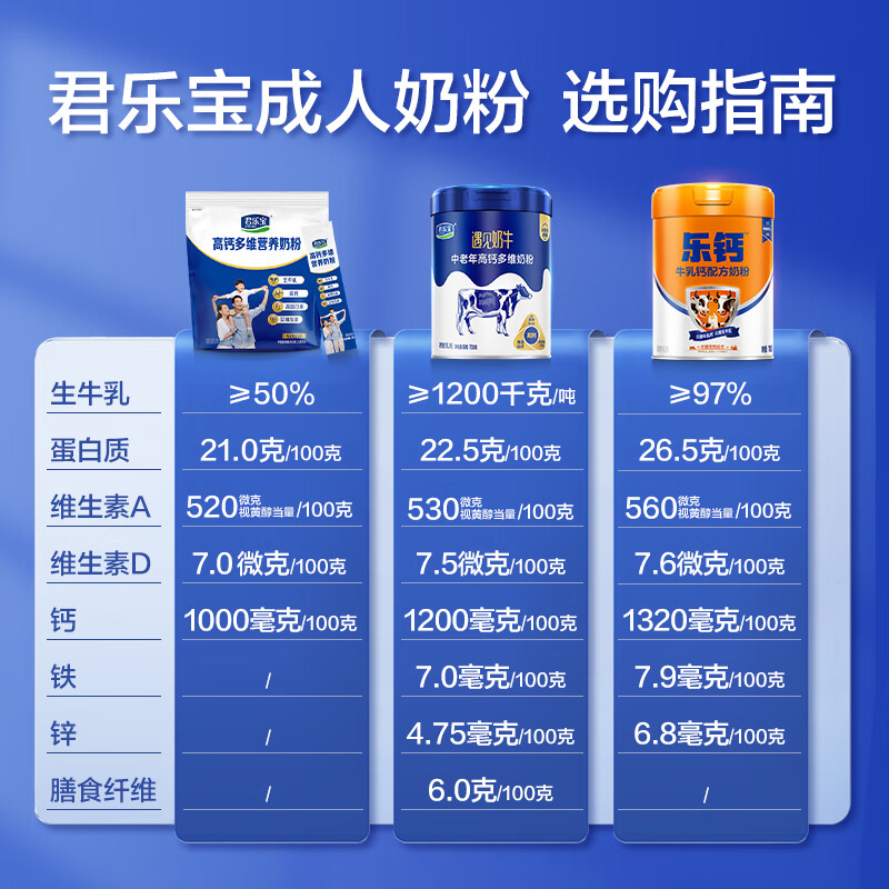 君乐宝高钙多维营养青少年成人中老年奶粉生牛乳高钙高蛋白质奶粉400g袋