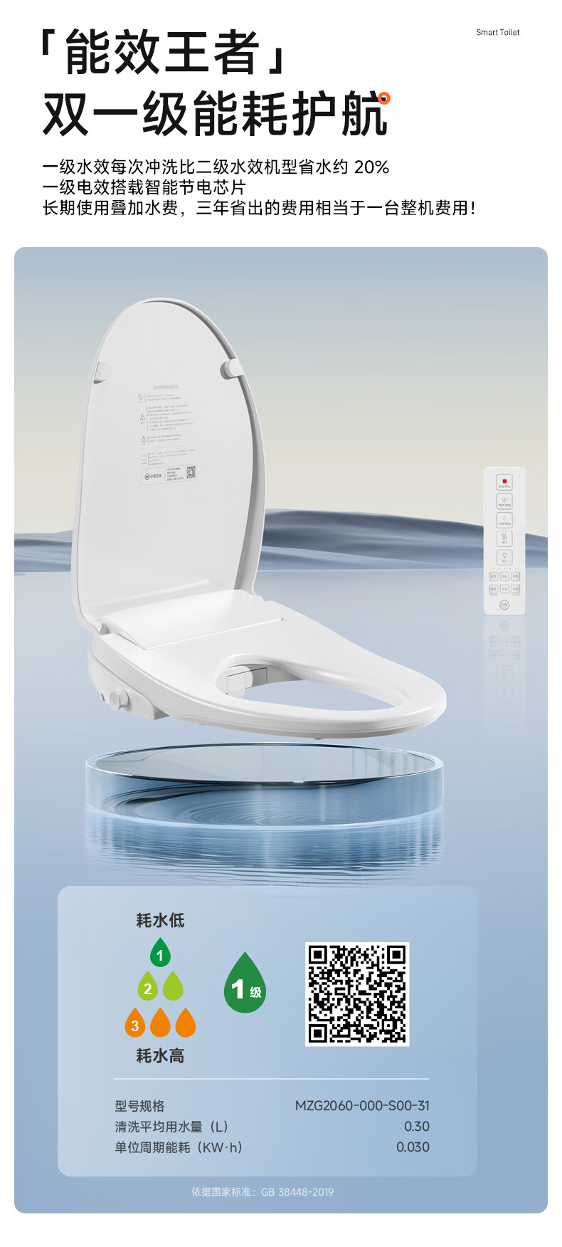 九牧(JOMOO)小牧卫浴智能马桶盖 自动除臭抗菌净味 座圈加热坐便盖一级能效 安装孔距【125-215mm】X2 Pro