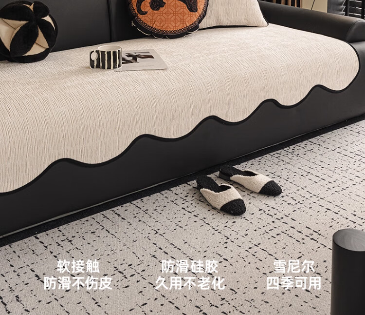 无印良品【防滑不伤皮】皮沙发专用垫沙发座垫冬季轻奢高级感固定防滑坐垫 漫星-米白色【皮沙发专用 防滑稳坐 】 70*150【适合长度130-150cm的沙发】
