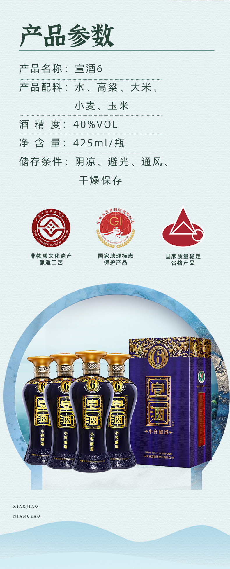 宣酒 宣6 浓香型白酒 40度 425ml*4瓶 整箱装 小窖酿造 双11热门商品