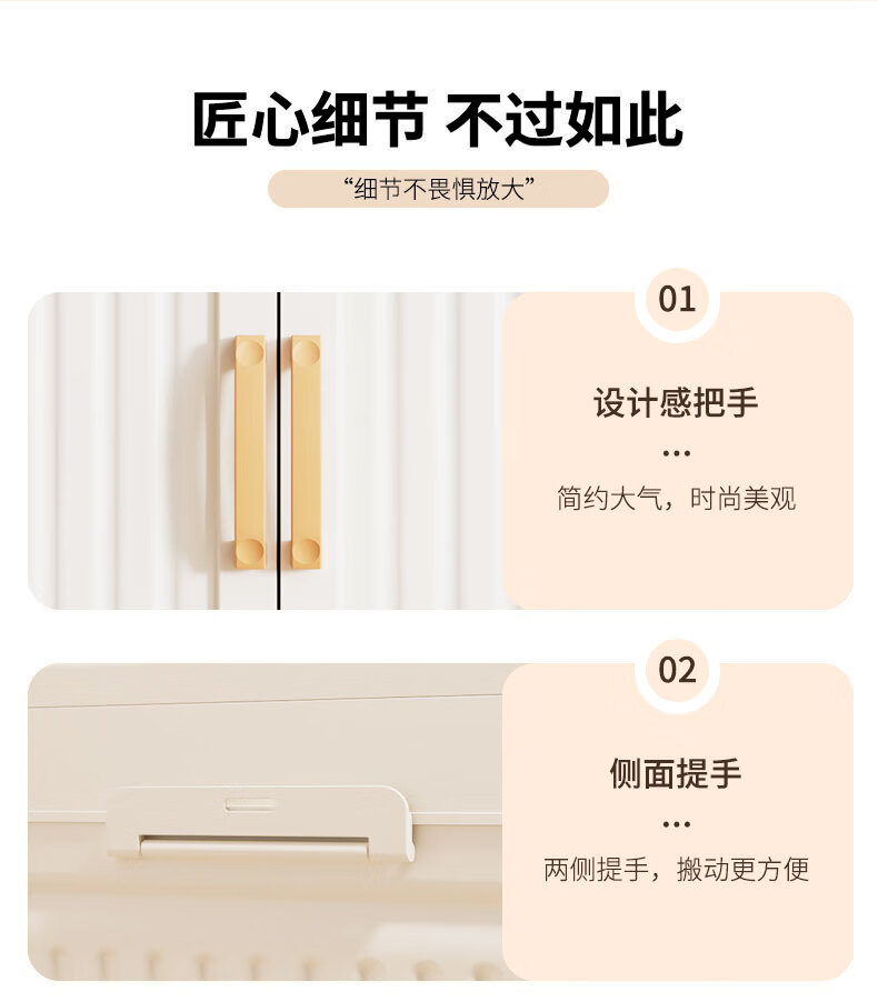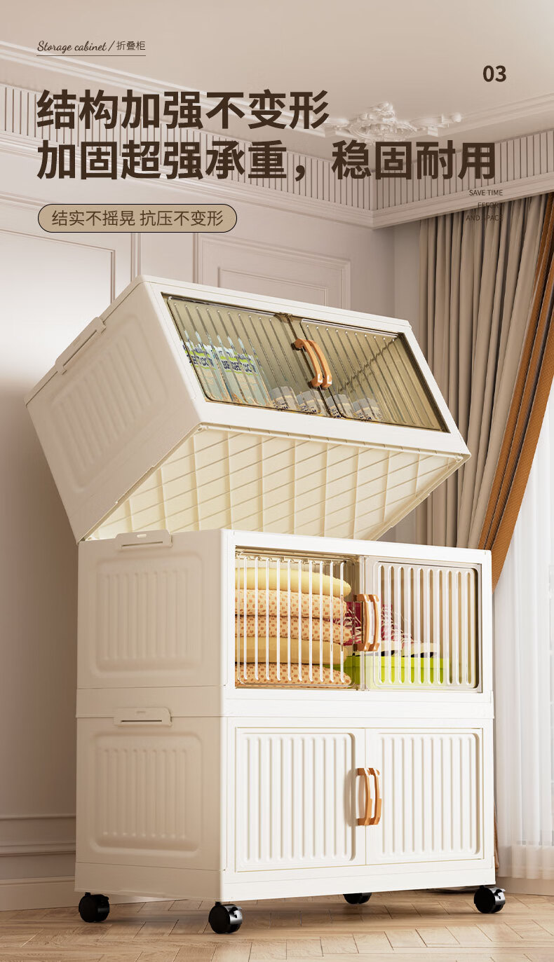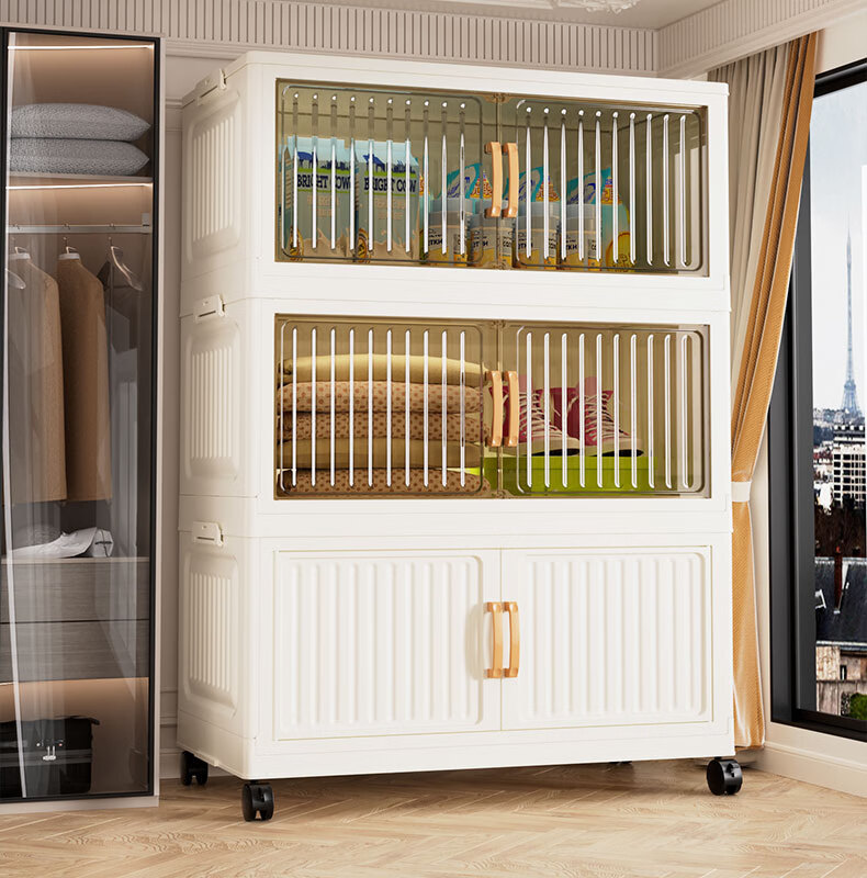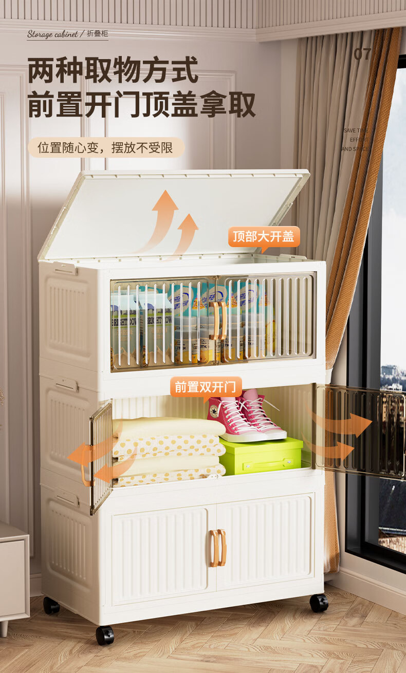 京东物流 竖纹客厅零食收纳柜折叠衣服收纳箱家用杂物整理储物柜 50cm 透明色1层