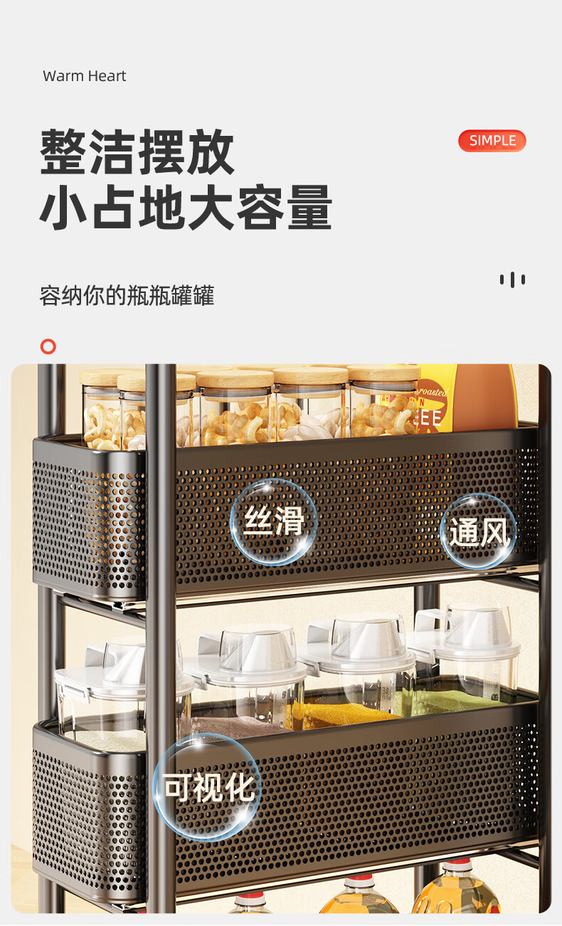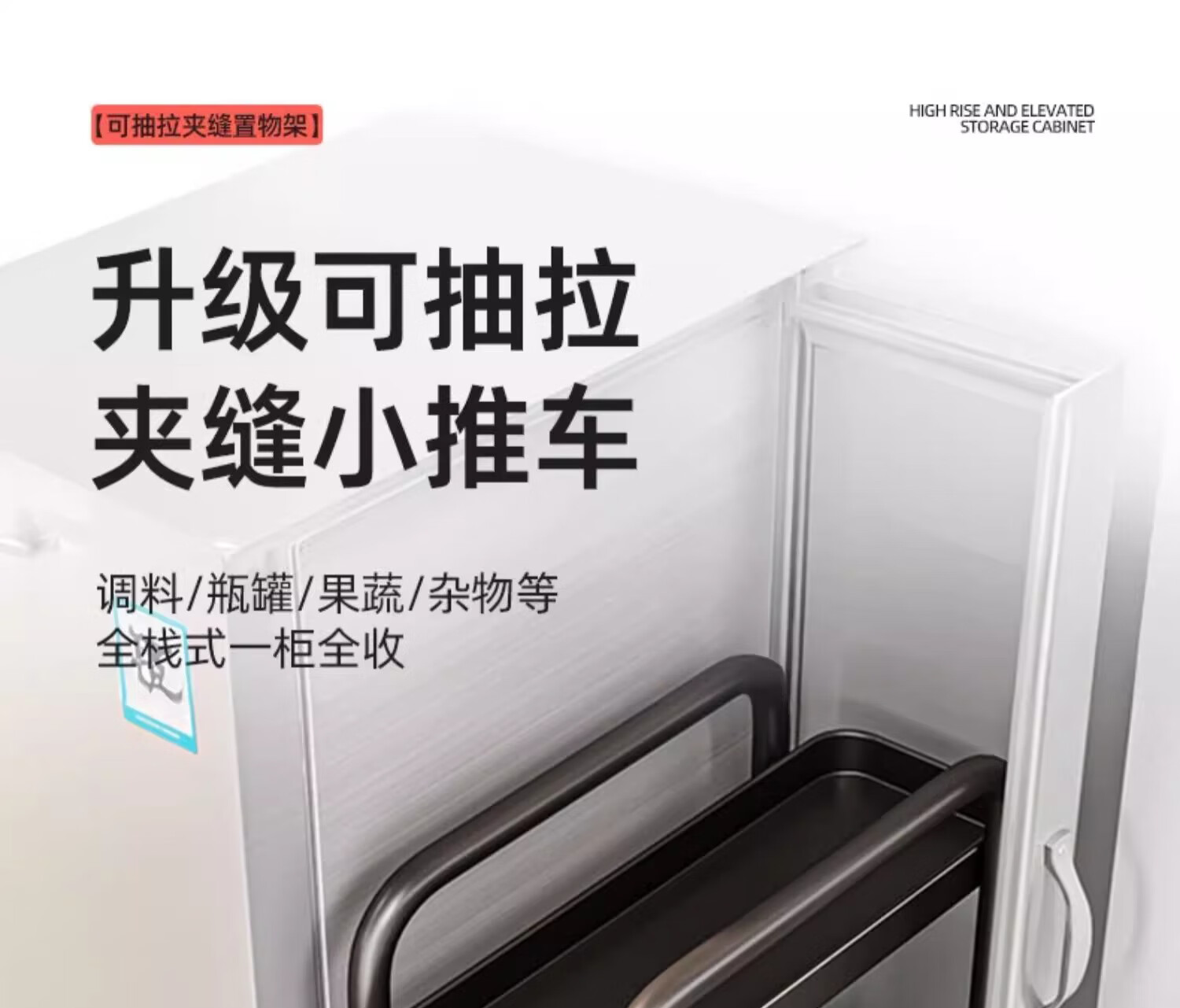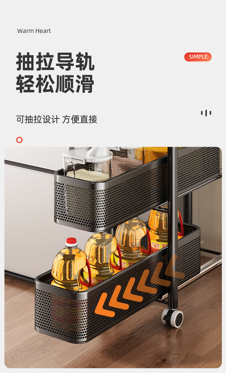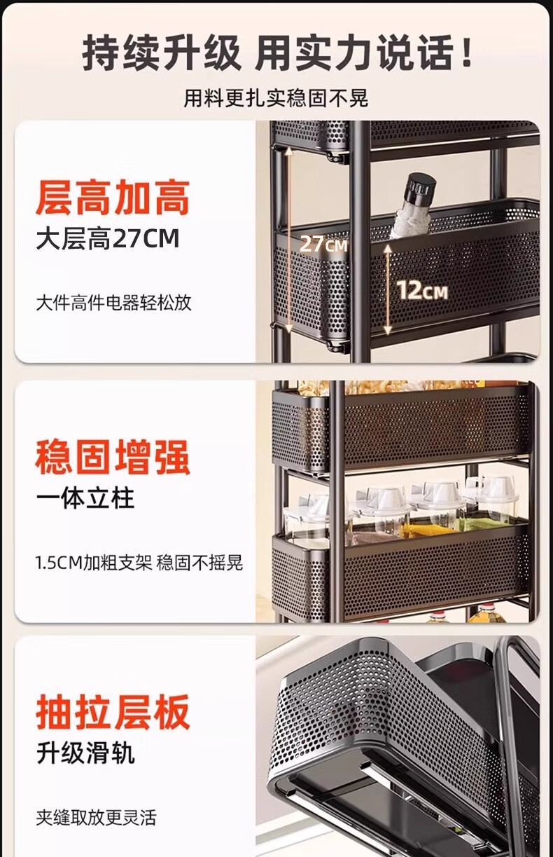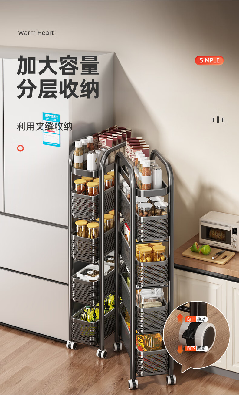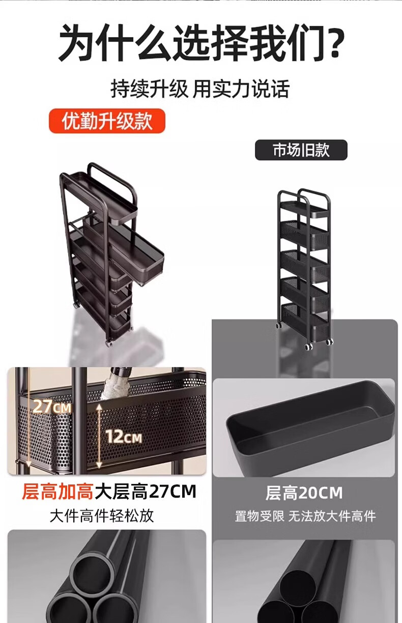 优勤(YOUQIN)厨房置物架夹缝极窄缝隙落地收纳柜多层冰箱侧面抽拉柜果蔬小推车 20cm宽五层黑色【可抽拉高围护】