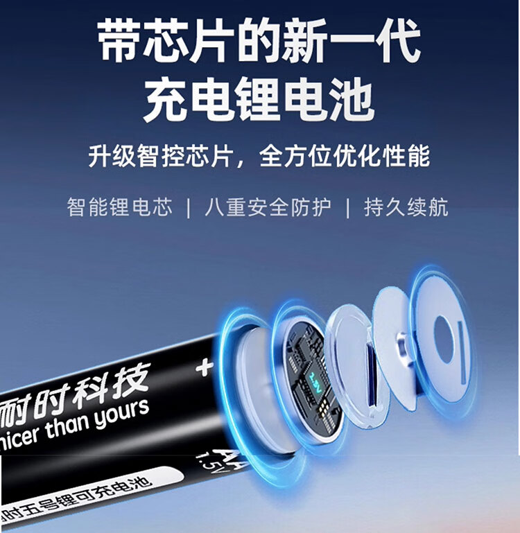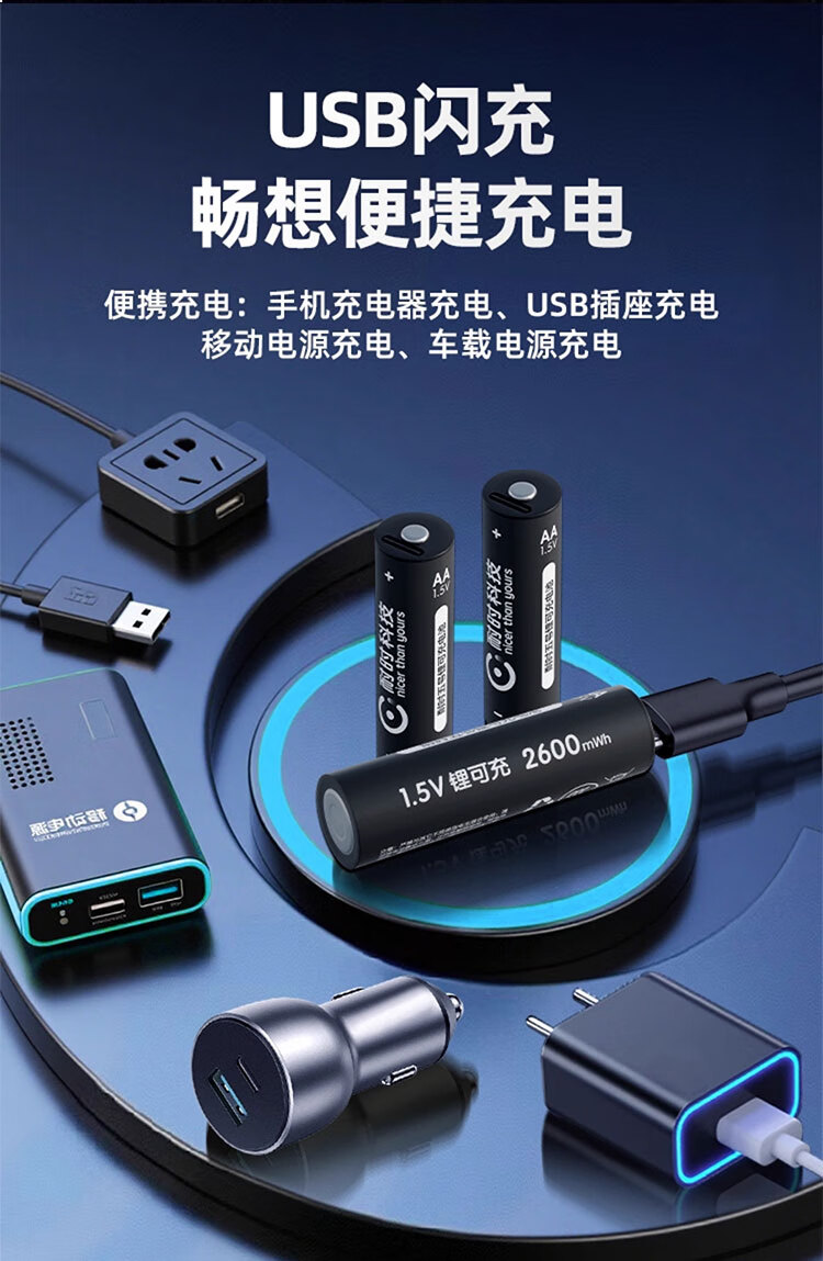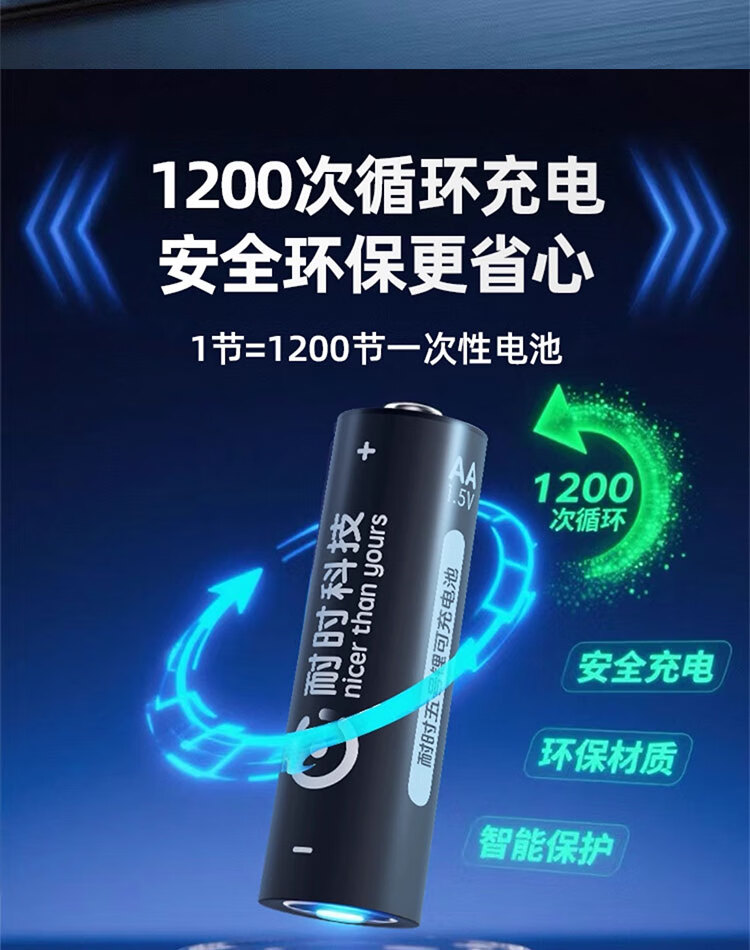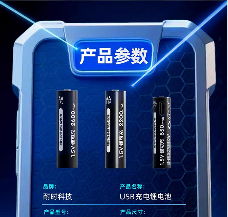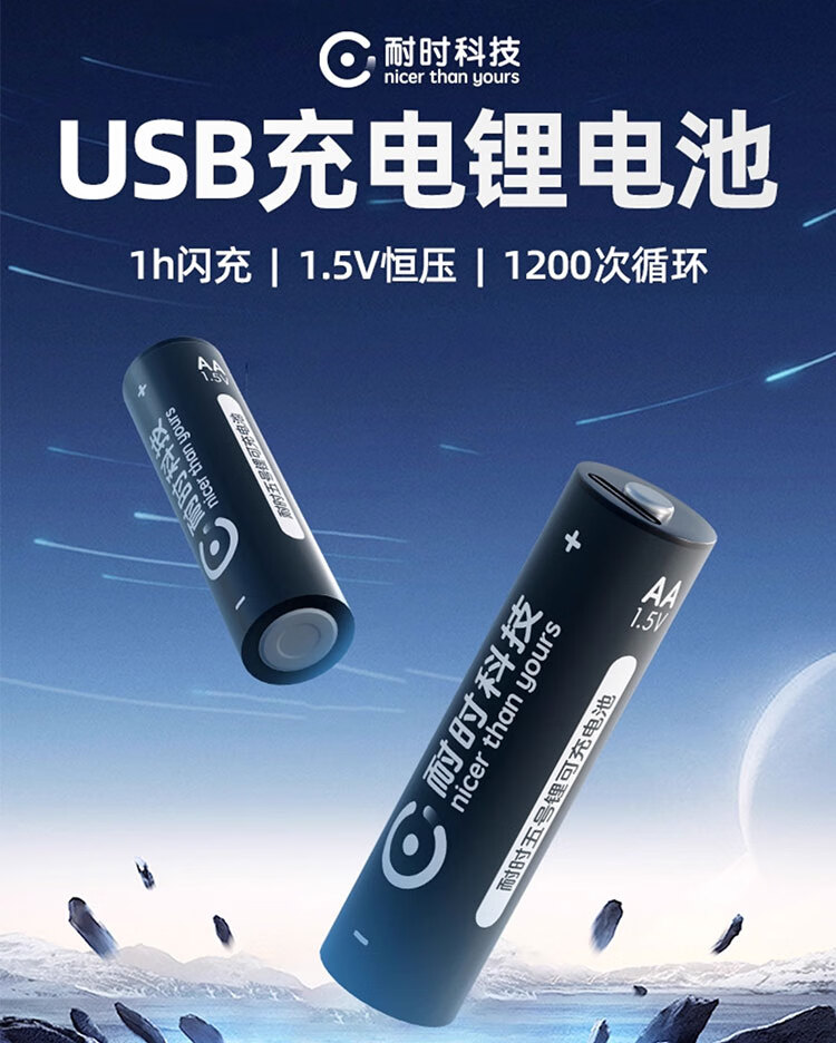 耐时5号7号可充电锂电池套装五号七号usb1.5V大容量充电仓玩具ktv话筒游戏手柄CCD相机智能门锁 【USB锂可充】5号1粒-2200mwh