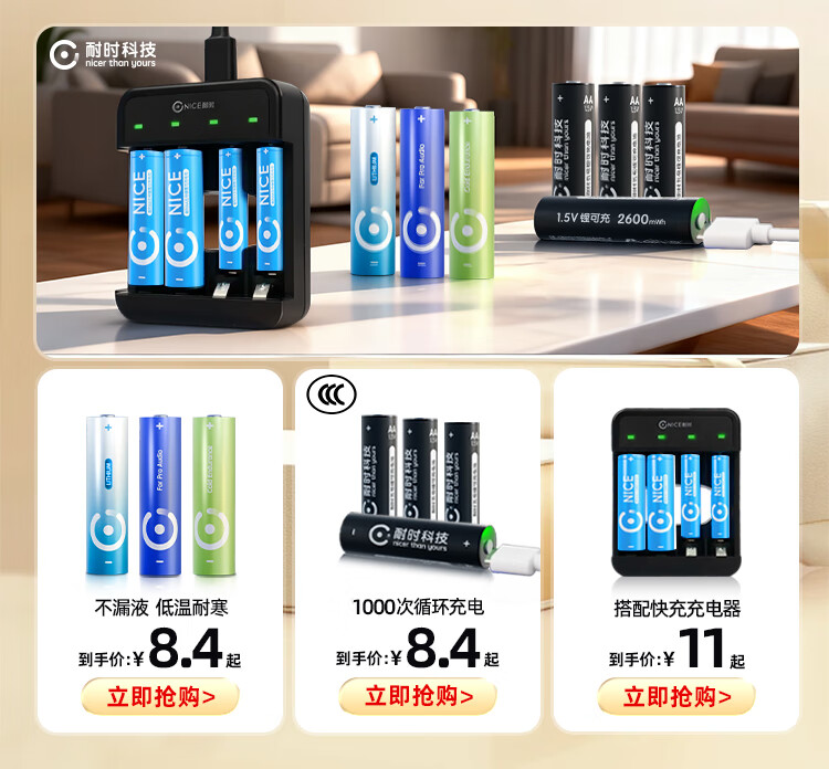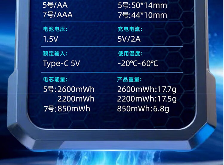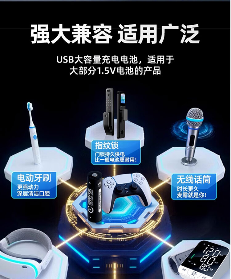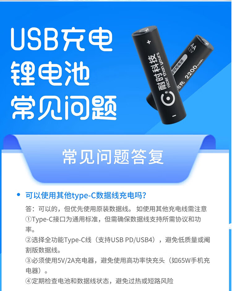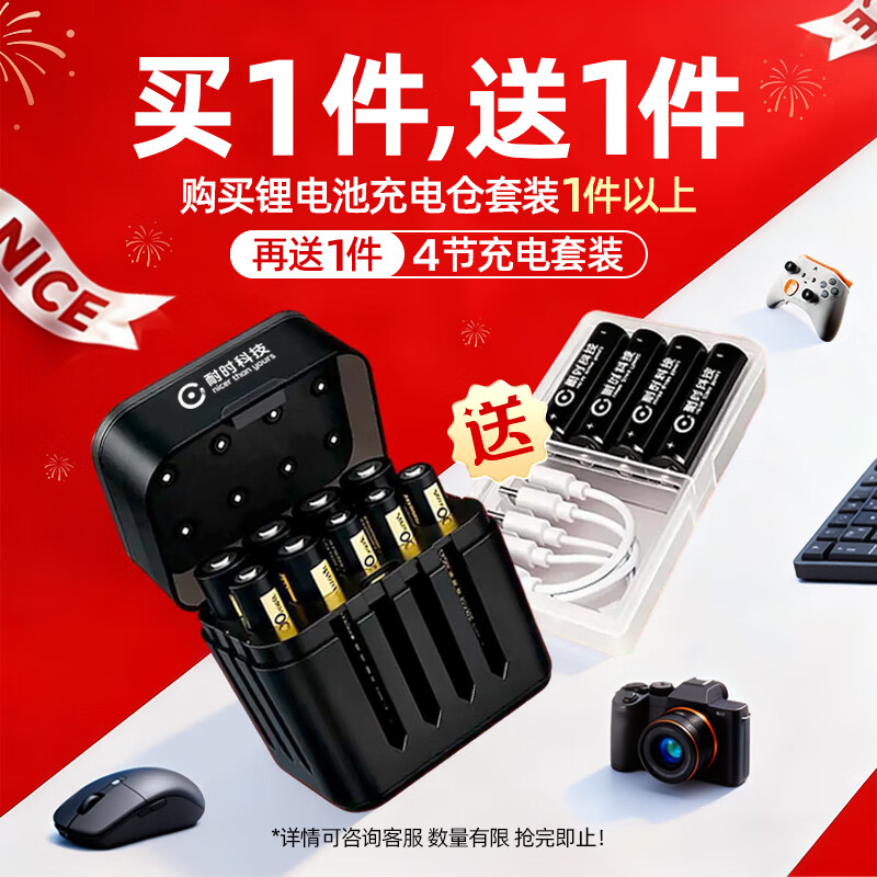 耐时5号7号可充电锂电池套装五号七号usb1.5V大容量充电仓玩具ktv话筒游戏手柄CCD相机智能门锁 【USB锂可充】5号1粒-2200mwh