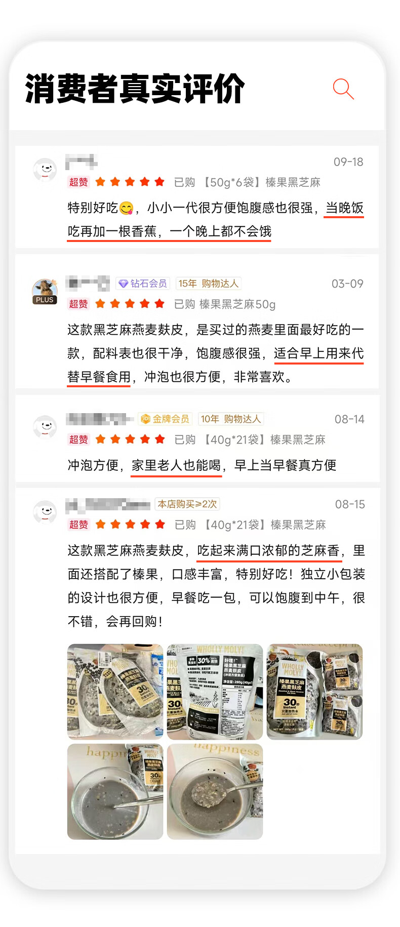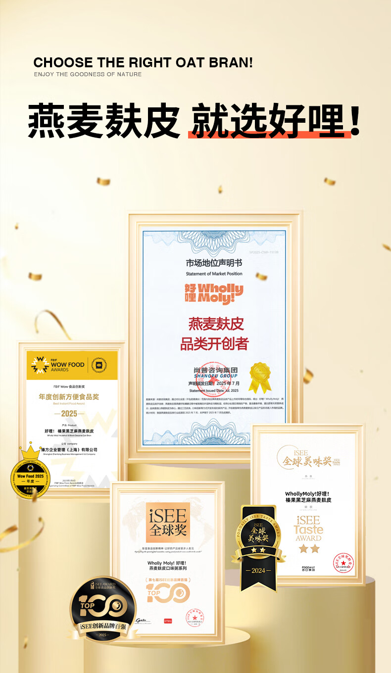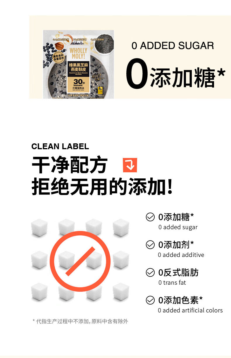 WHOLLY MOLY!好哩榛果黑芝麻燕麦麸皮40g*7袋 高膳食纤维高蛋白 营养早餐代餐