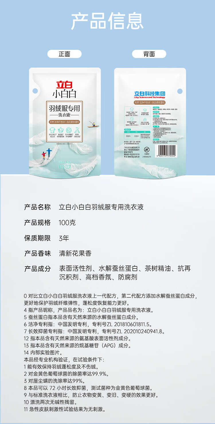 立白羽绒服洗衣液去渍不伤衣物去渍套装 羽绒服洗衣液100g*2+大师液100g