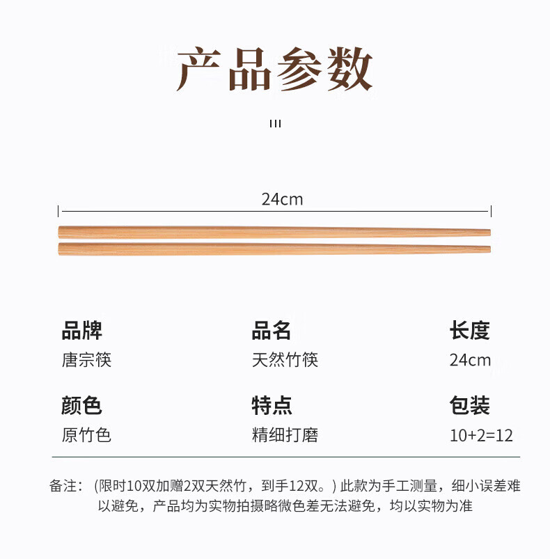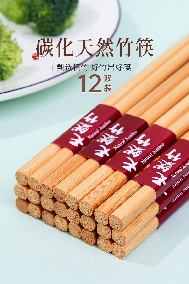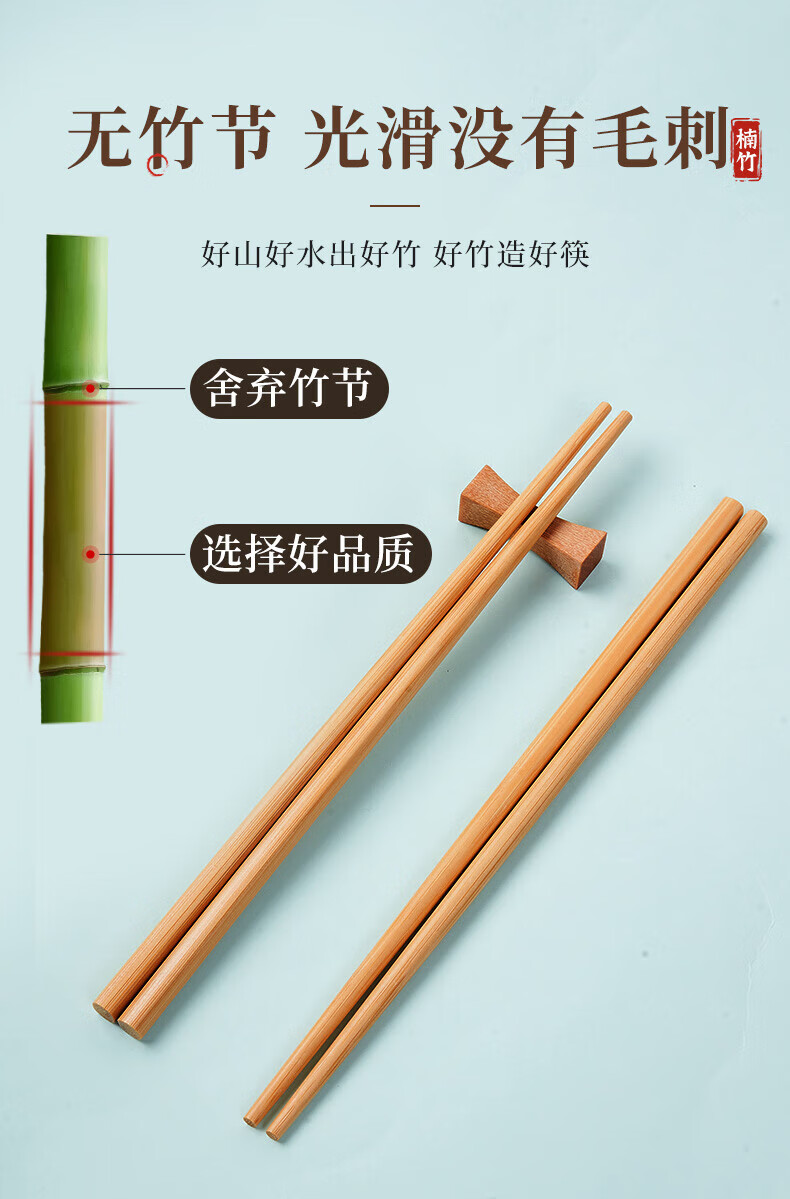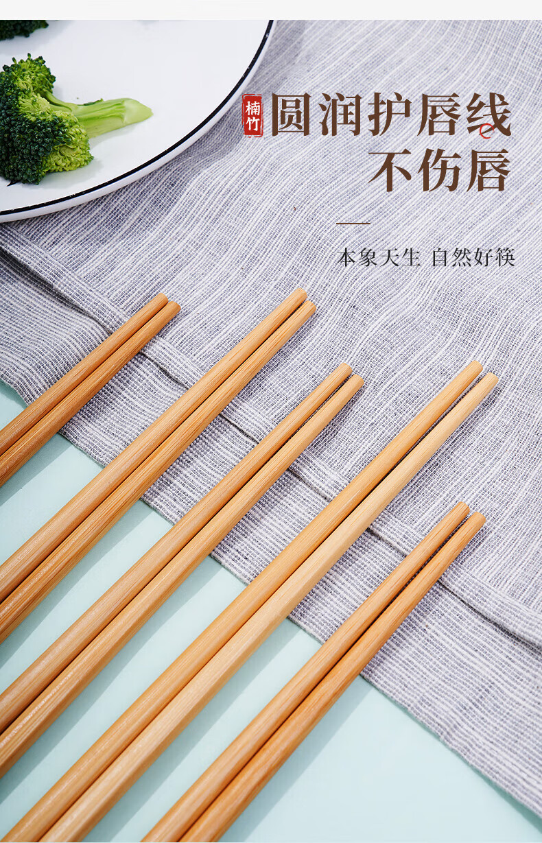 唐宗筷天然筷子竹筷无漆无蜡原生楠竹碳化不易发霉便携木筷公筷家用酒店 天然竹筷-20双装