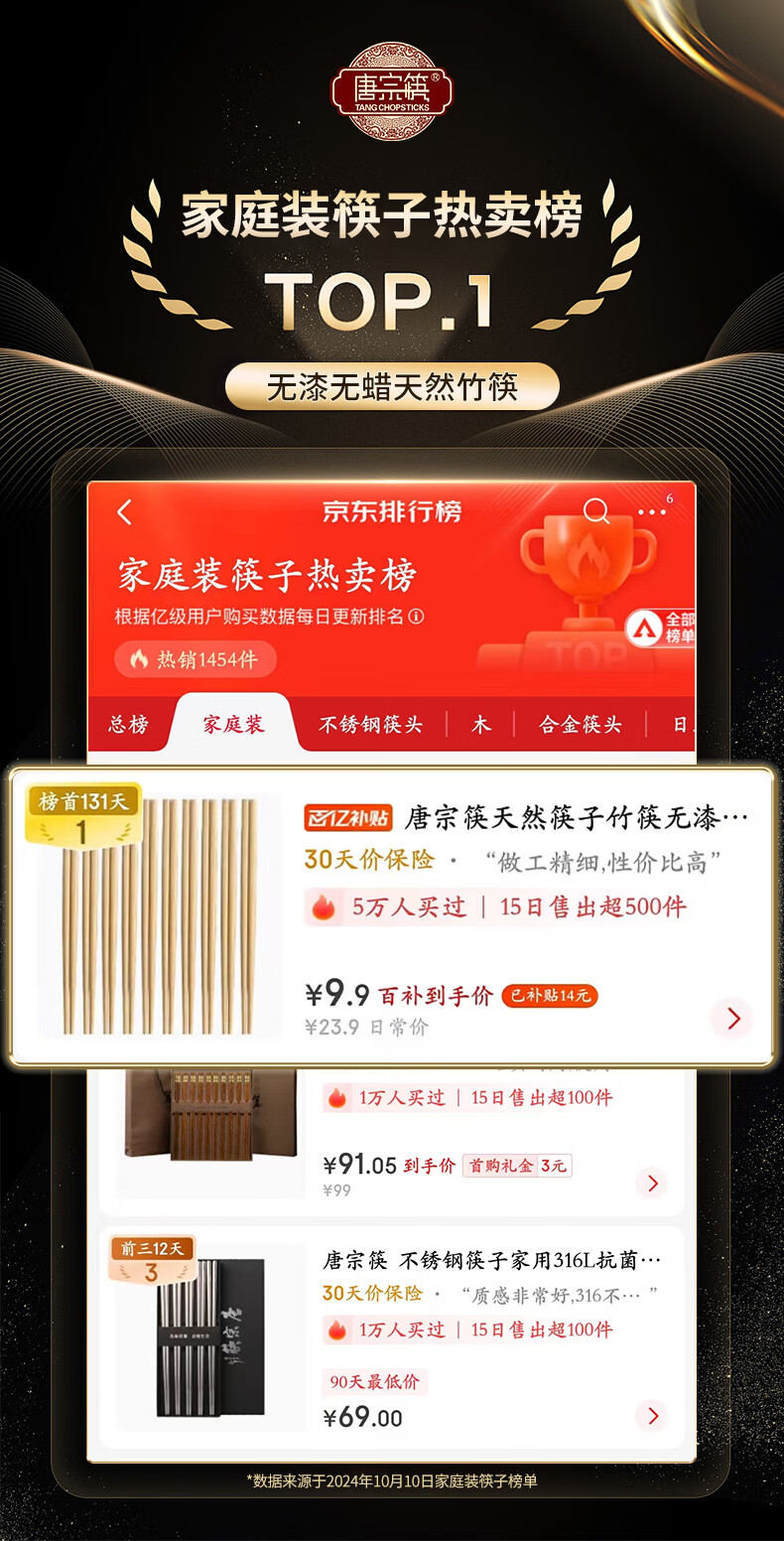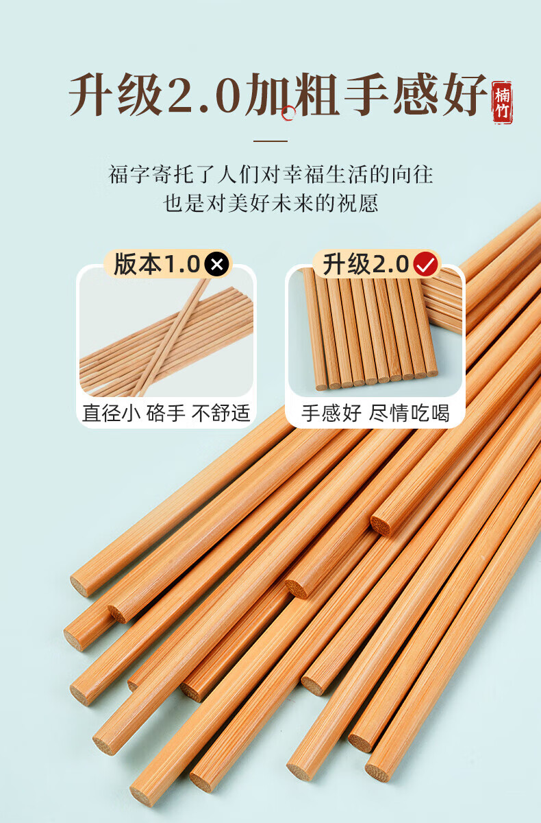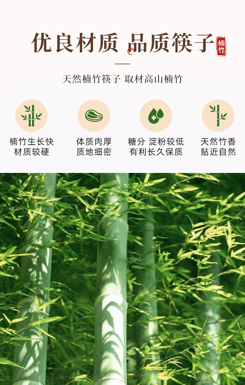 唐宗筷天然筷子竹筷无漆无蜡原生楠竹碳化不易发霉便携木筷公筷家用酒店 天然竹筷-20双装