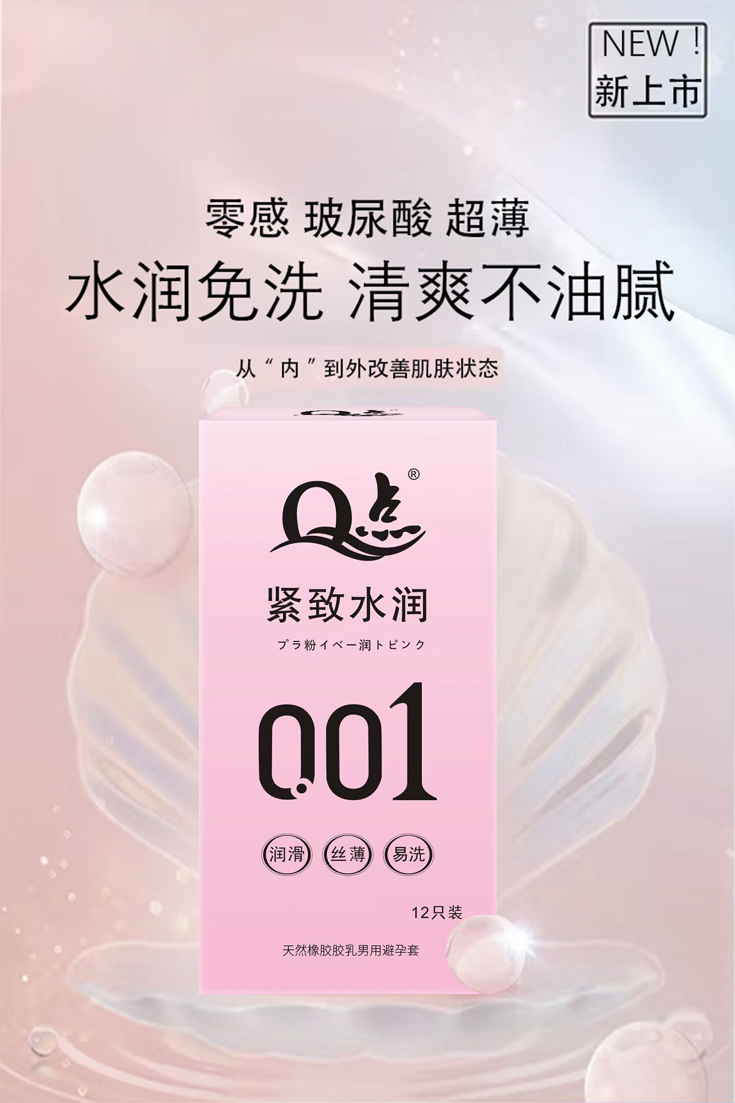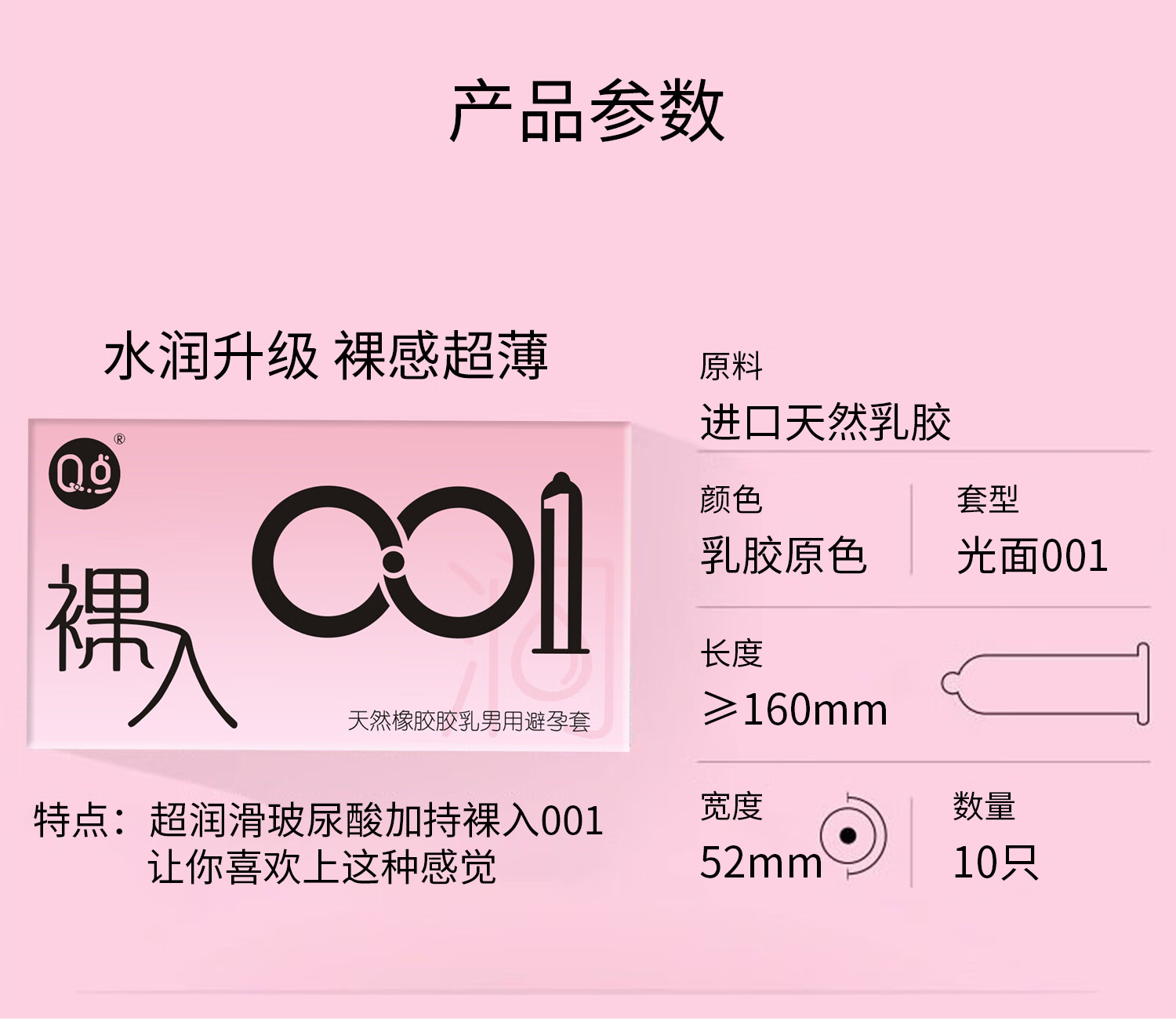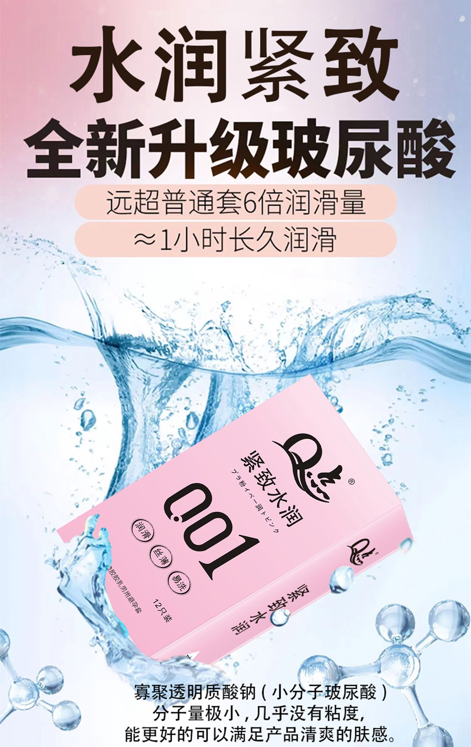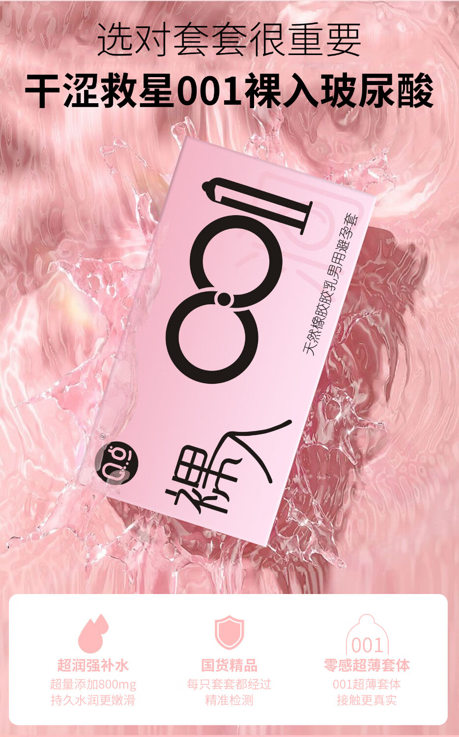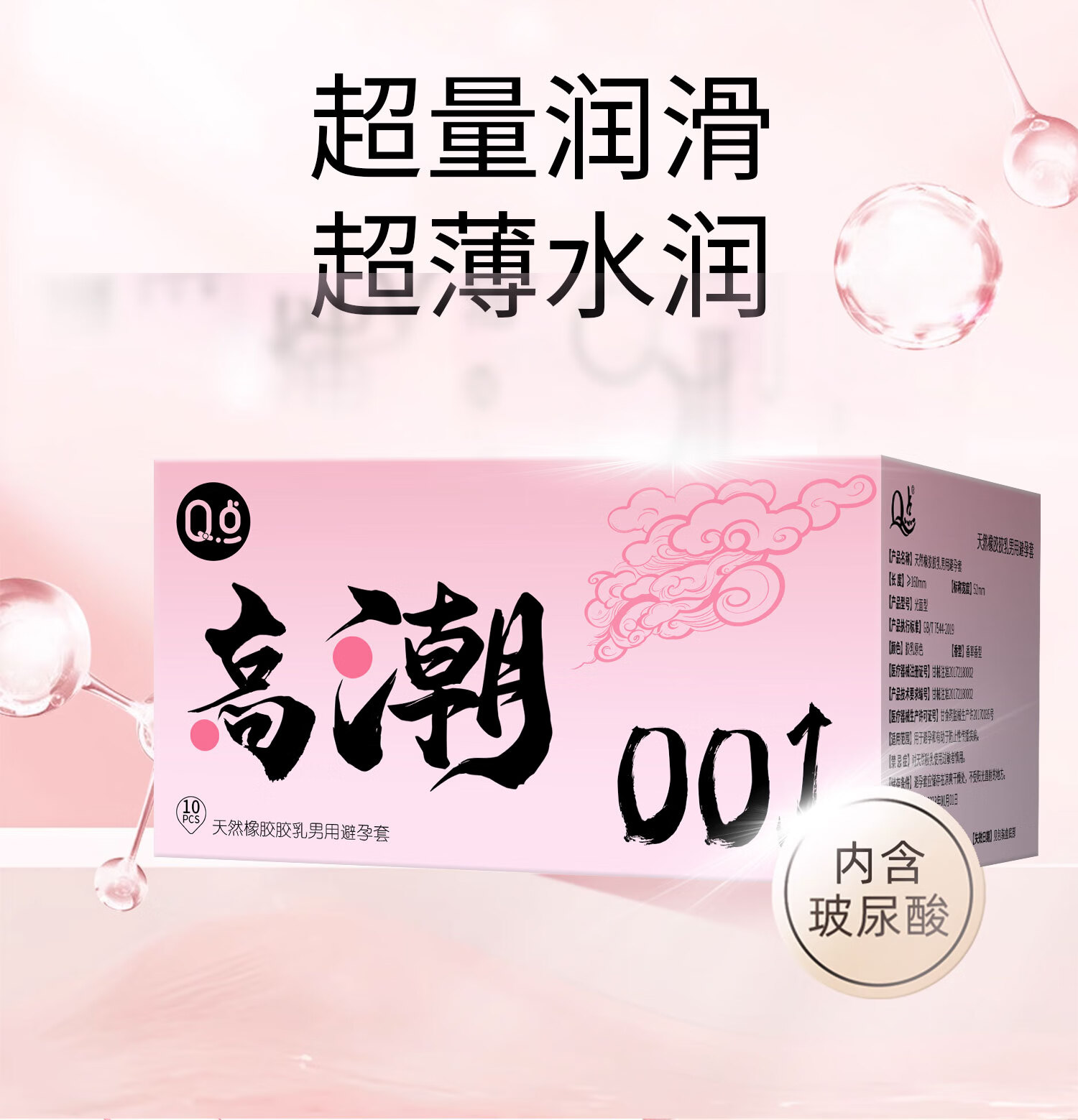 Q点001超薄避孕套玻尿酸无感男专用戴无套裸感狼牙套高端新品安全套 【两盒共20只】玻尿酸超薄003+粉润3D颗粒