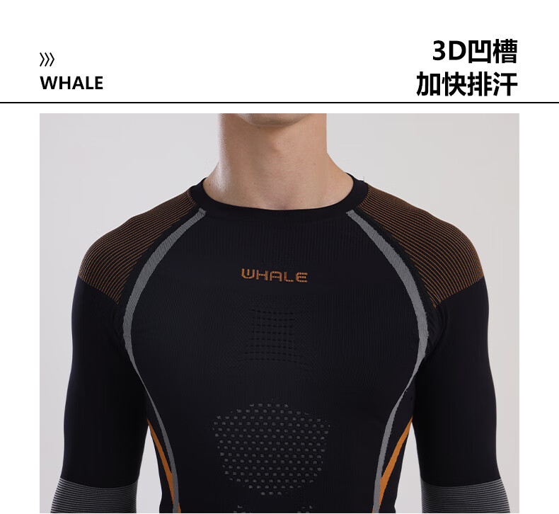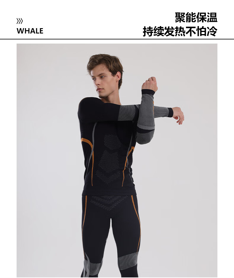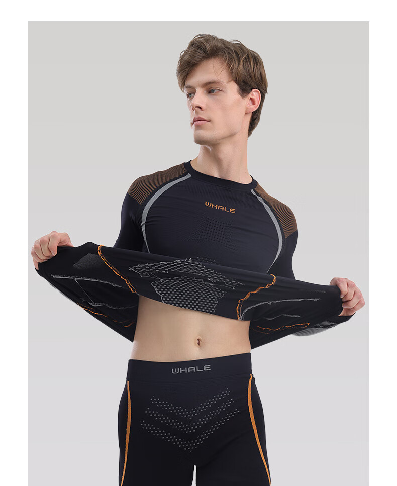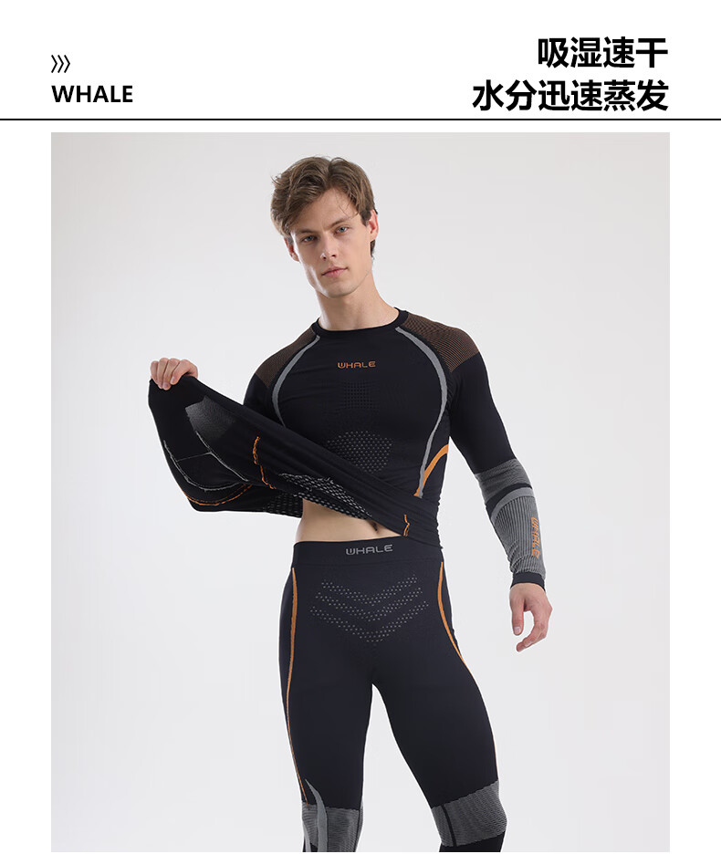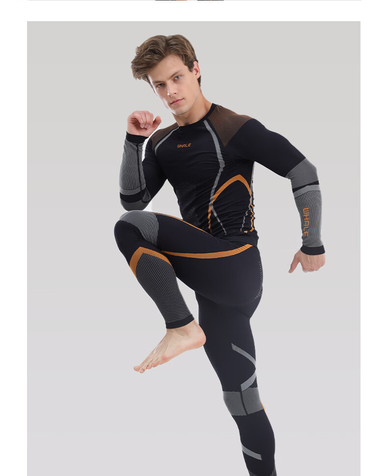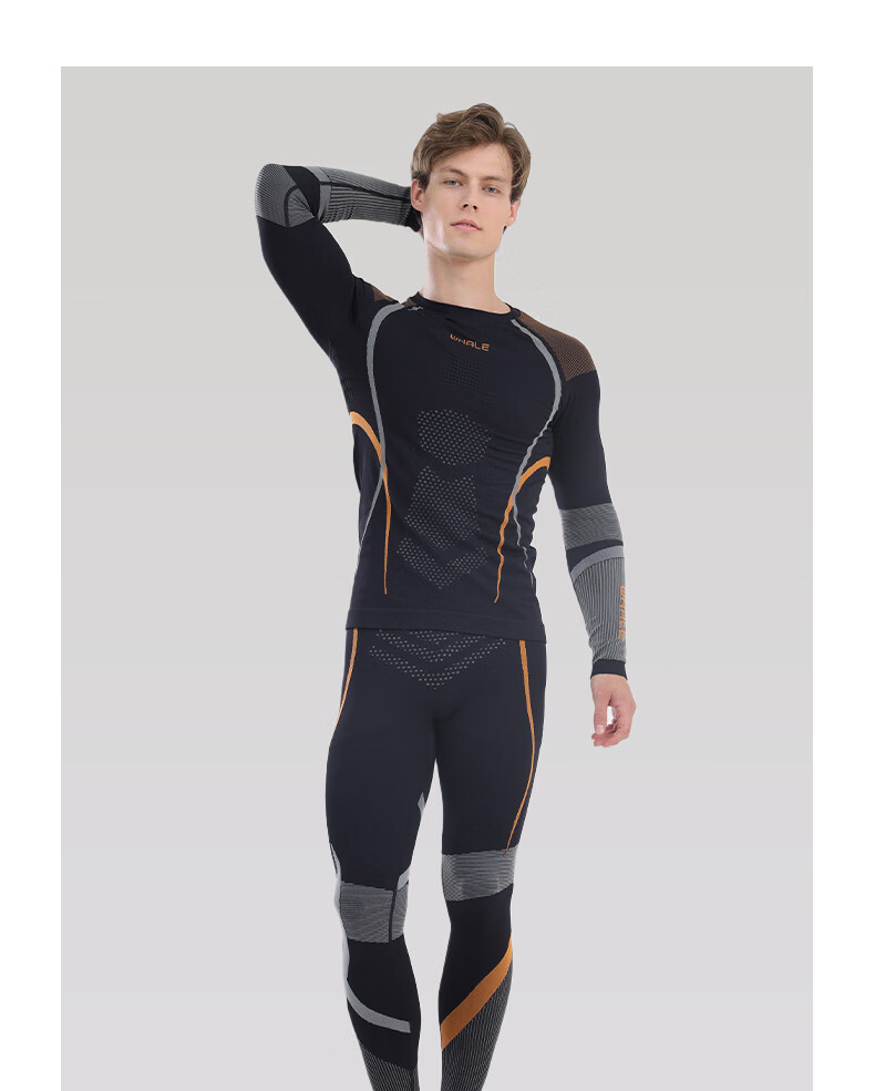 鲸鱼男士速干衣保暖内衣户外运动滑雪保暖套装冬季修身舒适防寒 男款速干保暖衣-灰橙色 XL