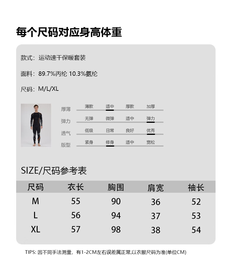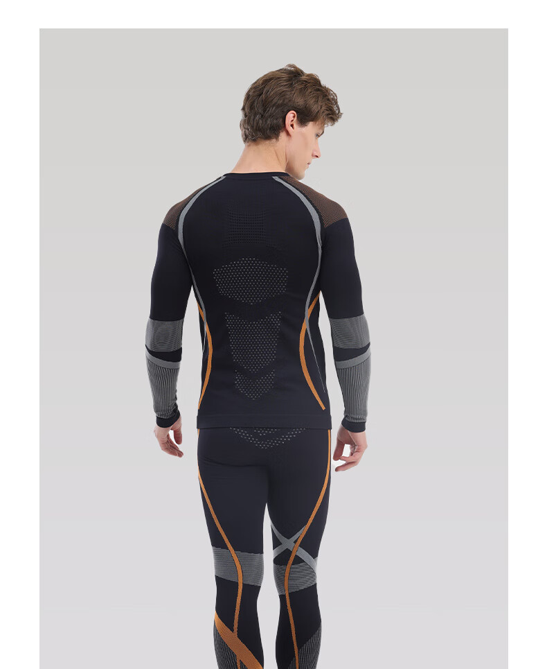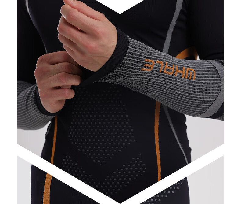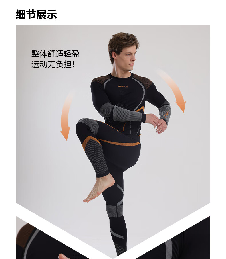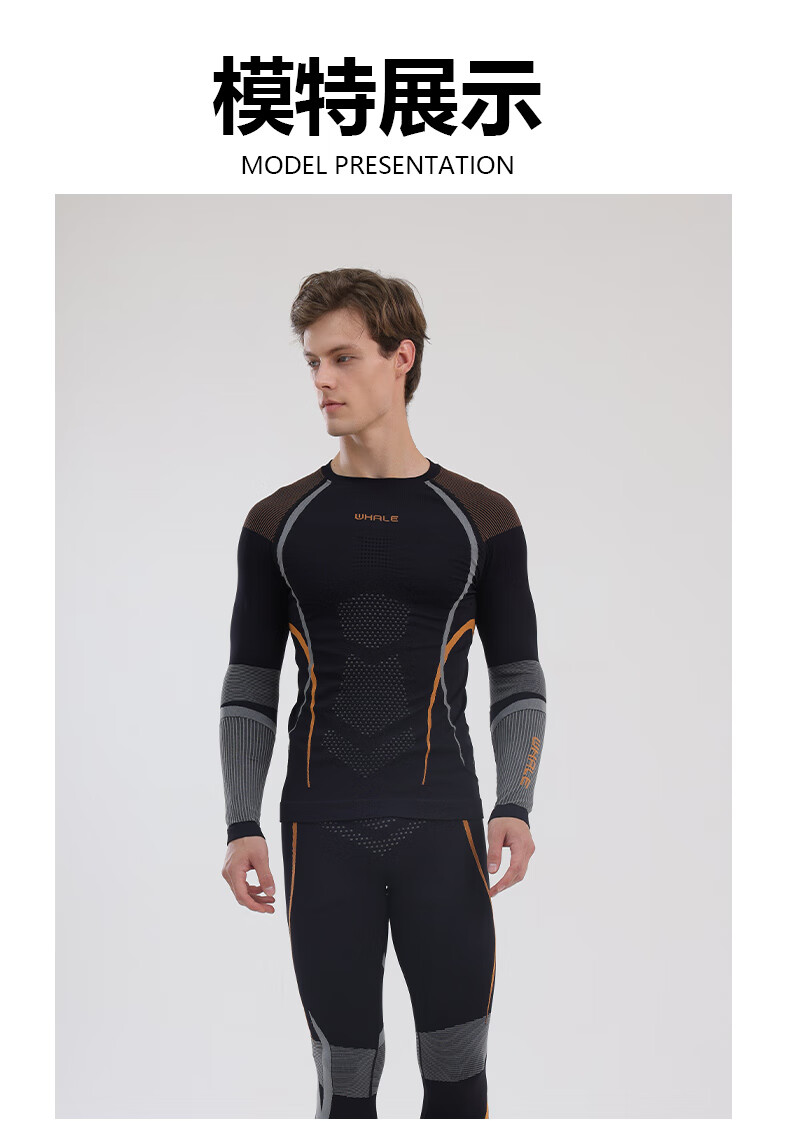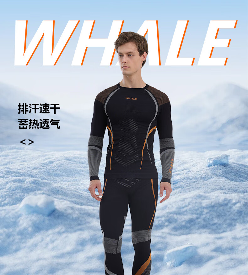 鲸鱼男士速干衣保暖内衣户外运动滑雪保暖套装冬季修身舒适防寒 男款速干保暖衣-灰橙色 XL