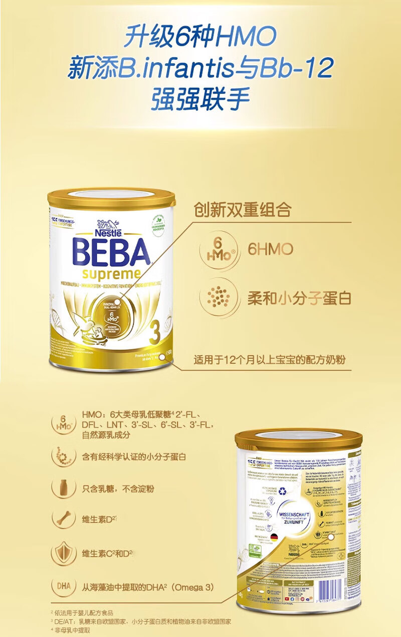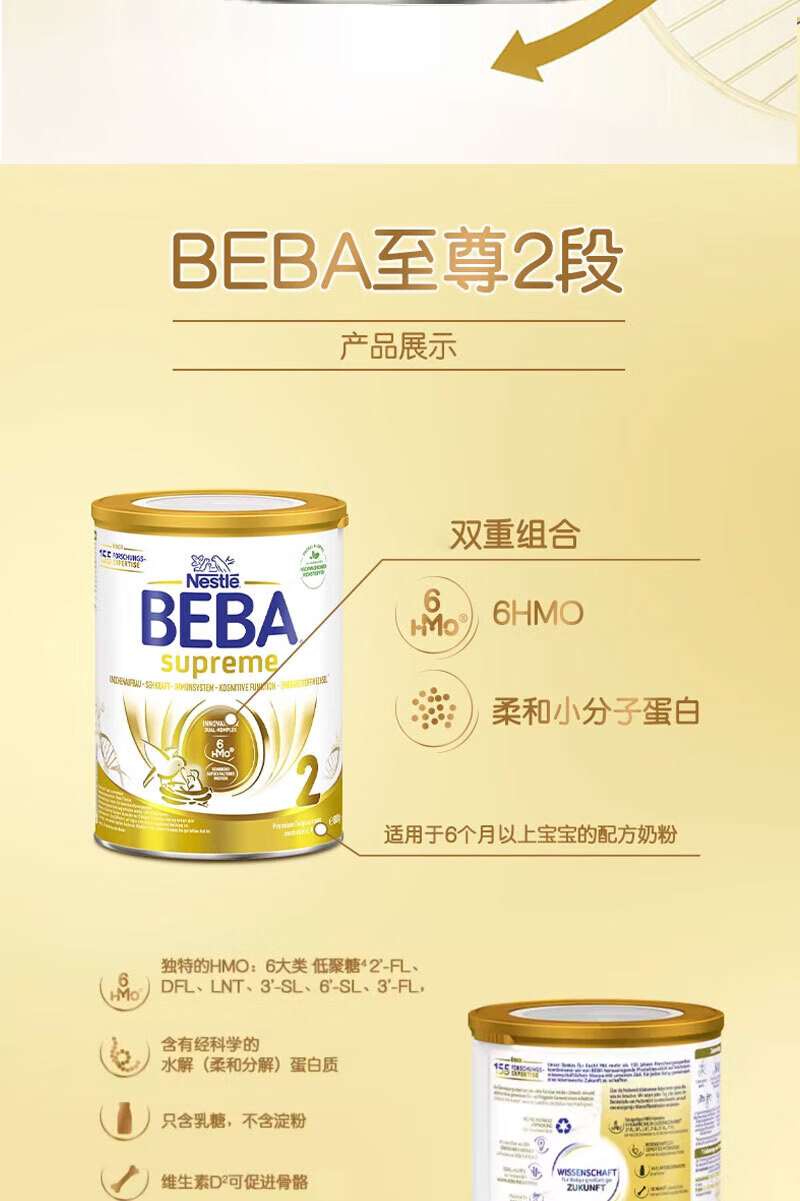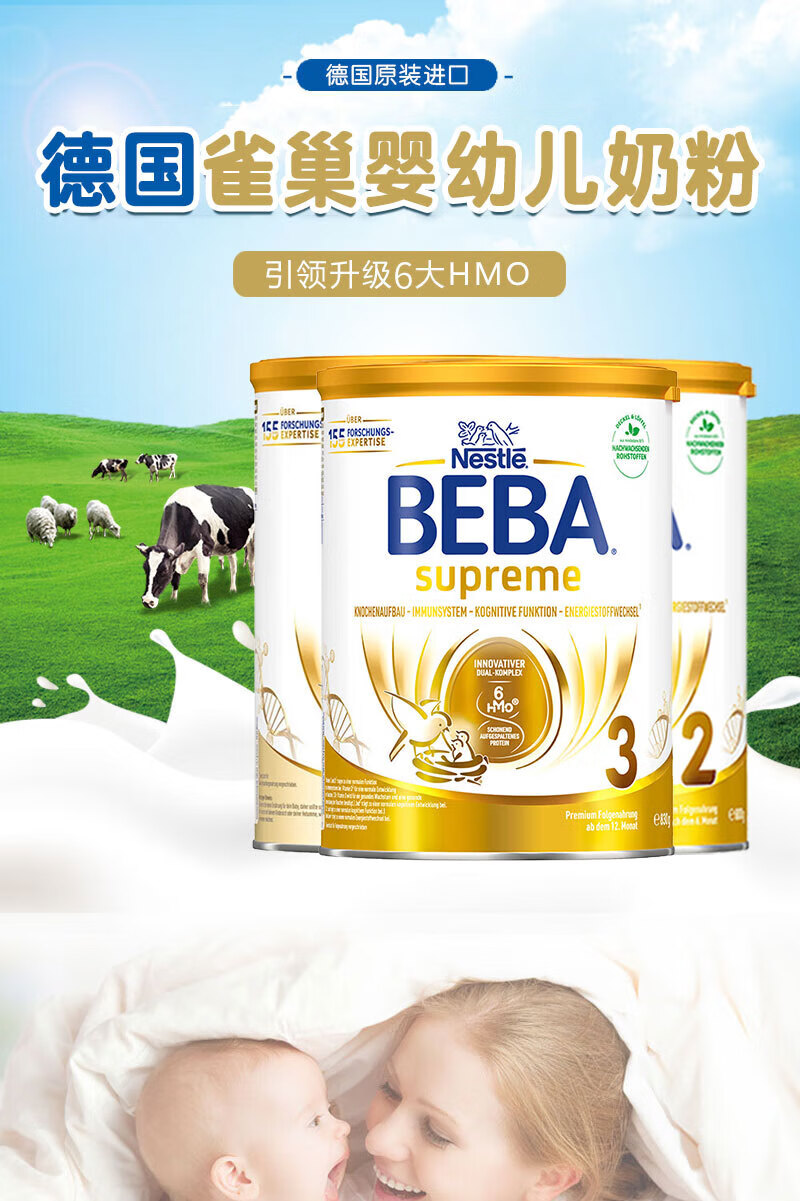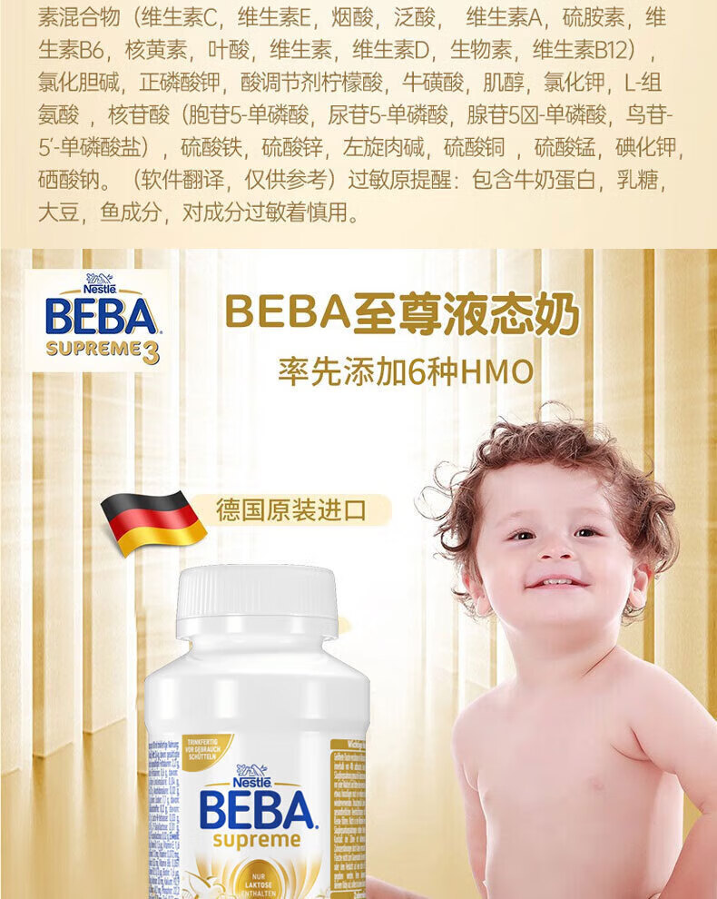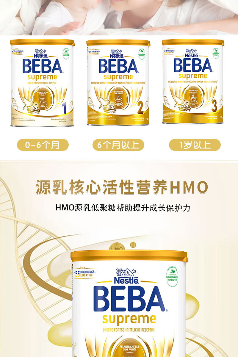 雀巢德国雀巢新款至尊BEBA液态水奶 贝巴新款至尊奶粉 添加6种HMO (1岁以上)至尊 1+段800g【1罐】
