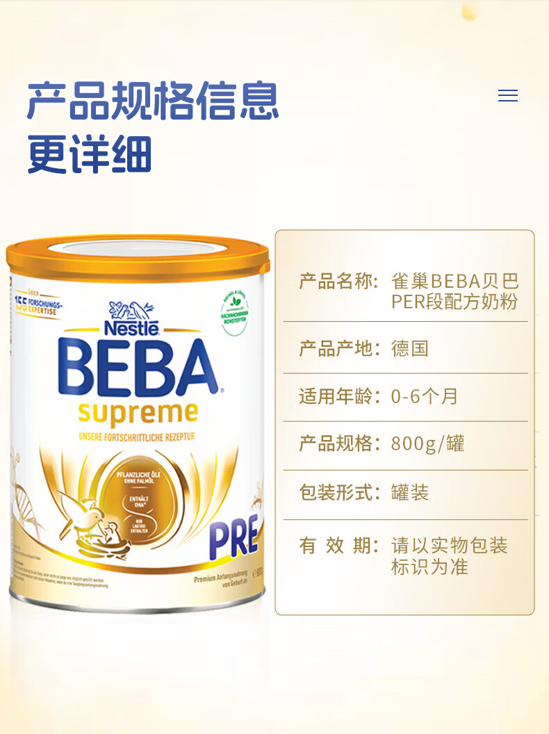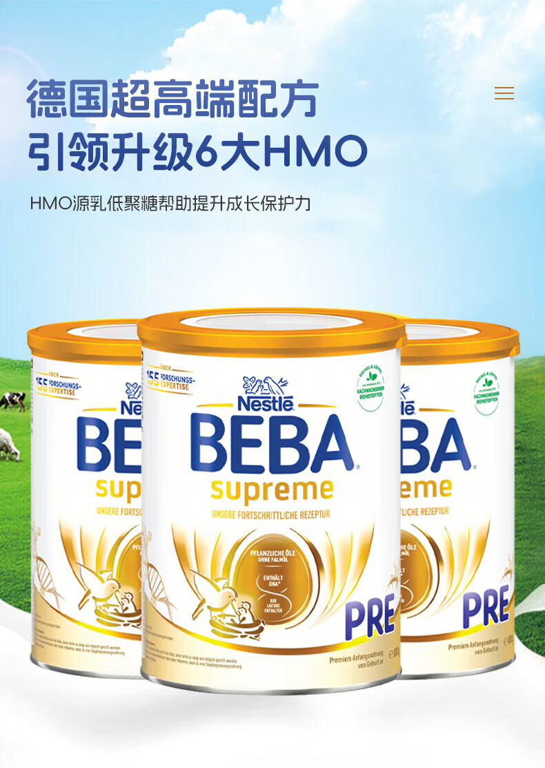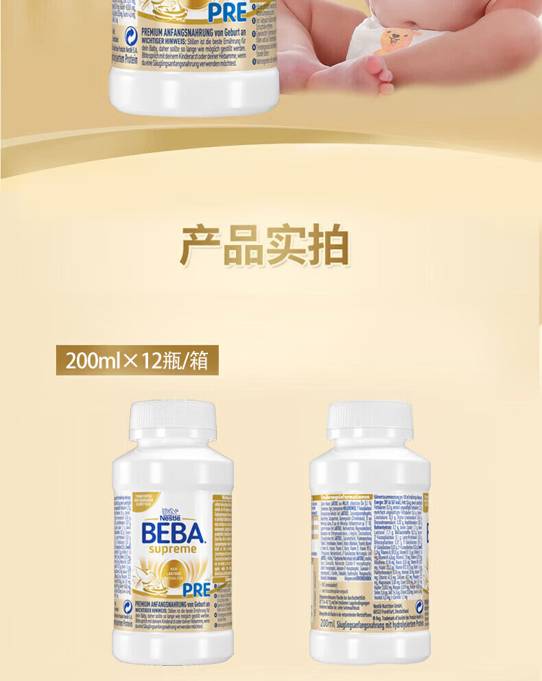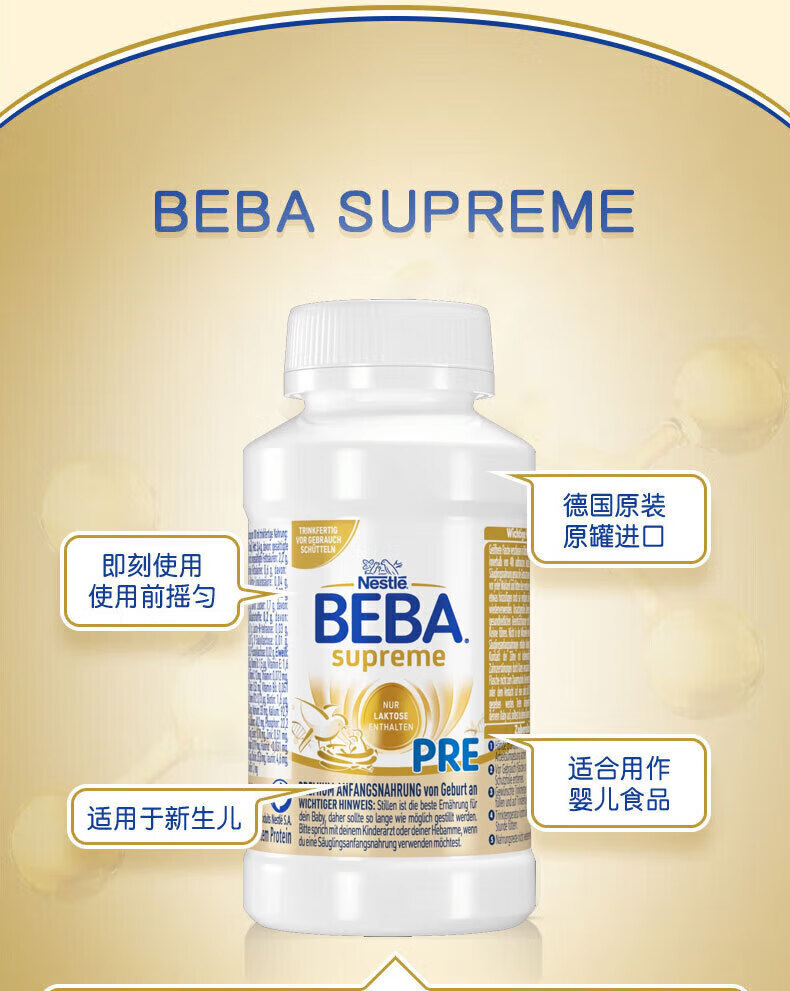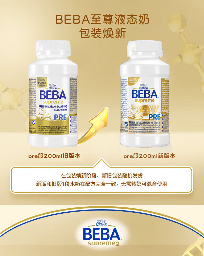 雀巢德国雀巢新款至尊BEBA液态水奶 贝巴新款至尊奶粉 添加6种HMO (1岁以上)至尊 1+段800g【1罐】