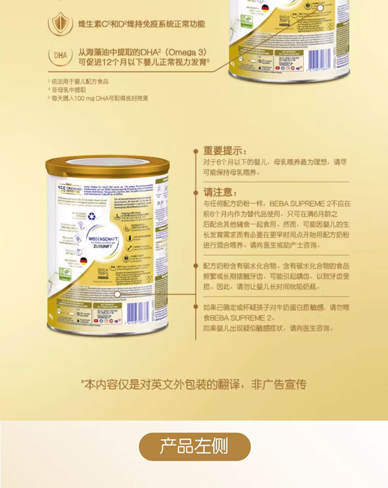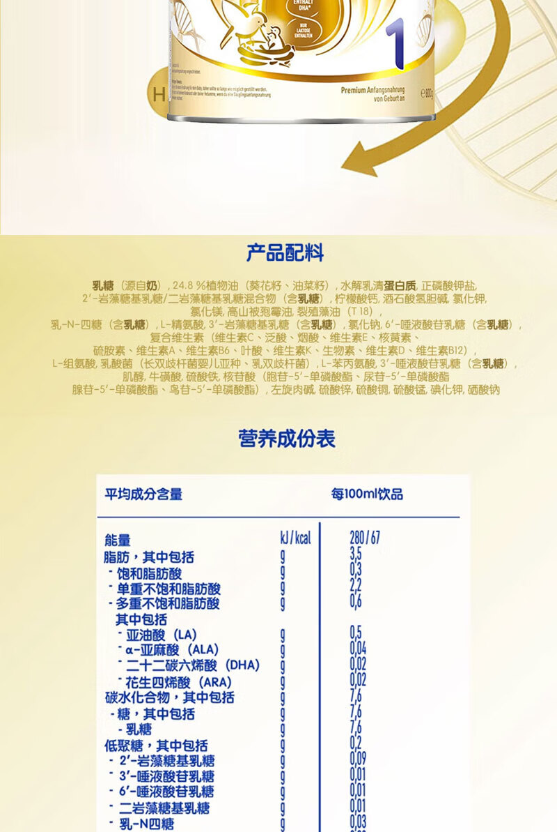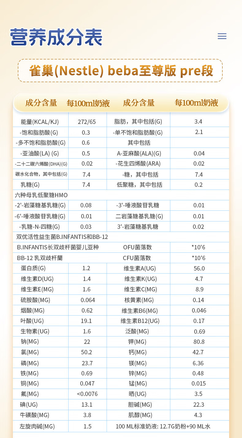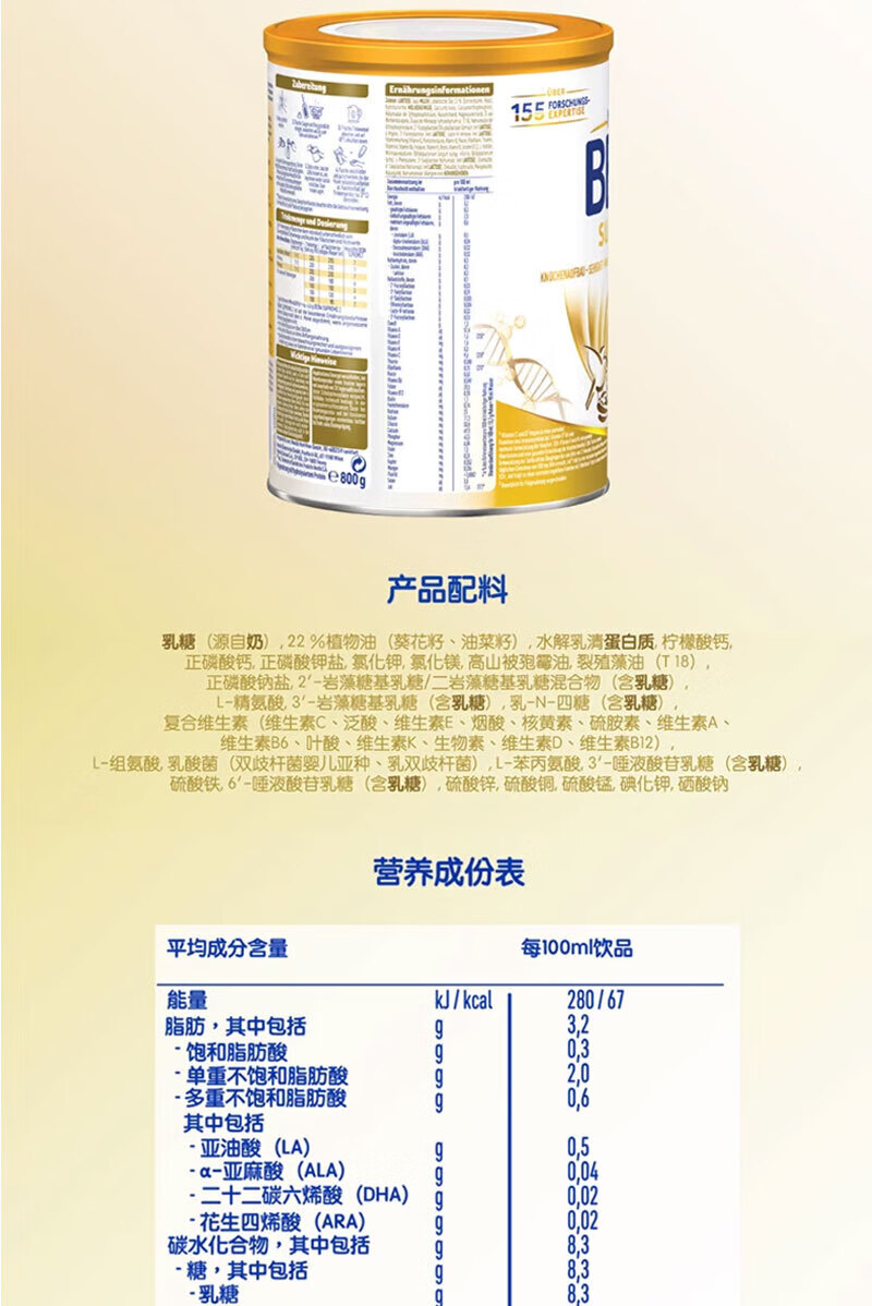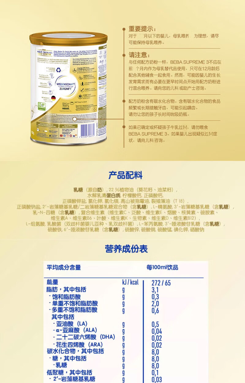 雀巢德国雀巢新款至尊BEBA液态水奶 贝巴新款至尊奶粉 添加6种HMO (1岁以上)至尊 1+段800g【1罐】