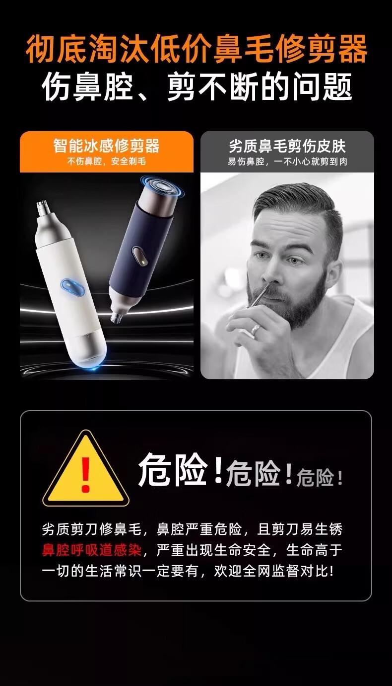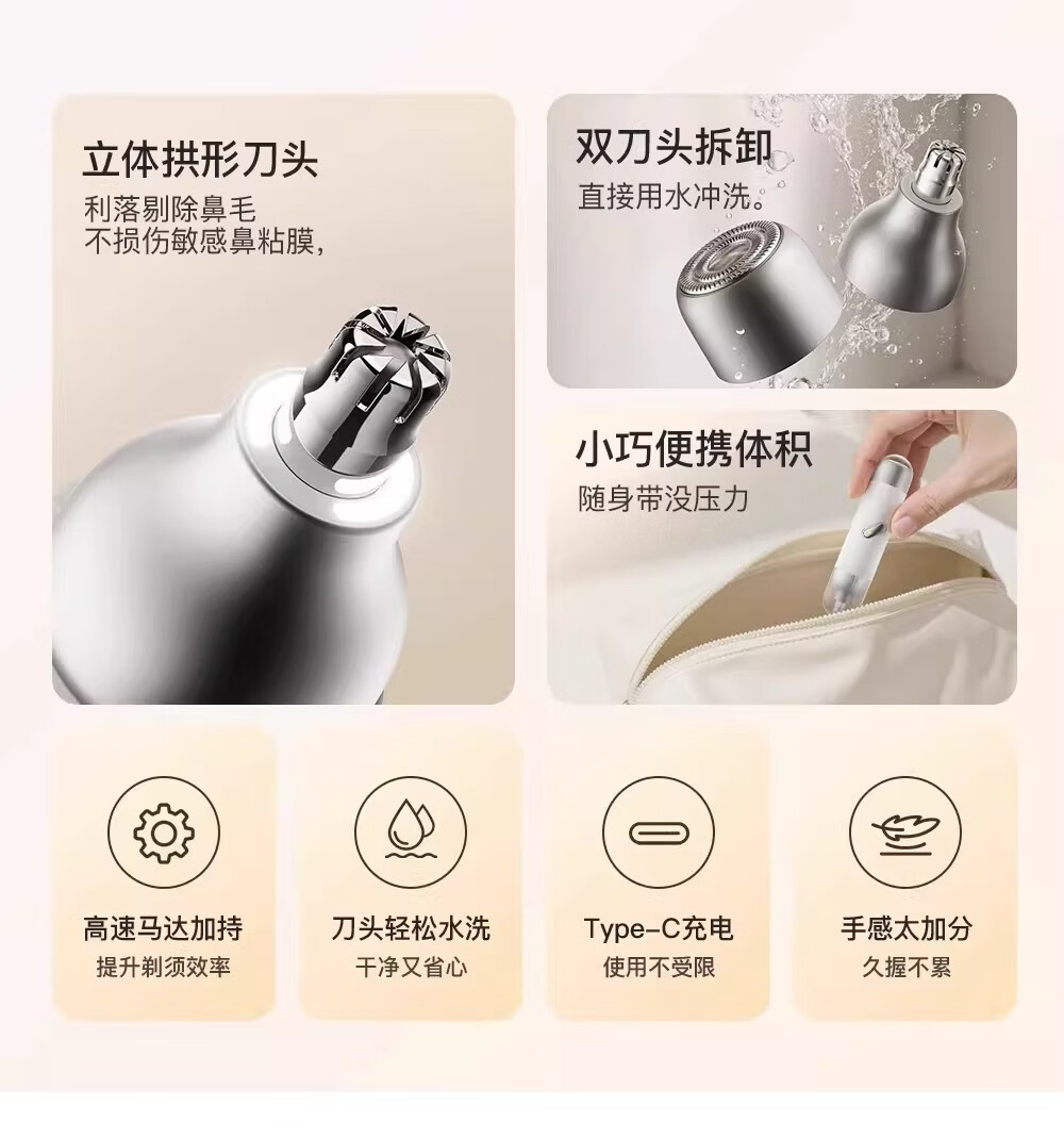 DIKTT【德国 无痛修剪】鼻毛修剪器男士专用电动剃须刀二合一可水洗多功能静音迷你便携刮胡刀不伤鼻腔 【灰蓝色】钛金刀头 全身水洗 剃须鼻毛二合一 超长续航 双头可拆 一机多用