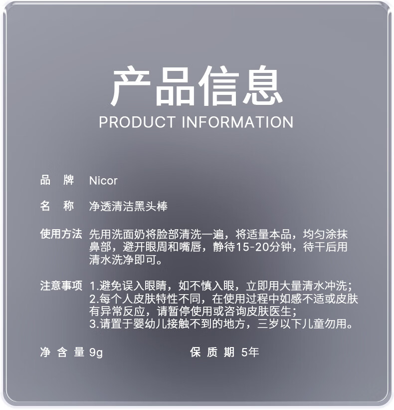 【现货现发】诺可雅净透清洁黑头棒9g泥膜棒涂抹式固体面膜 9g 净透清洁黑头棒