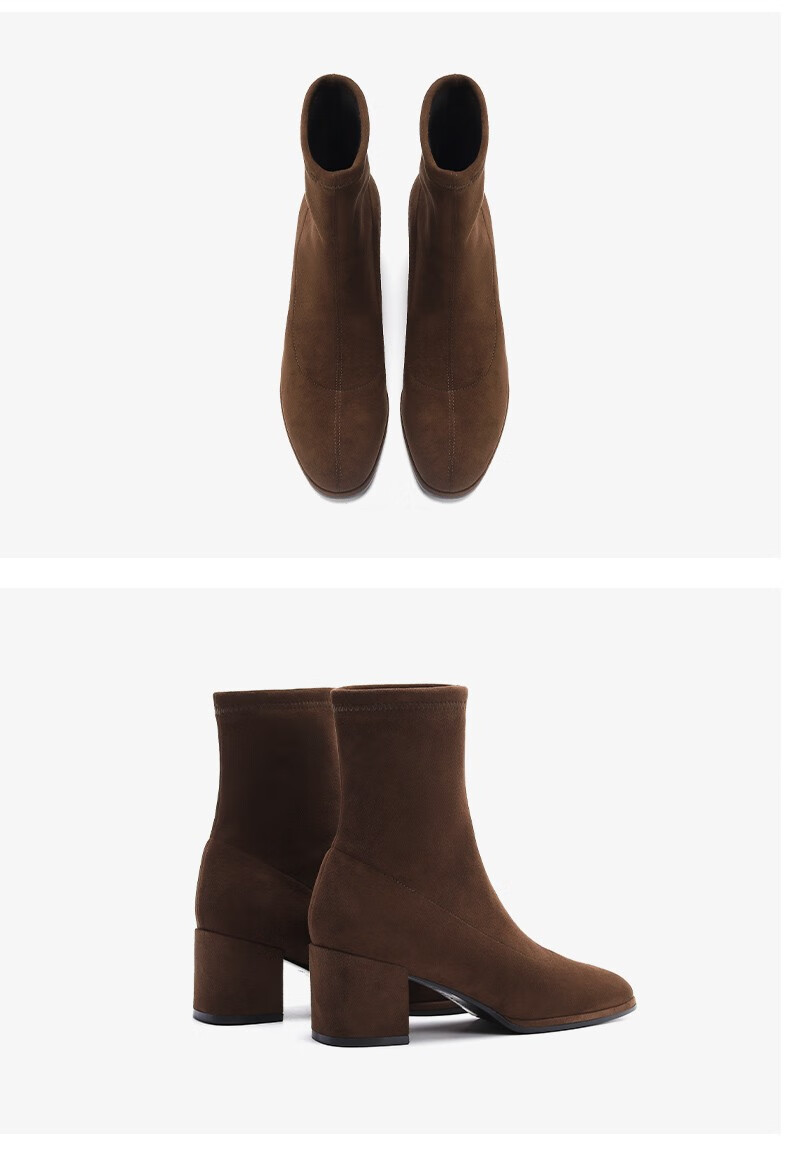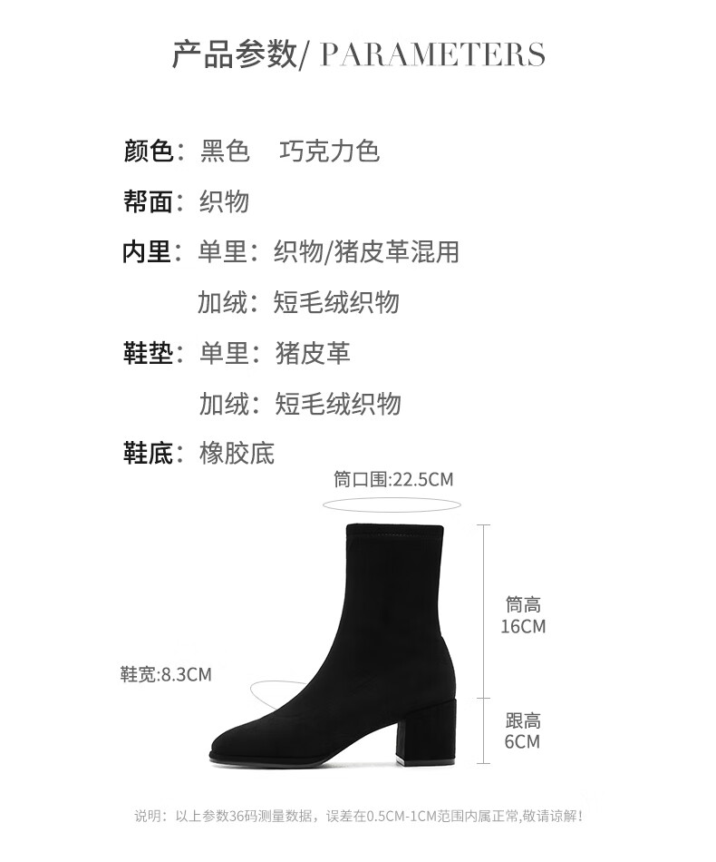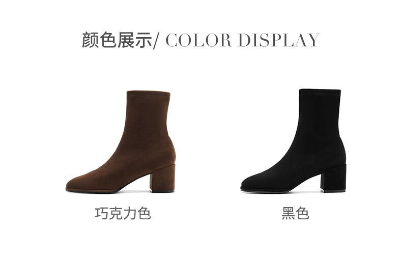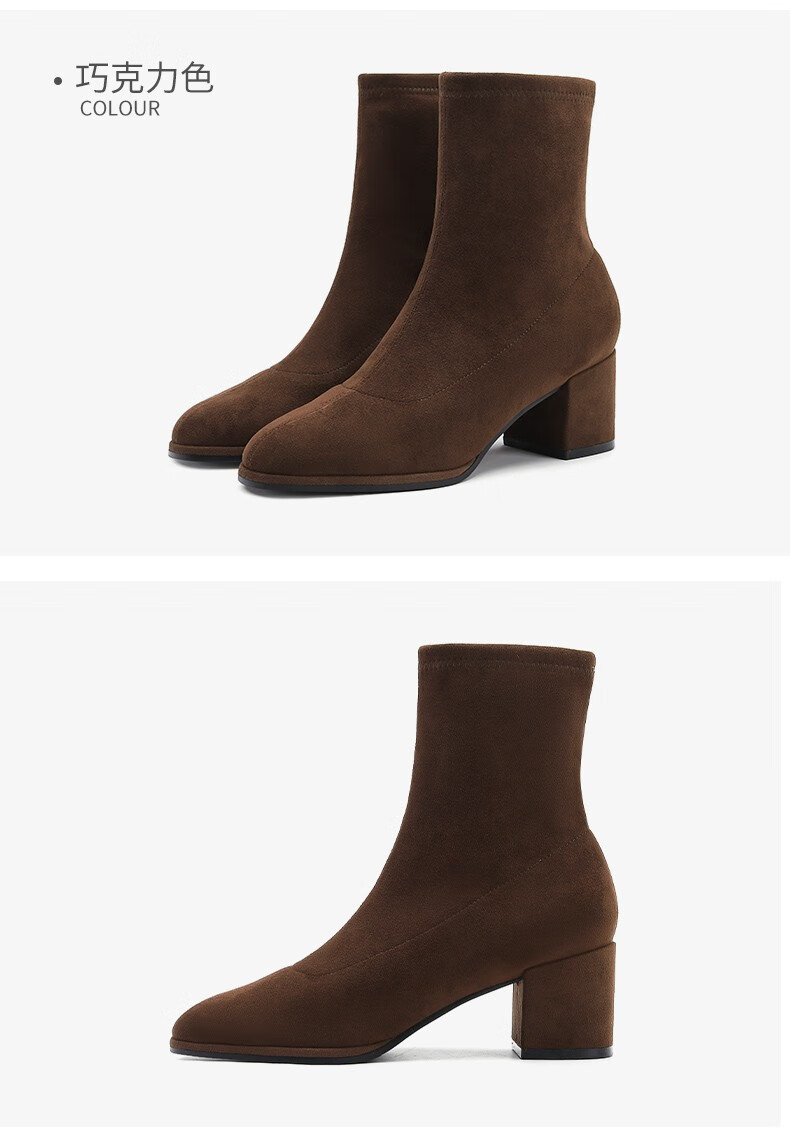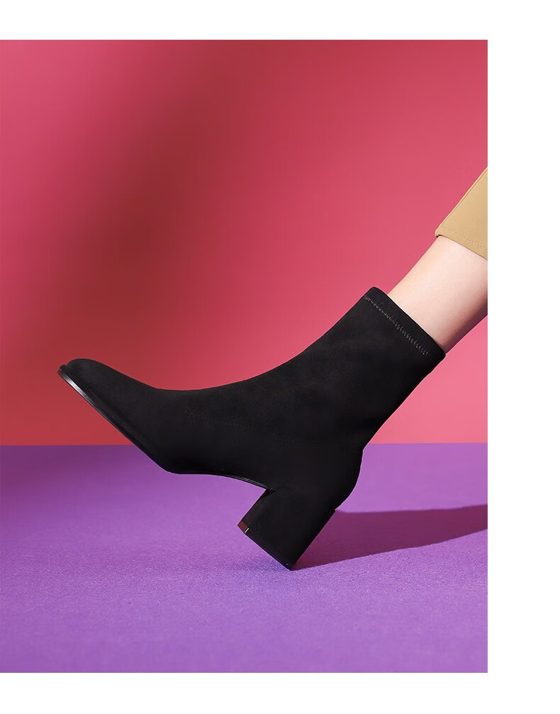哈森冬季弹力靴女保暖气质圆头粗跟套脚瘦瘦靴女靴HWA230202 黑色 34