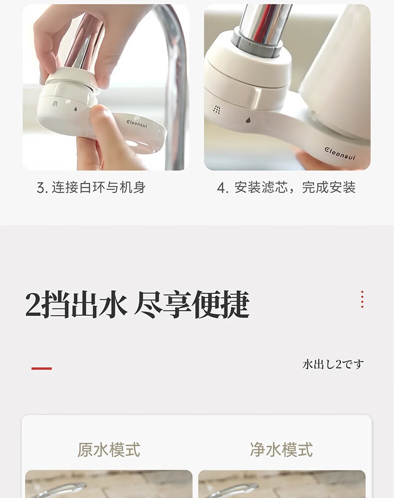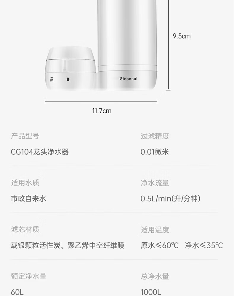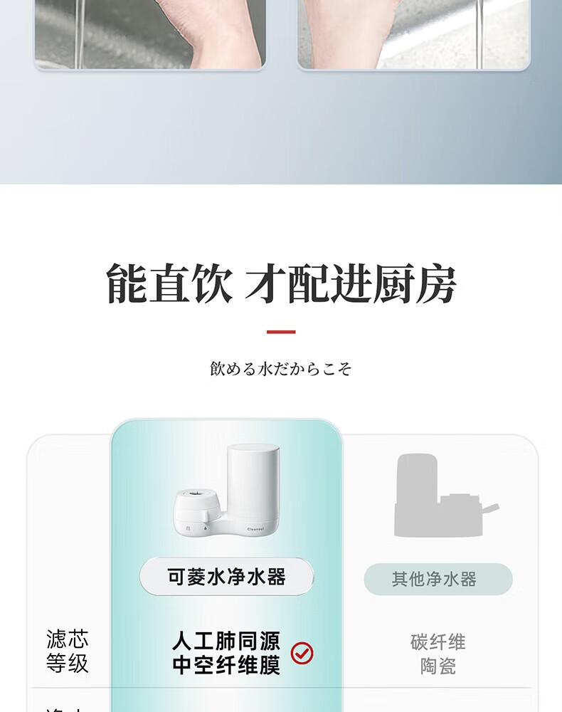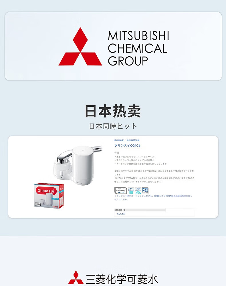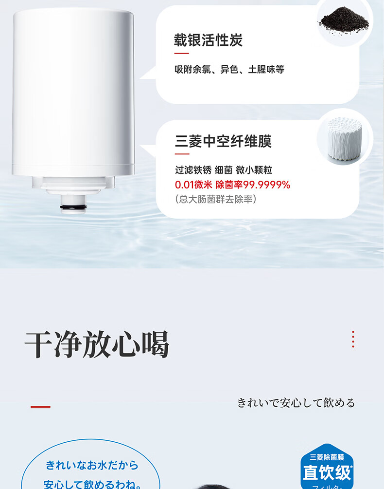 可菱水 净水器 水龙头过滤器 家用直饮前置过滤器双出水滤水器厨房卫生间通用 超滤芯自来水净水机 CG104 【日本制】1芯装-约用半年 三菱滤水器