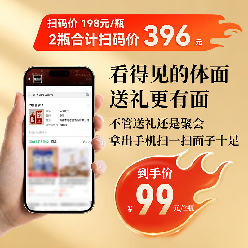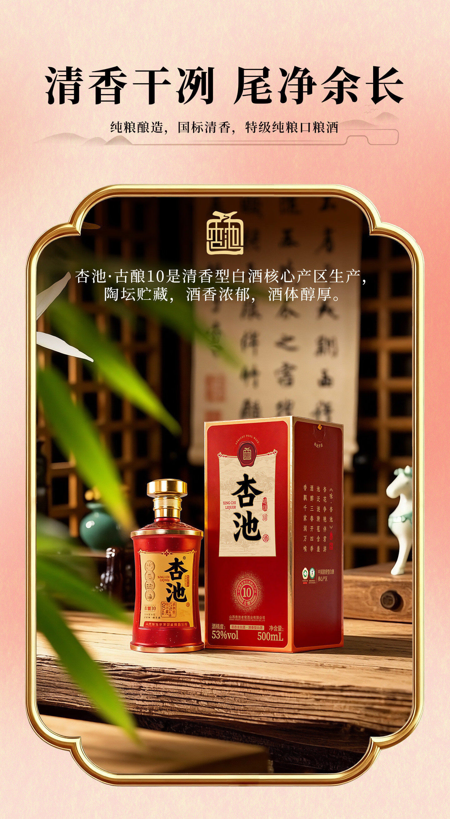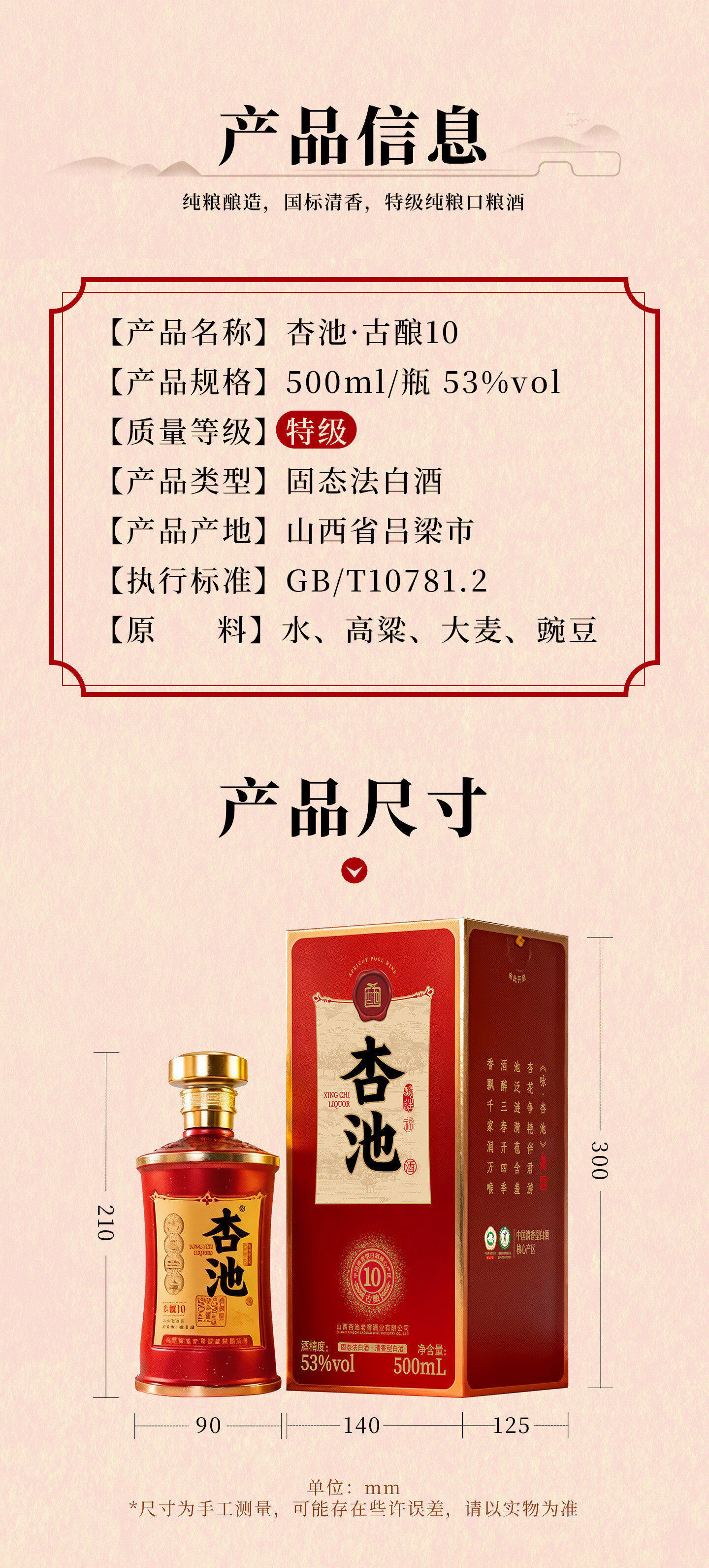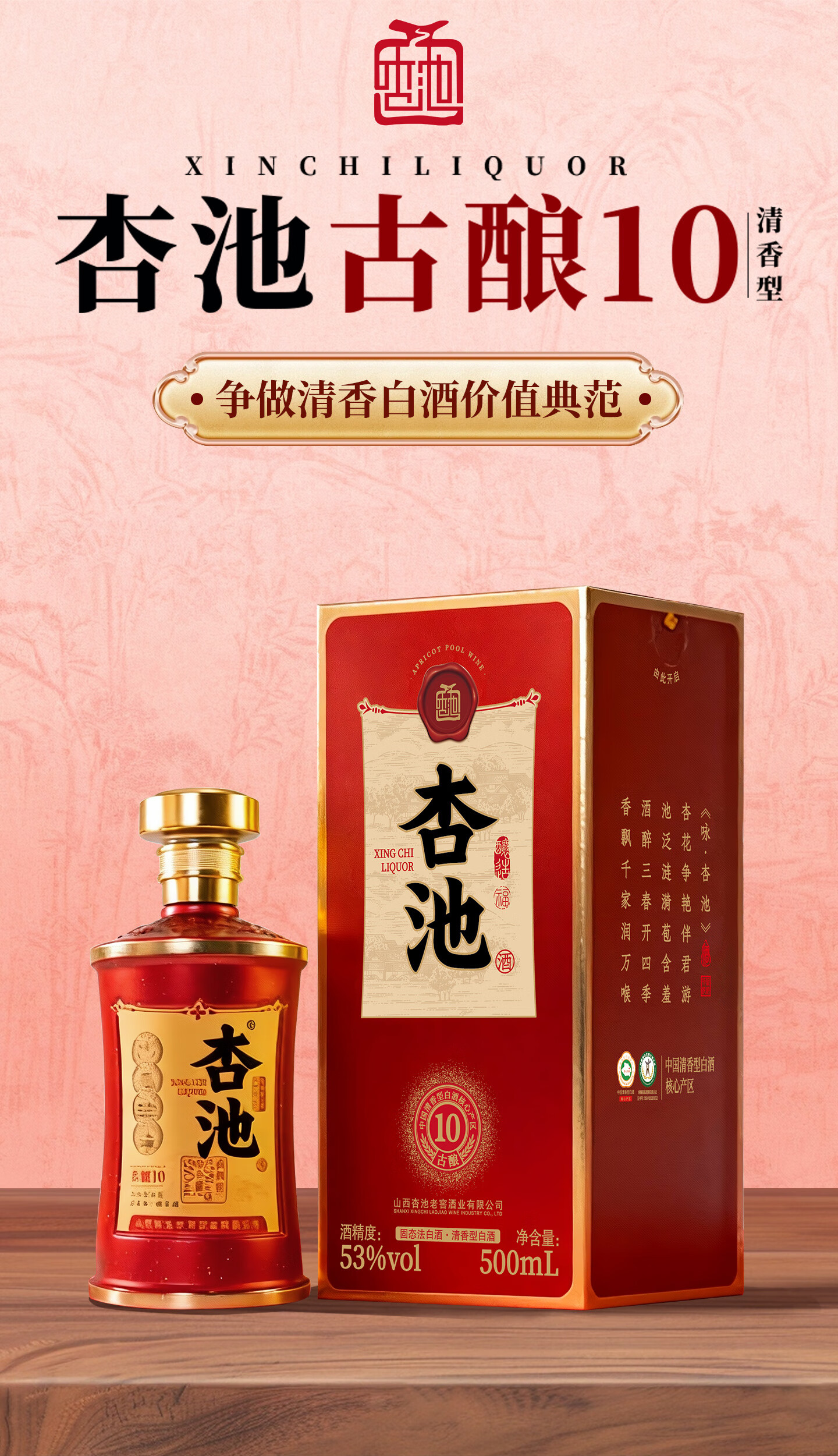 杏池53度古酿10 清香型白酒高度口粮酒 送礼佳品白酒整箱山西杏花名酒 53度 500mL 2瓶 礼盒装适合送礼+手提袋
