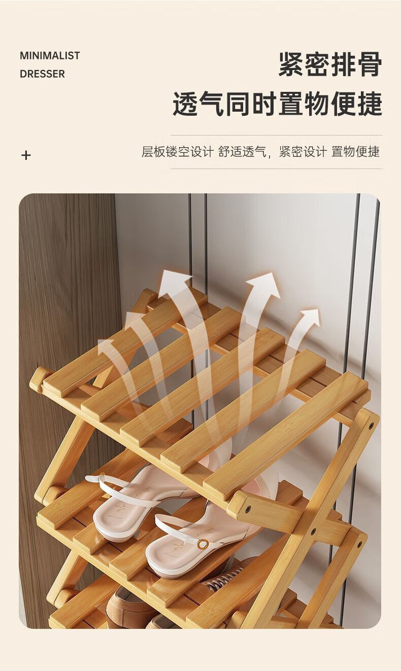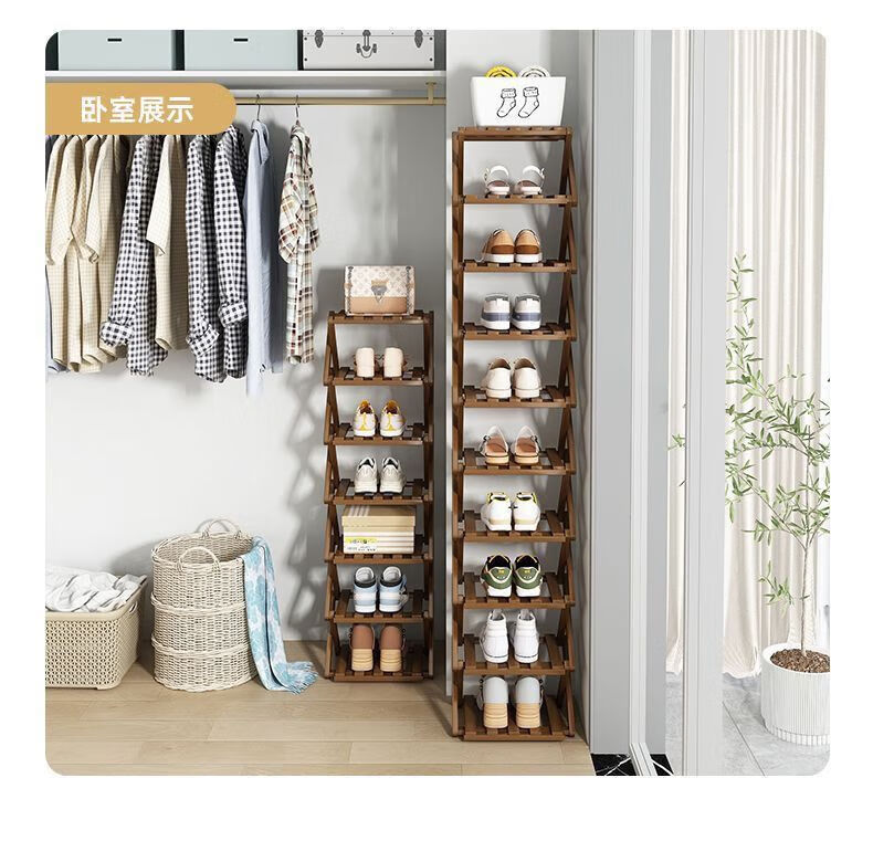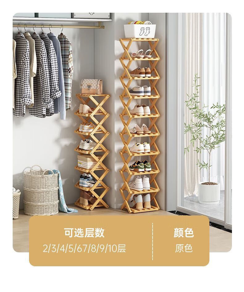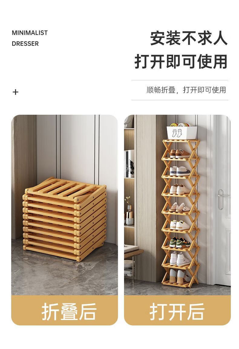 CLCEY免安装折叠鞋架门口小户型多层长条鞋架小型窄小多功能收纳置物架 【高山楠竹】原竹色 三层加固