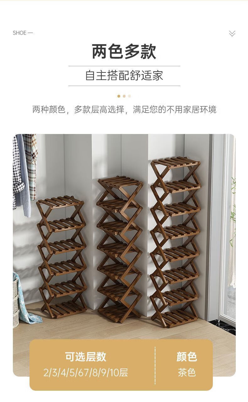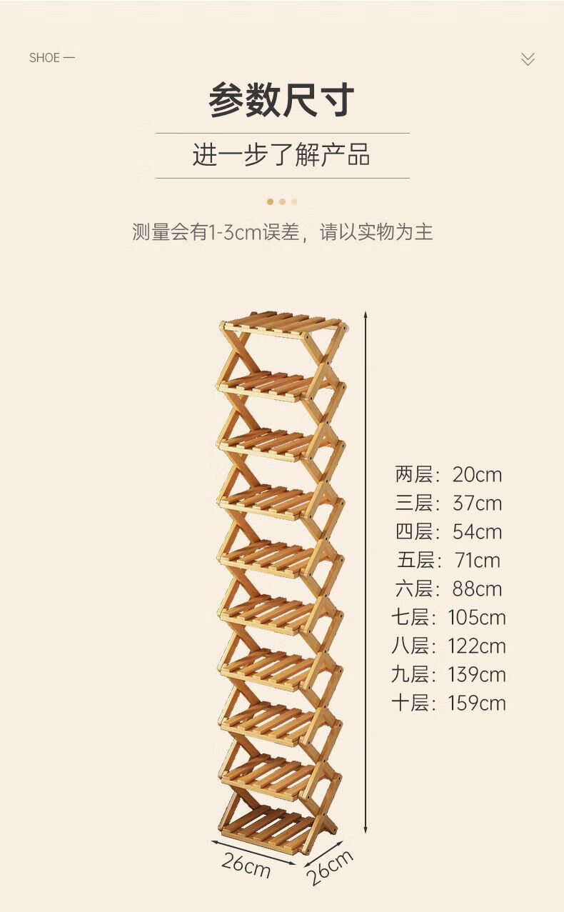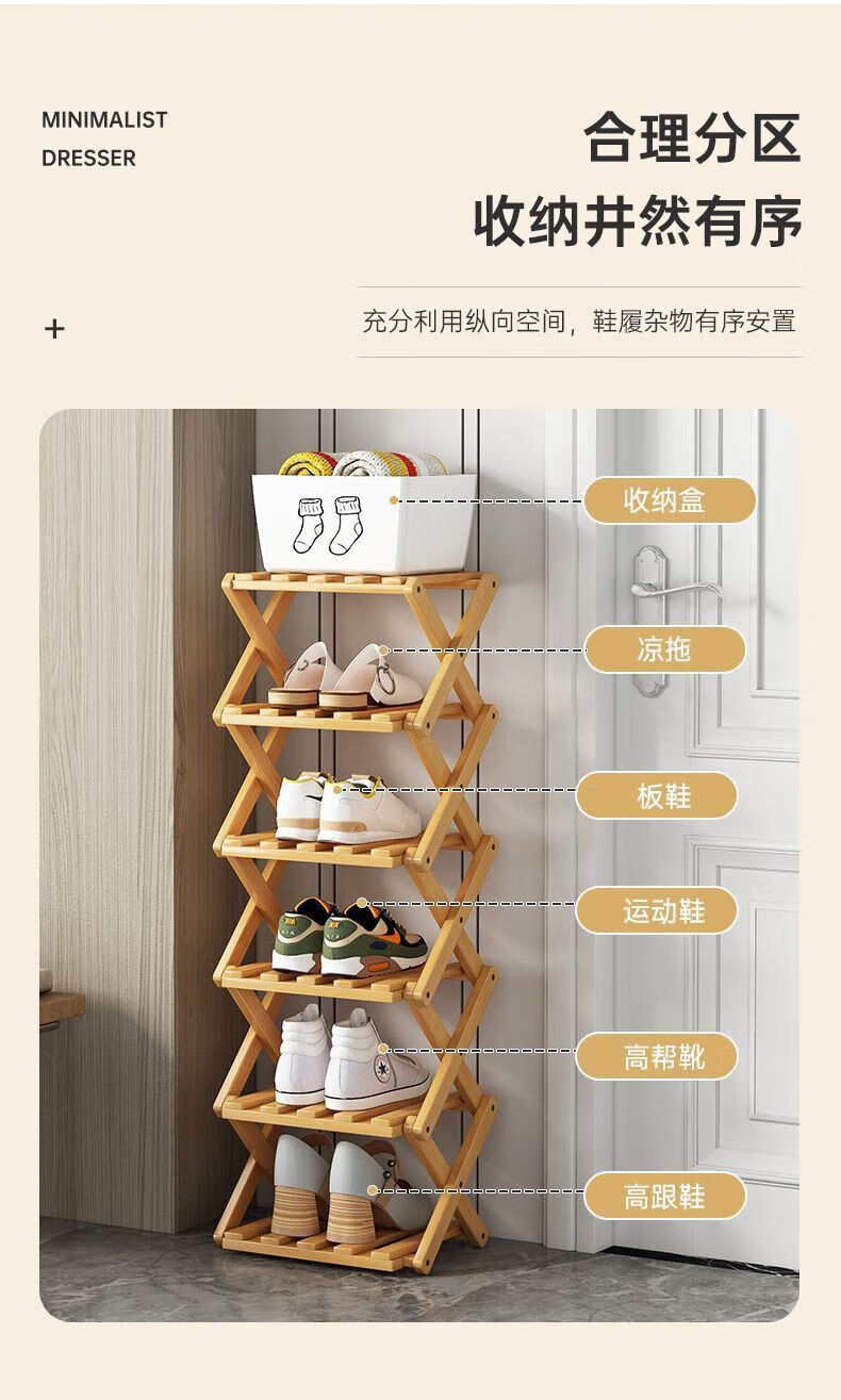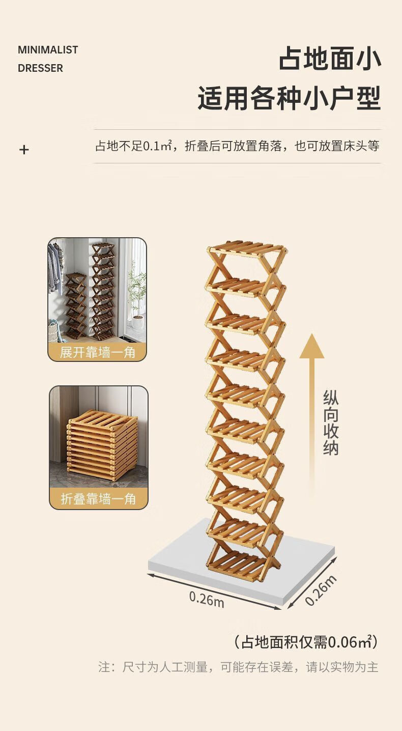 CLCEY免安装折叠鞋架门口小户型多层长条鞋架小型窄小多功能收纳置物架 【高山楠竹】原竹色 三层加固