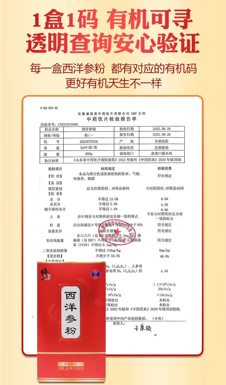 修正西洋参粉2g*5袋主根磨粉超细腻滋补养生茶补气养阴清热生津药典标准中药饮片送礼滋补品