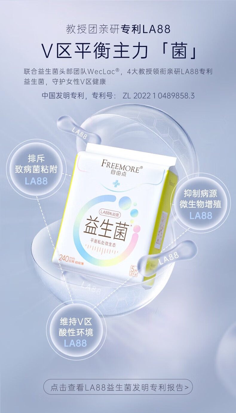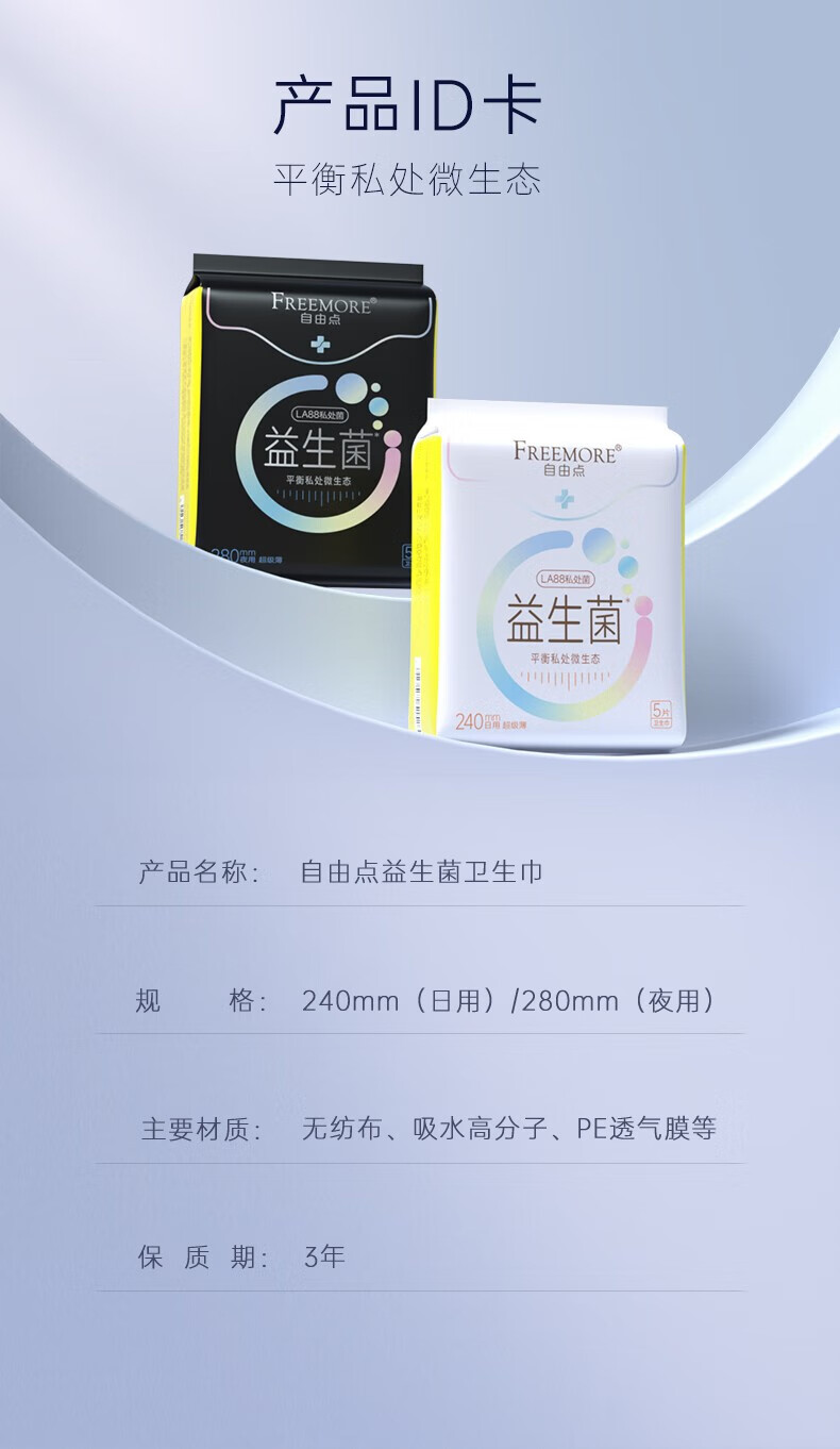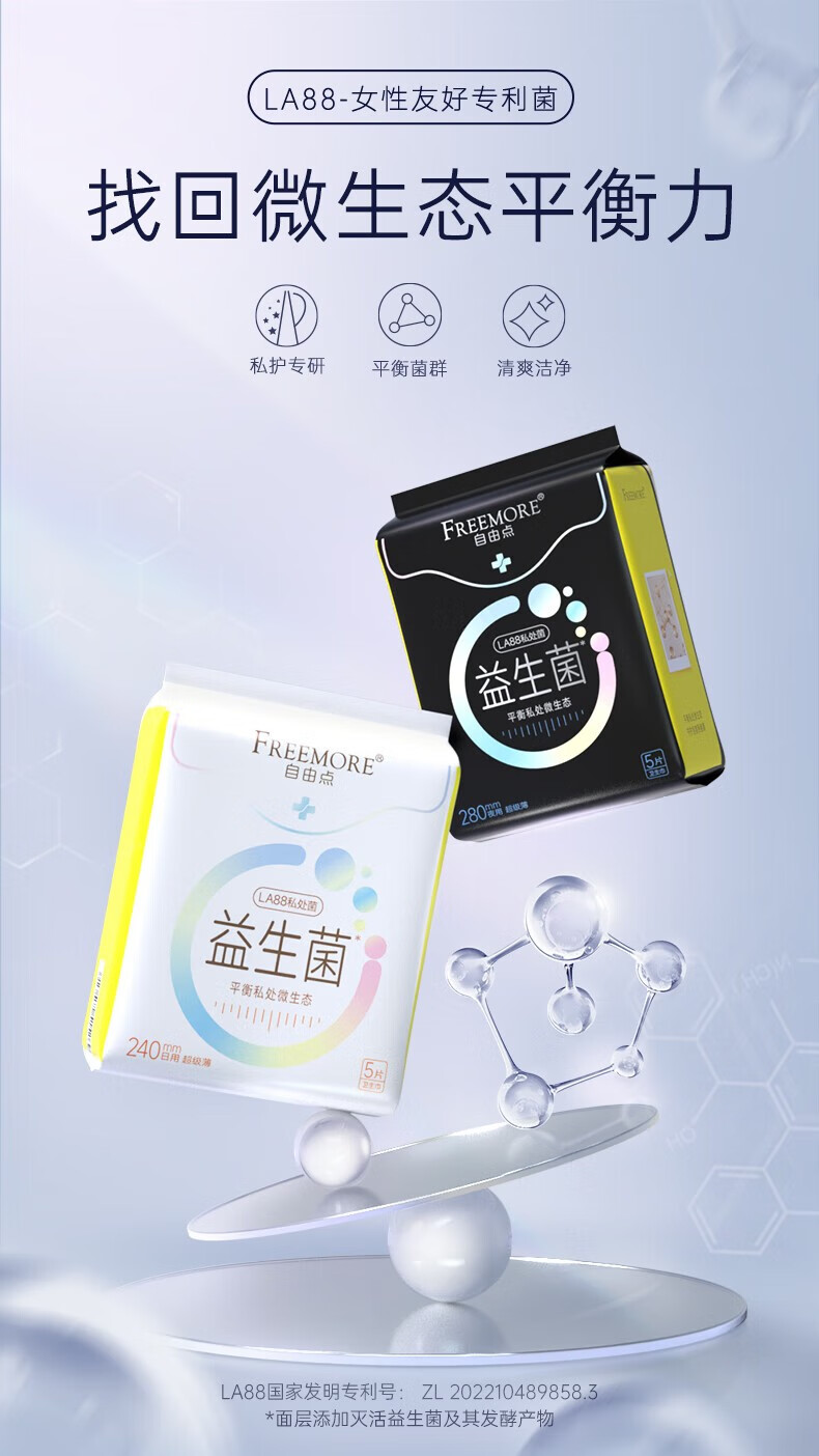 自由点(FREEMORE)优享 益生菌系列卫生巾 日夜用超薄姨妈巾组合 日用4包20片(240mm)