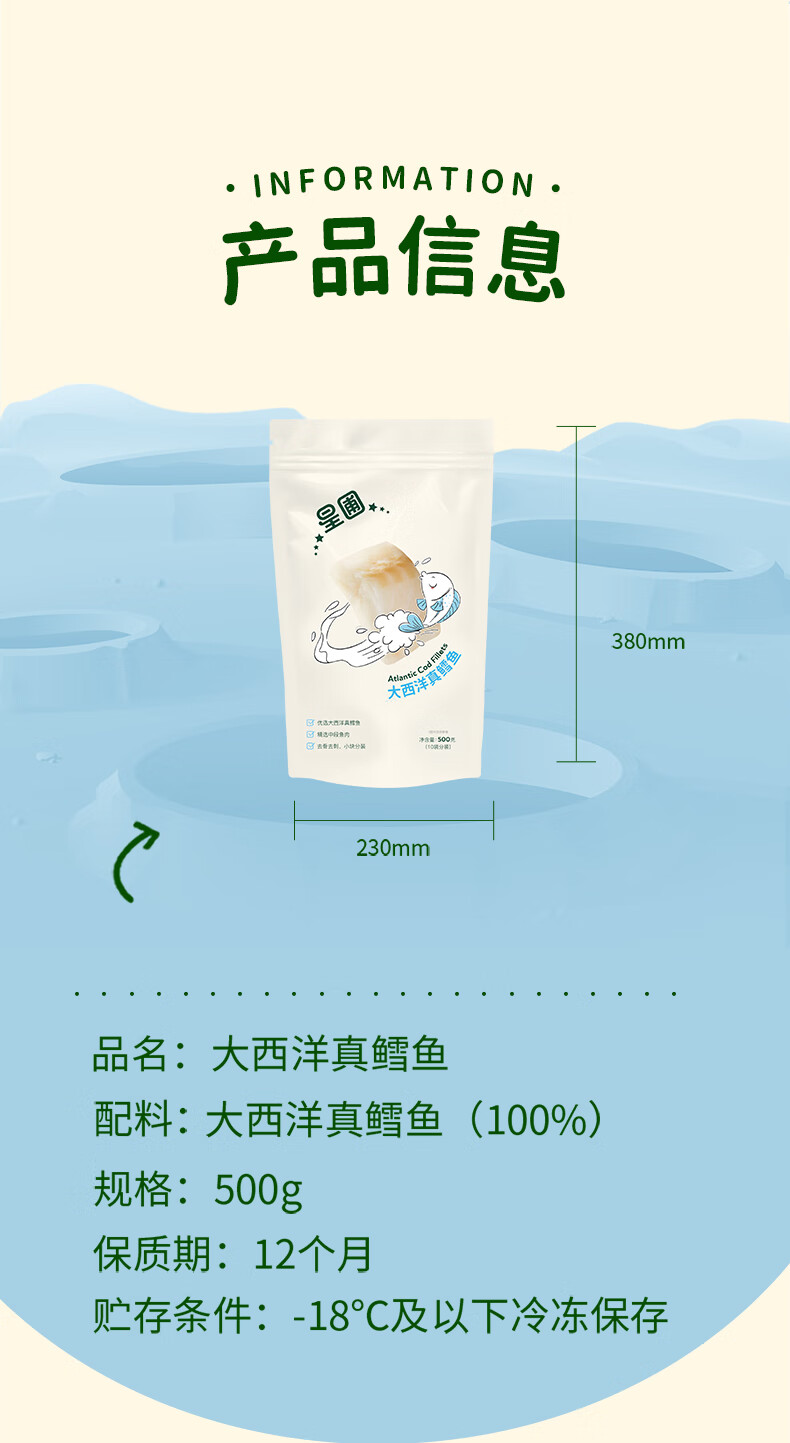 星圃DHA大西洋真鳕鱼块宝宝辅食婴幼儿鳕鱼500g/袋 大西洋500g鳕鱼*1袋(500g)