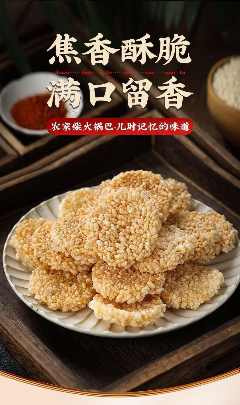 徽图柴火锅巴300克盒特产锅巴正宗香炒美味家庭餐桌优非即食 1英寸 柴火锅巴300克*1盒非即食