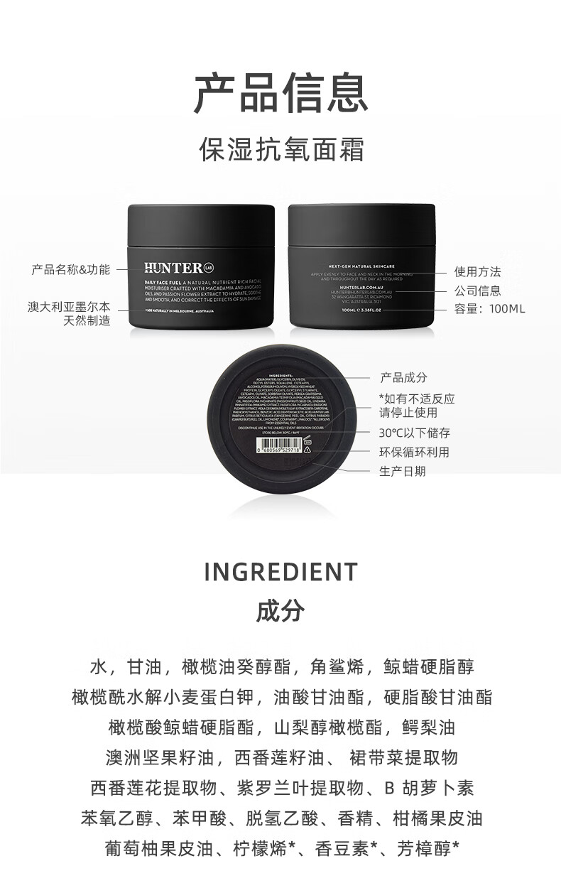 Hunter Lab【清仓撤店】澳洲保湿抗氧面霜保湿补水抗皱舒缓敏感肌修护滋润 面霜