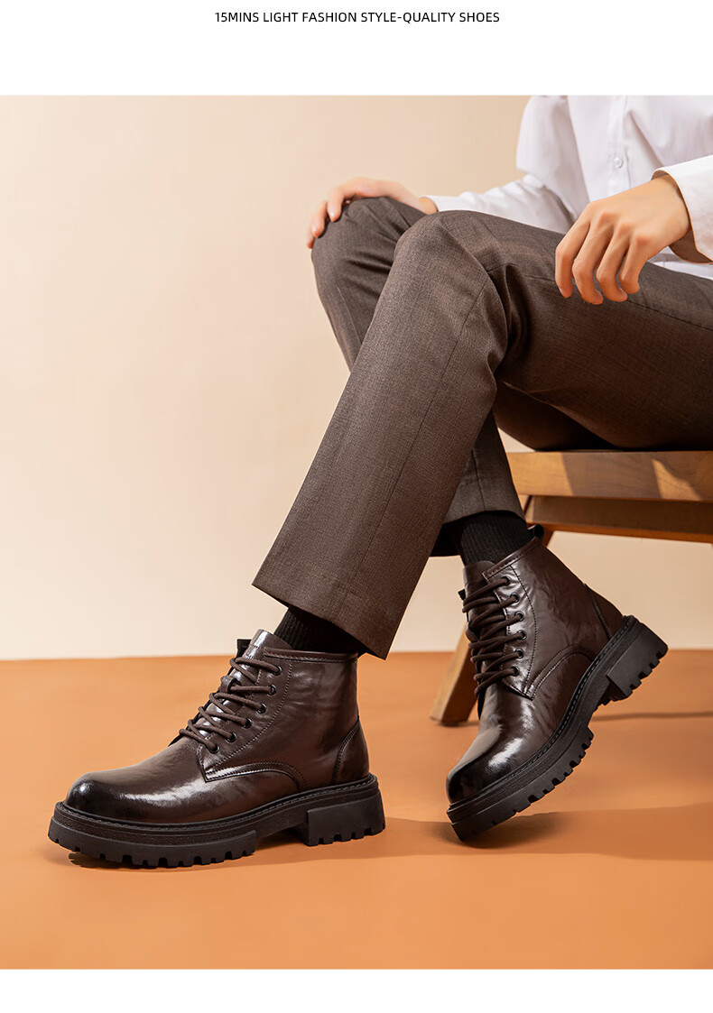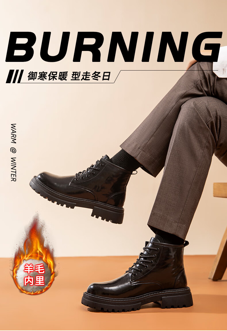 15分钟男靴马丁靴男冬季加绒男士羊毛皮靴商务休闲保暖棉靴子男 E2517