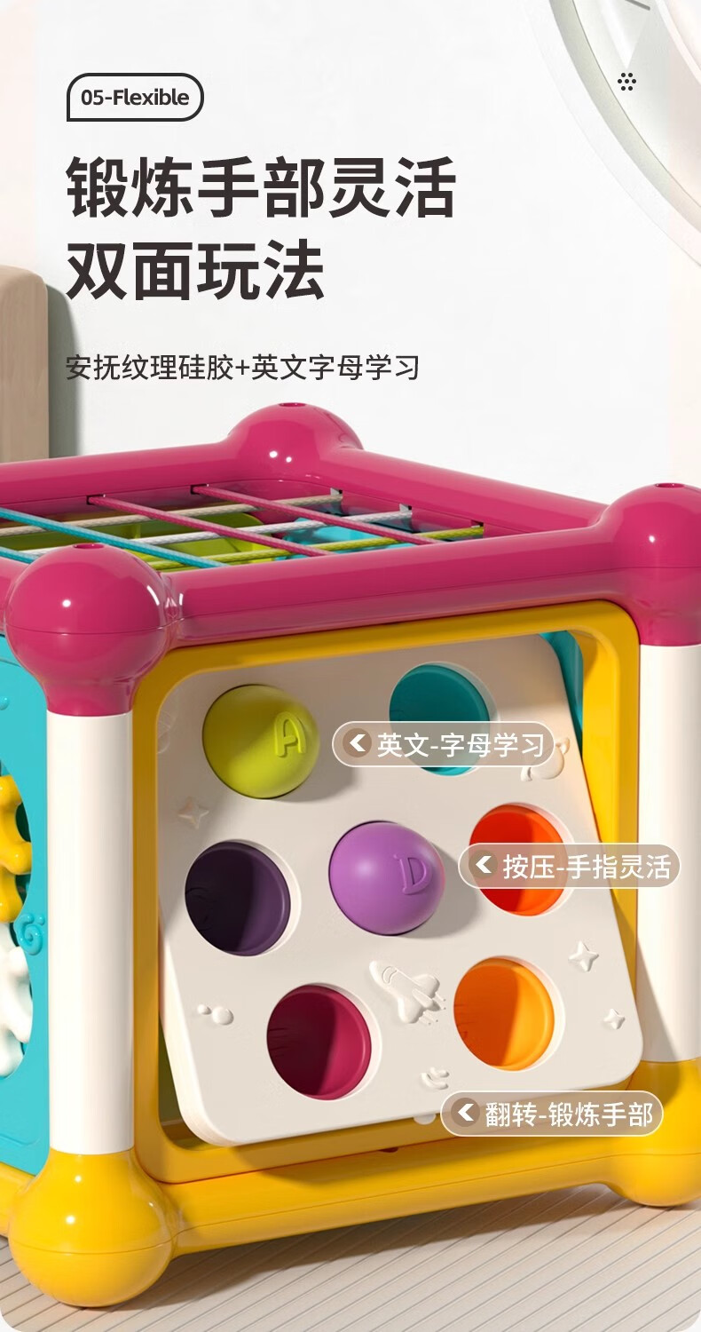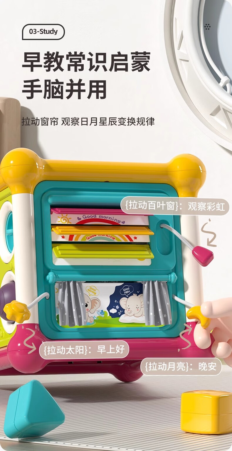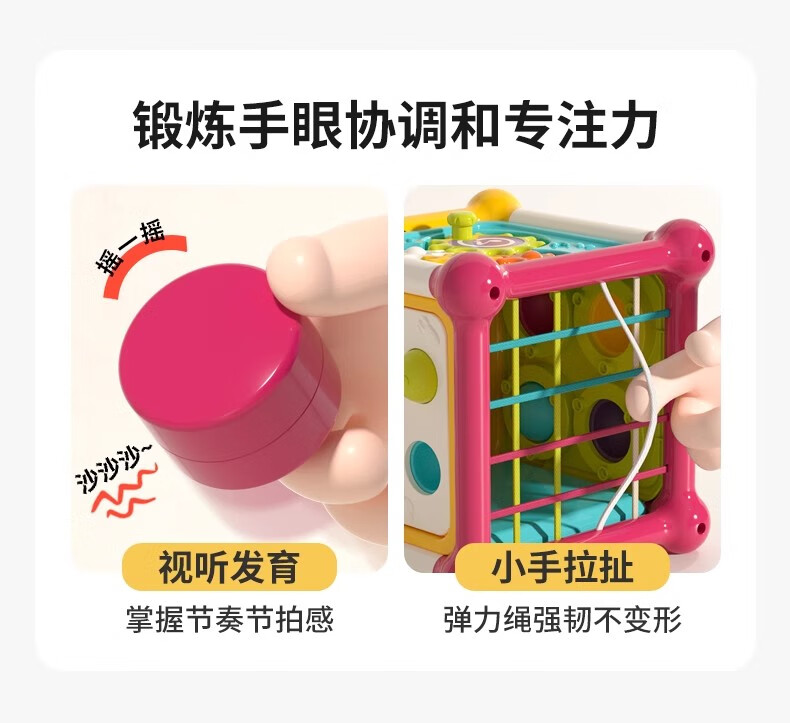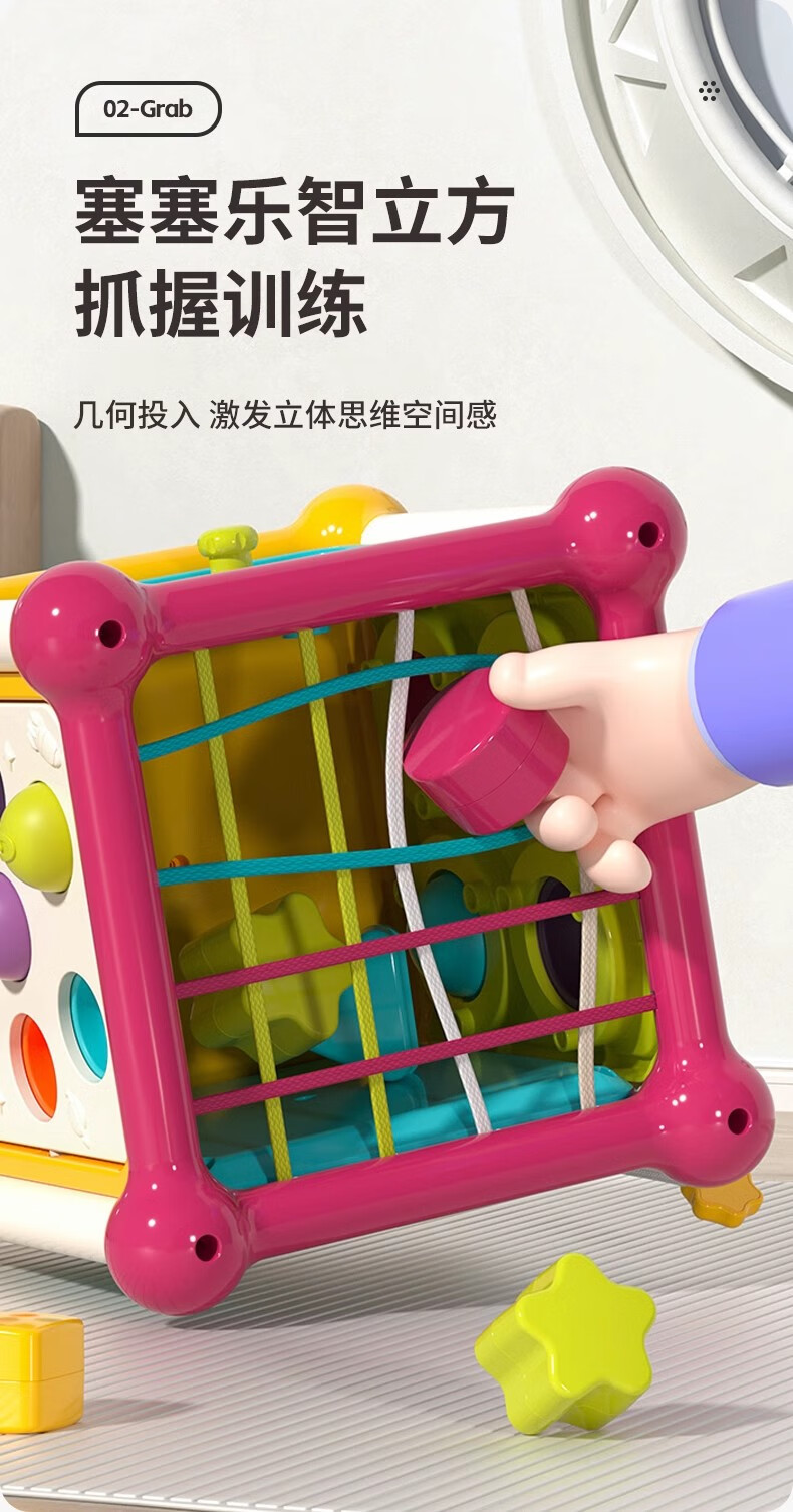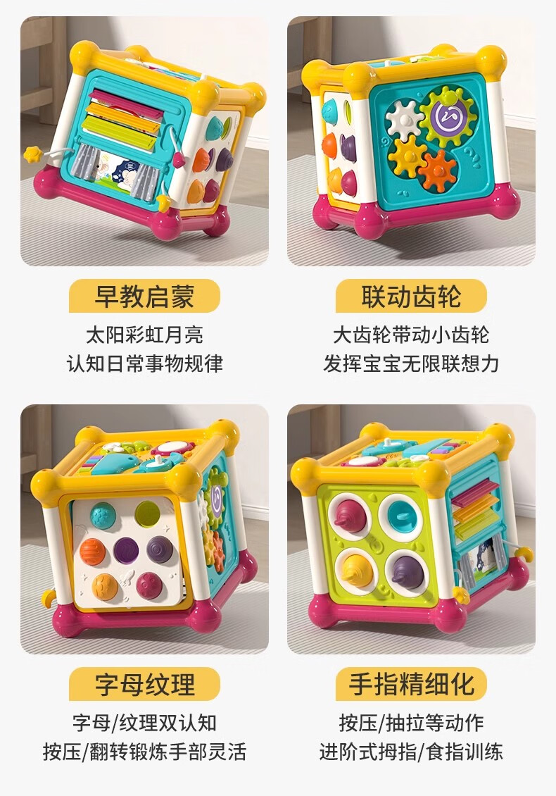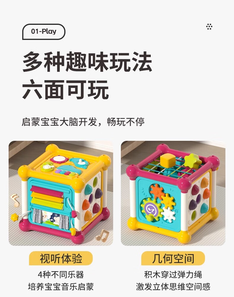 火火兔婴儿六面体空间站拼装积木游戏桌0-6个月男女孩宝宝玩具生日礼物 六面体空间站