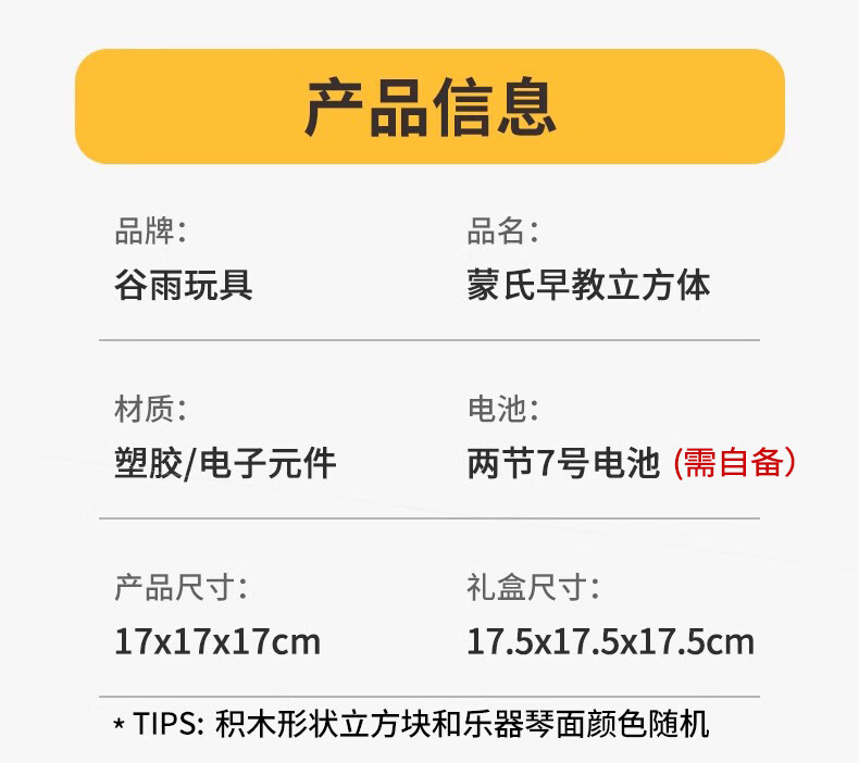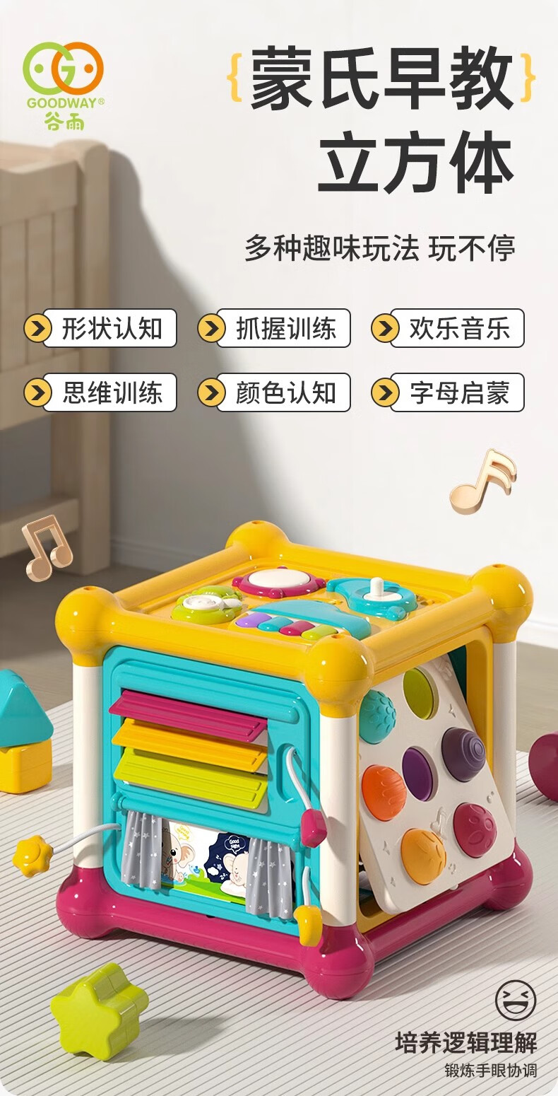 谷雨婴儿玩具六面体儿童玩具积木拼装多面体儿男女孩生日礼物 谷雨蒙氏早教立方体3860