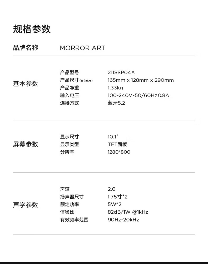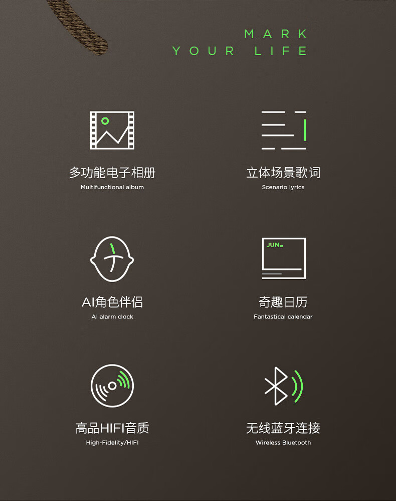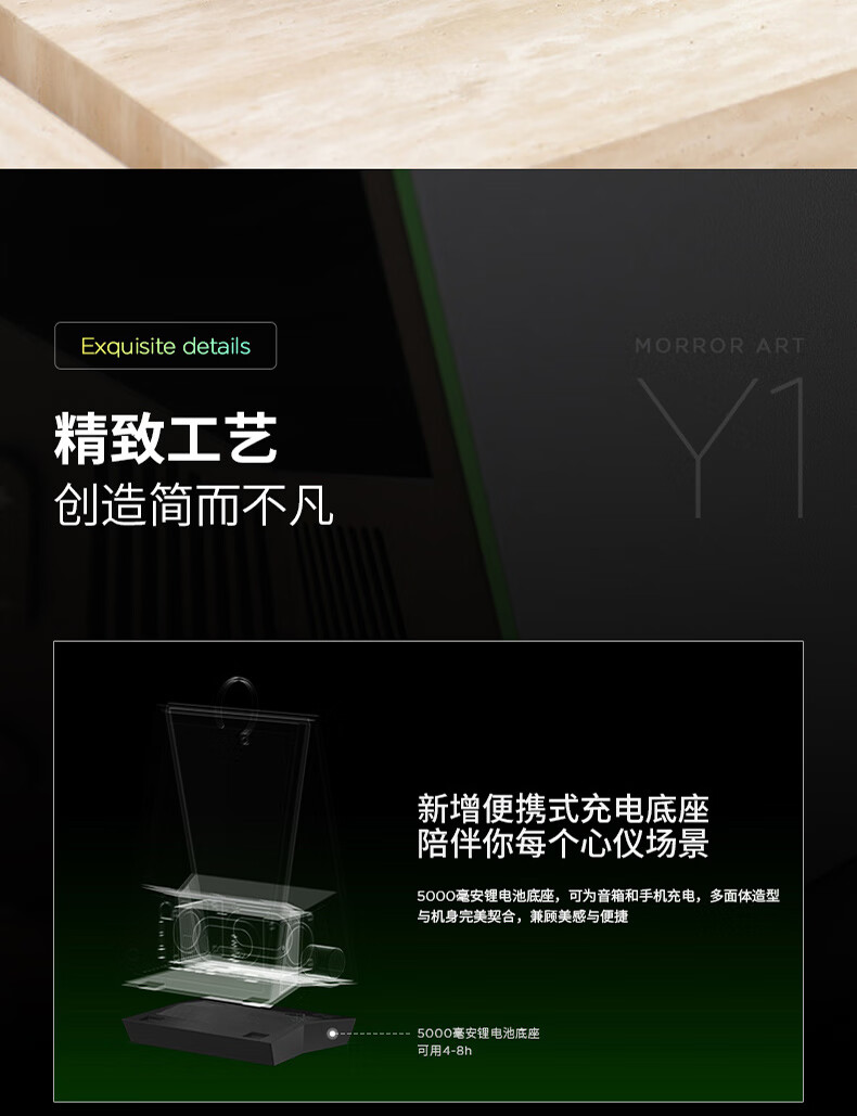MORRORART Y1时光相册歌词音箱蓝牙电子相册悬浮字幕家用桌面日历相框智能家居生日礼物 基础款