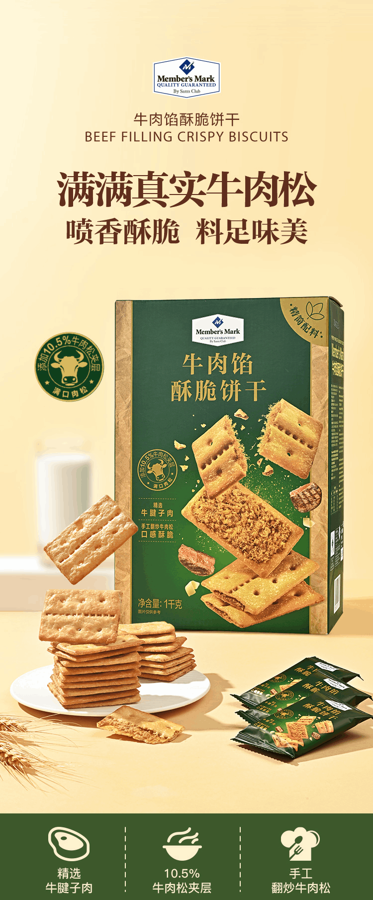 MEMBER'S MARK山姆代购会员超市牛肉馅酥脆饼干牛肉味饼干肉松夹心饼干 整箱约78包【最划算】