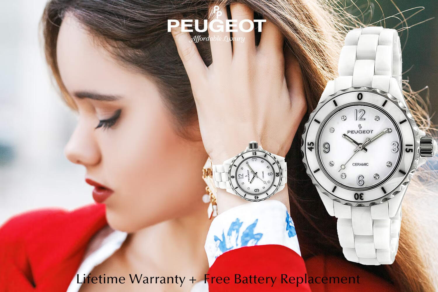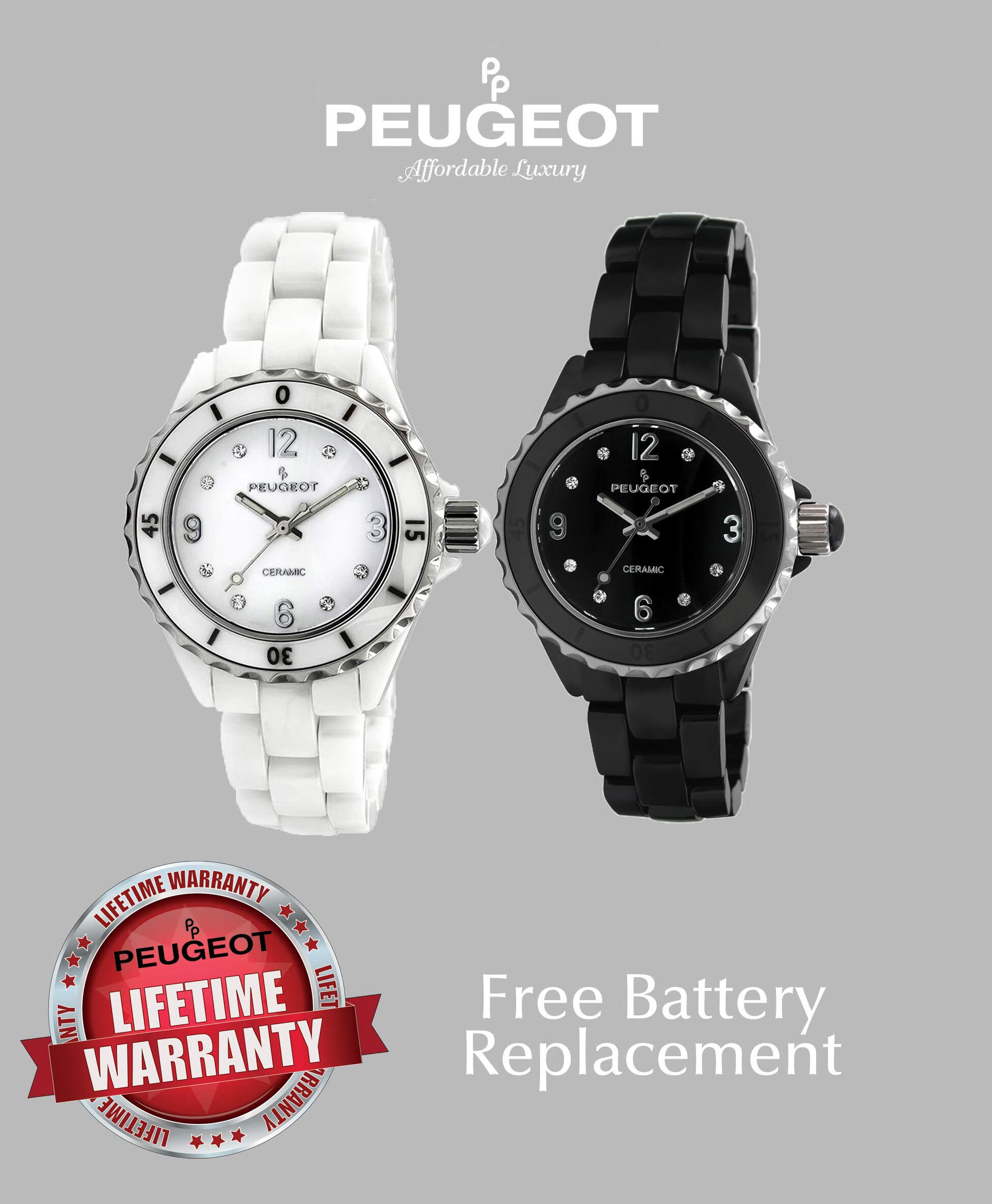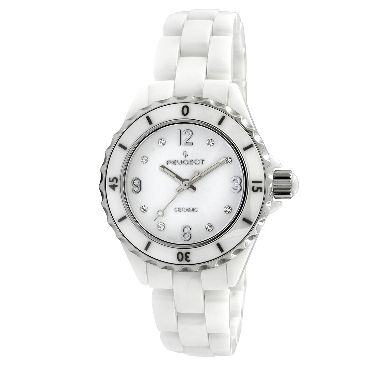 PEUGEOT 陶瓷腕表 带运动边框 施华洛世奇和水晶标记 White 36.0毫米