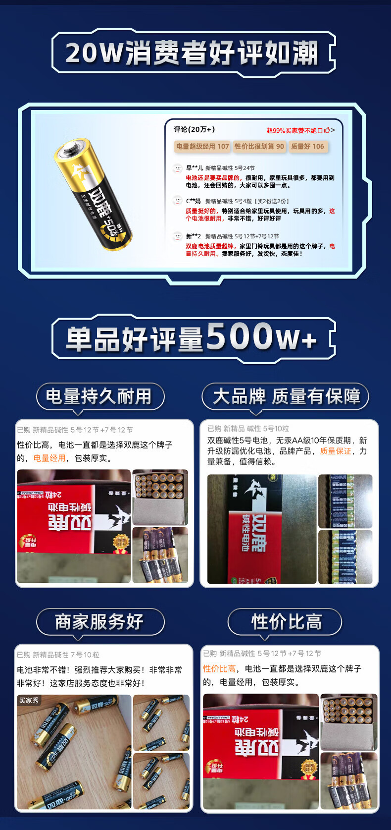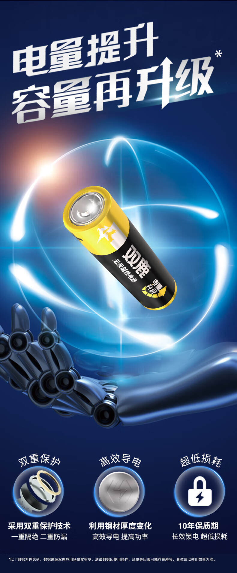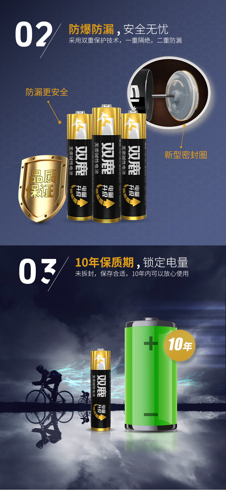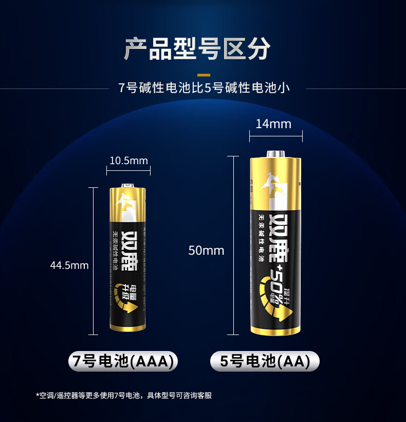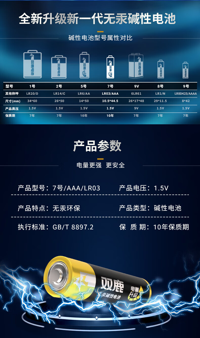 双鹿7号碱性电池七号碱性适用于体温计/遥控器/鼠标键盘/电子秤/血氧仪/耳温枪等 LR03/AAA 7号碱性2粒