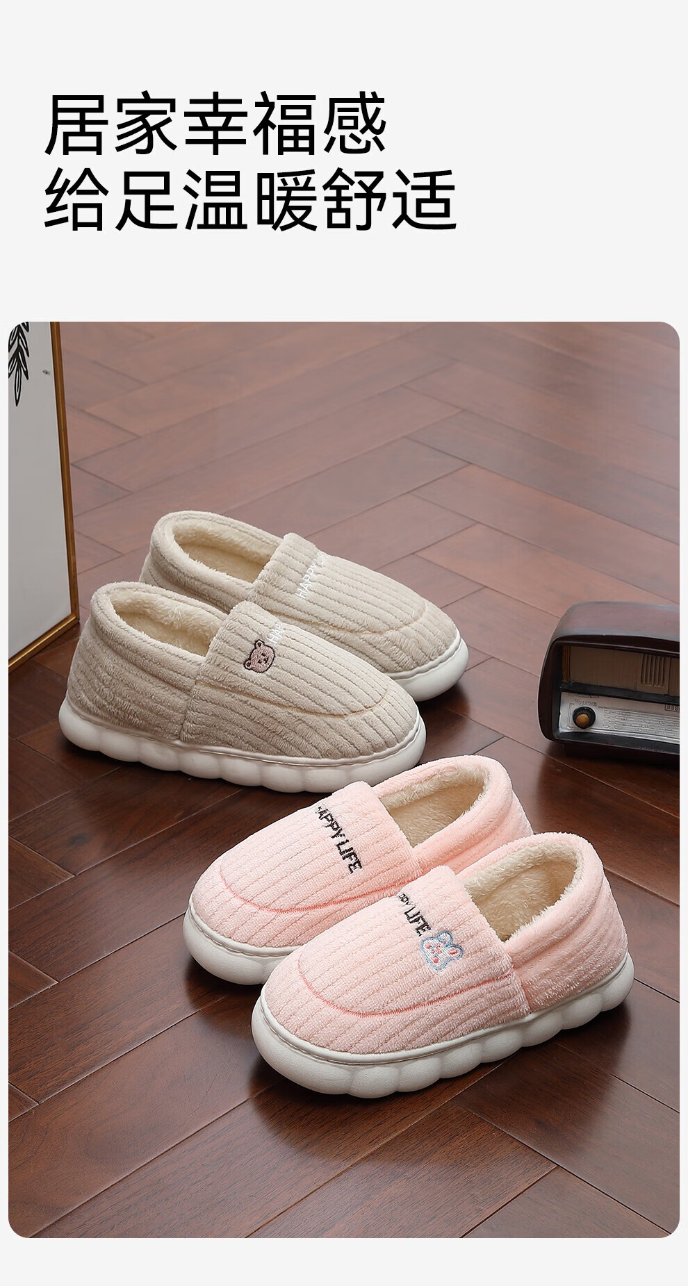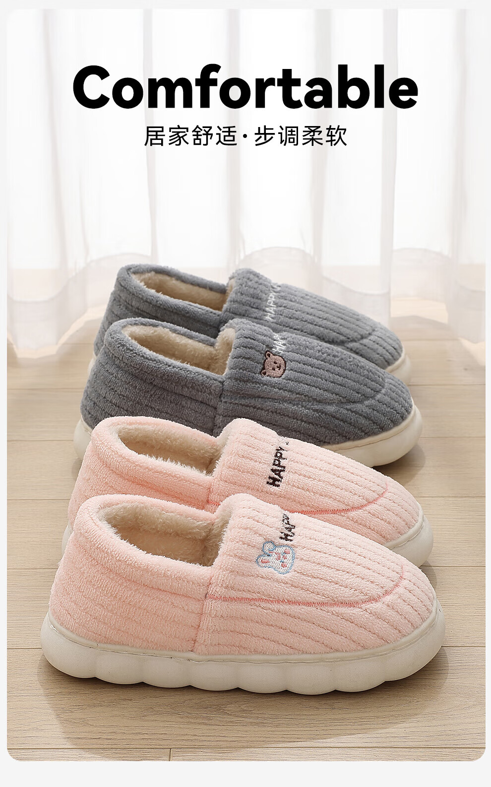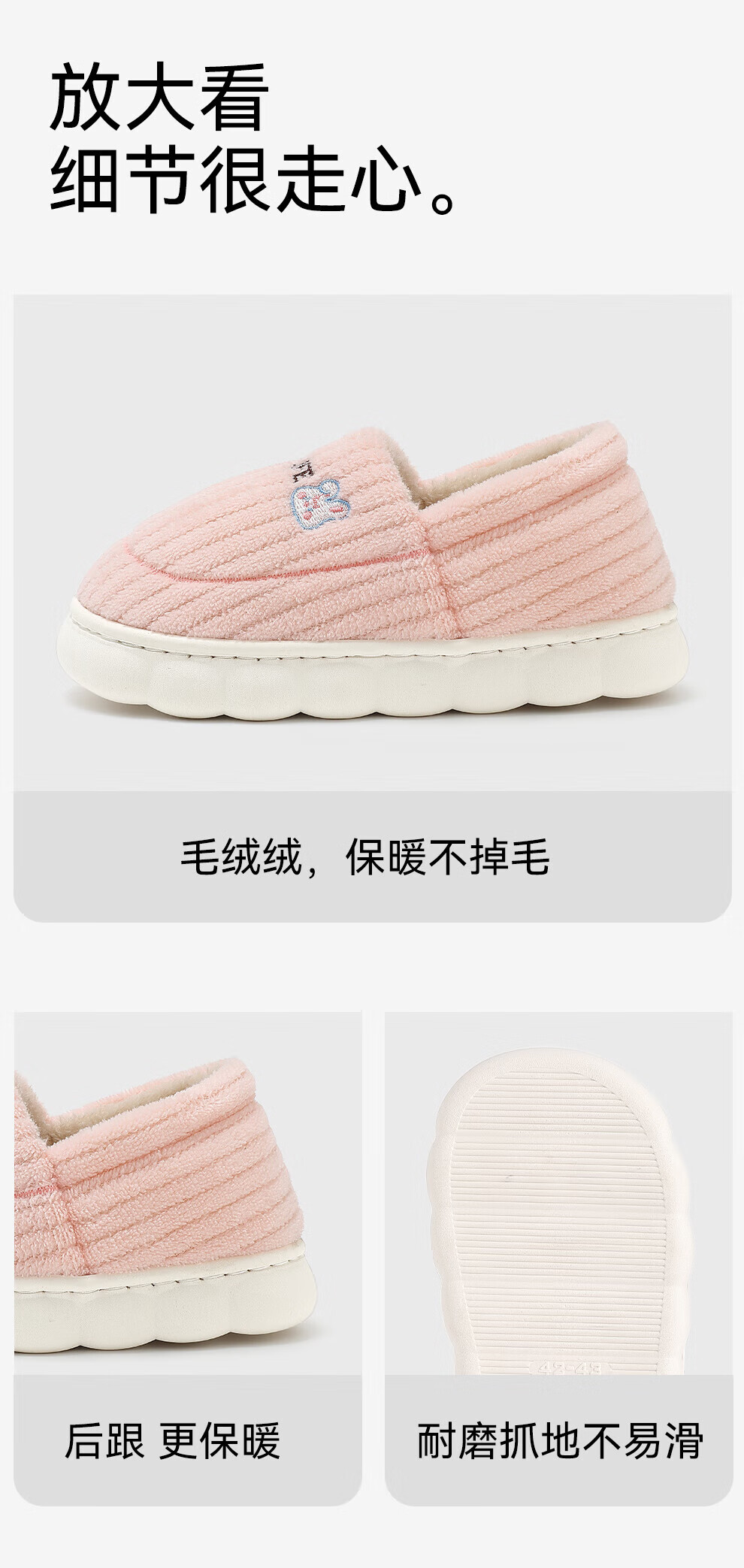 FZT包跟棉拖鞋女2025秋冬新款防滑防臭室内家居简约毛绒绒棉鞋男外穿 粉色 38-39 适合37-38【内长235mm】