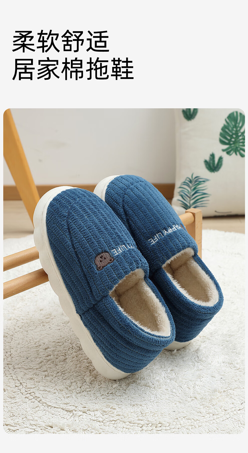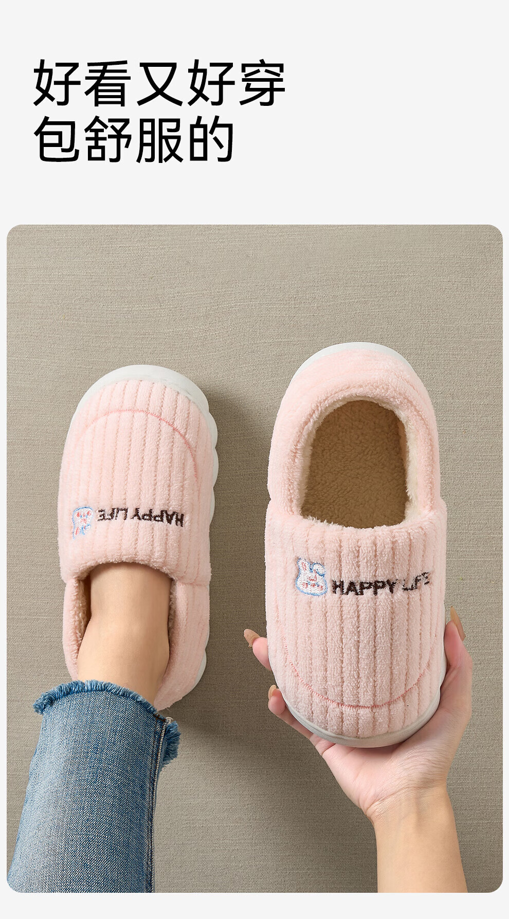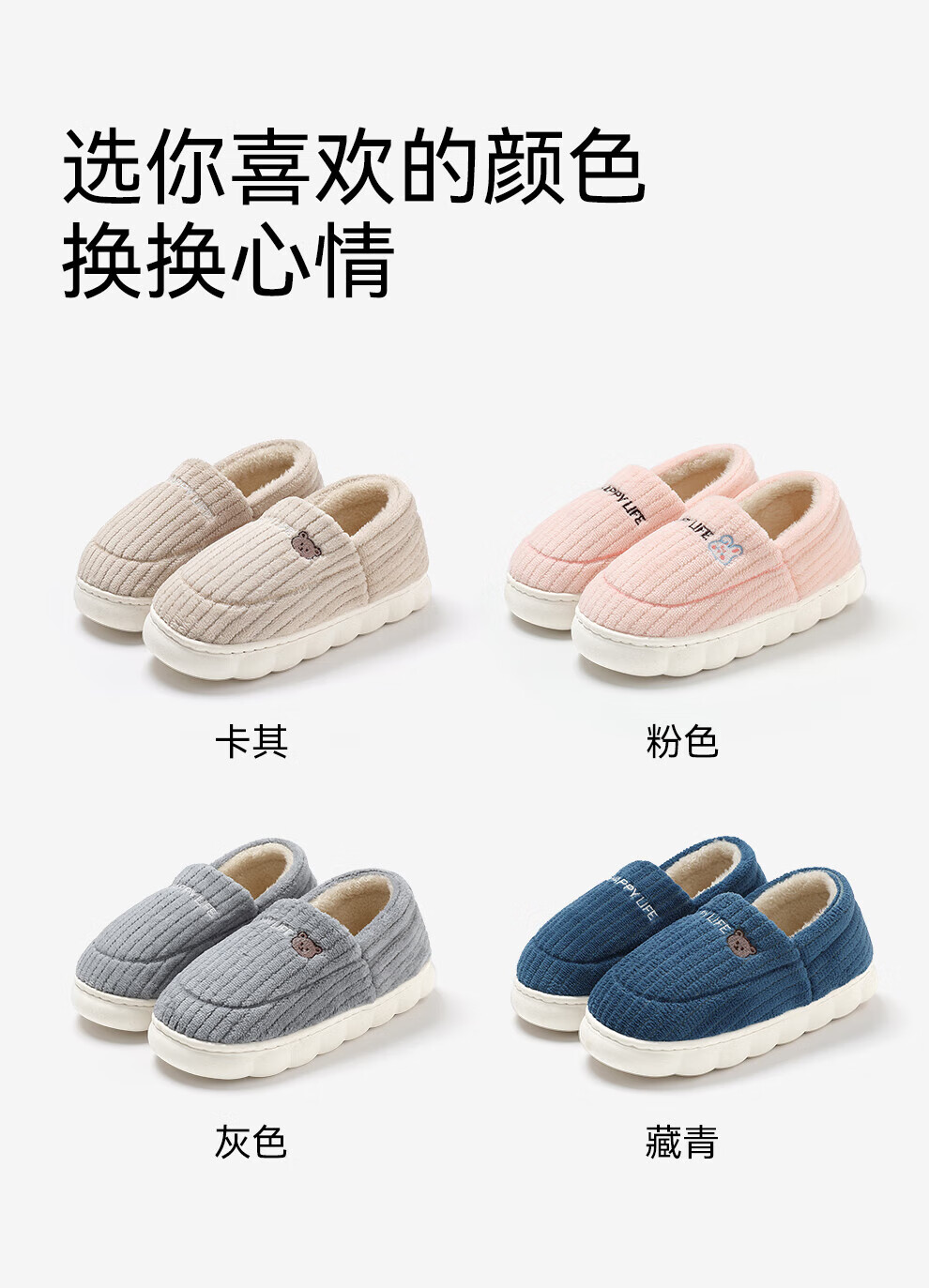 FZT包跟棉拖鞋女2025秋冬新款防滑防臭室内家居简约毛绒绒棉鞋男外穿 粉色 38-39 适合37-38【内长235mm】