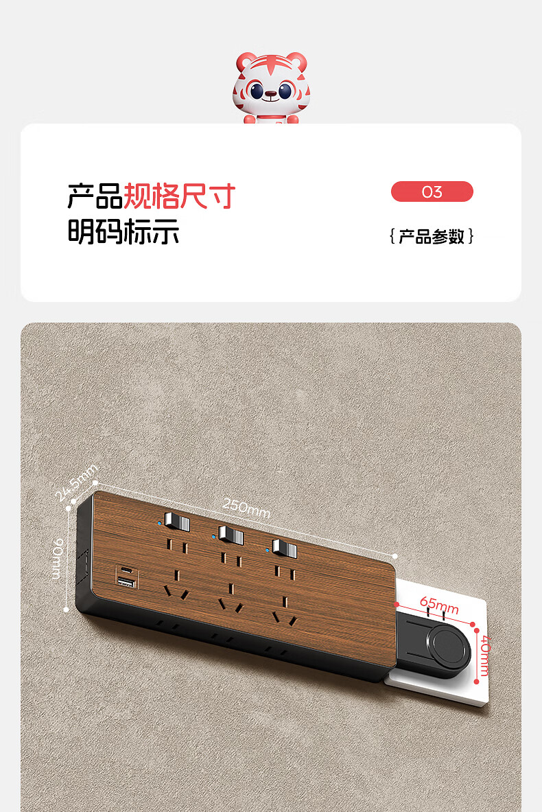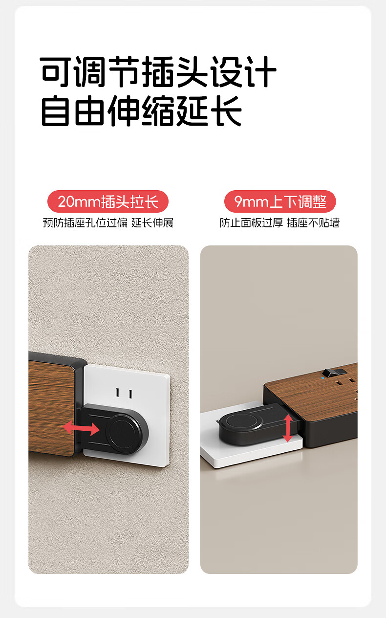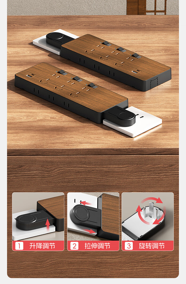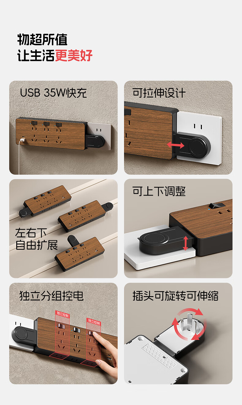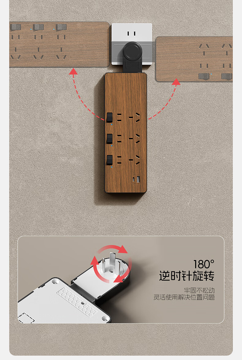 国际电工中古风木纹扩展插座一转多孔35W快充插排明装家用墙壁USB+C转换器 中古风木纹【向左扩展】35W快充USB+C-3开21孔