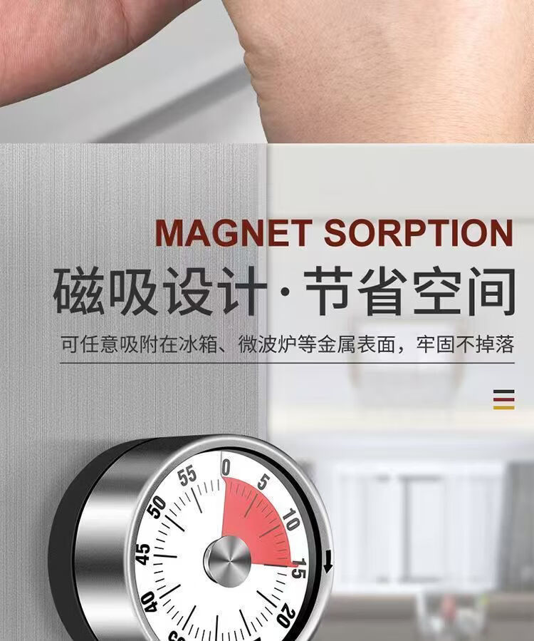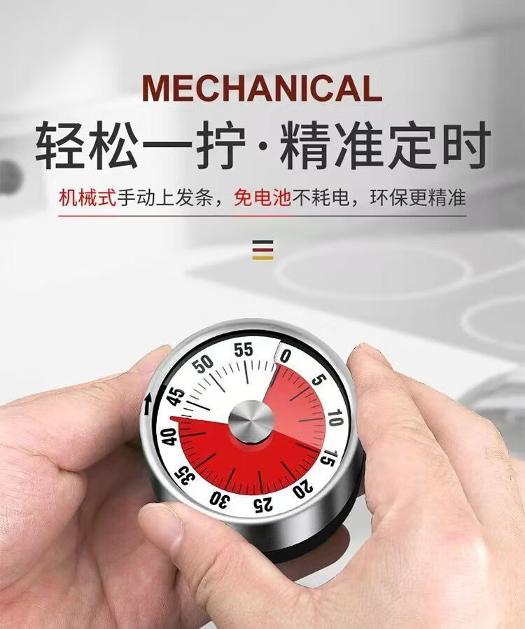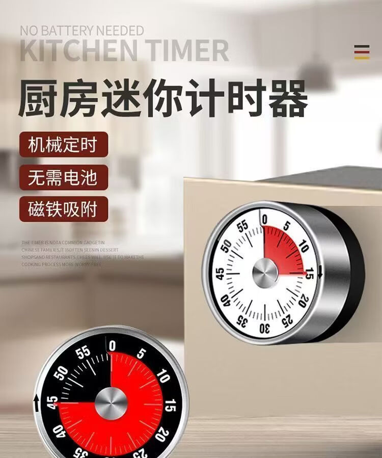 咏夏机械厨房计时器迷你家用烹饪新款磁吸可视学习自律提醒器定时器 黑色】可计时 无支架 磁吸计时55分钟