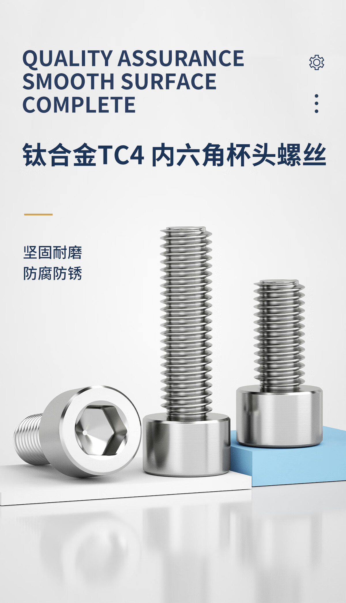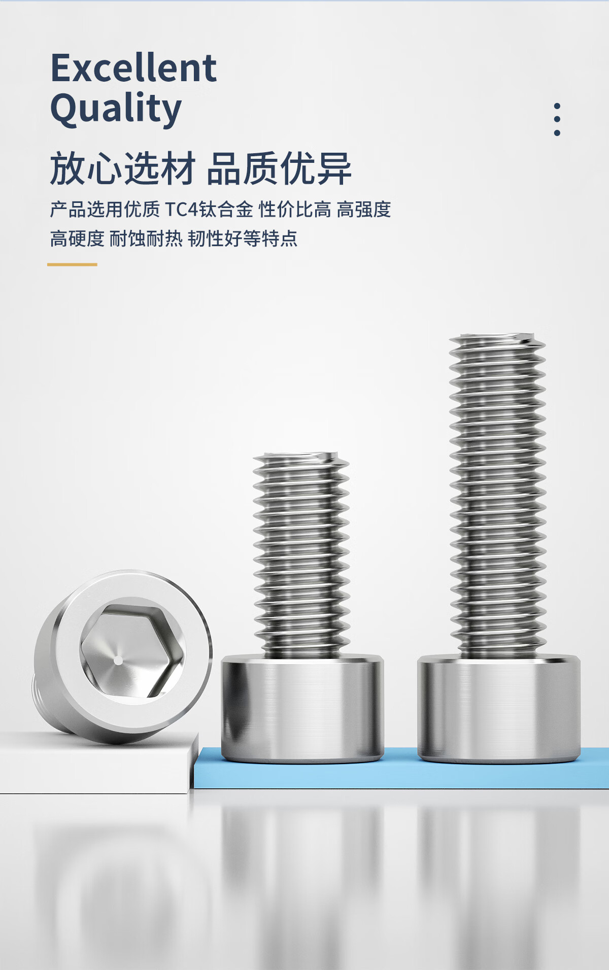 固万基(GUWANJI)钛合金螺丝TC4圆柱头内六角螺栓杯头螺钉加长M1.6M2M5M6M8M10-M20 M1.6x3[2只]