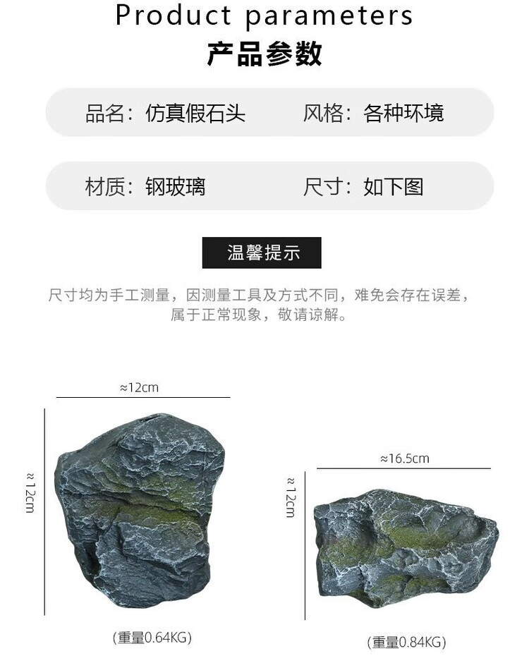 OYKTN玻璃钢仿真假石头庭院造景假山景观陈设装饰工艺酒店园林工程摆件 12*8*12cm仿真石头1型
